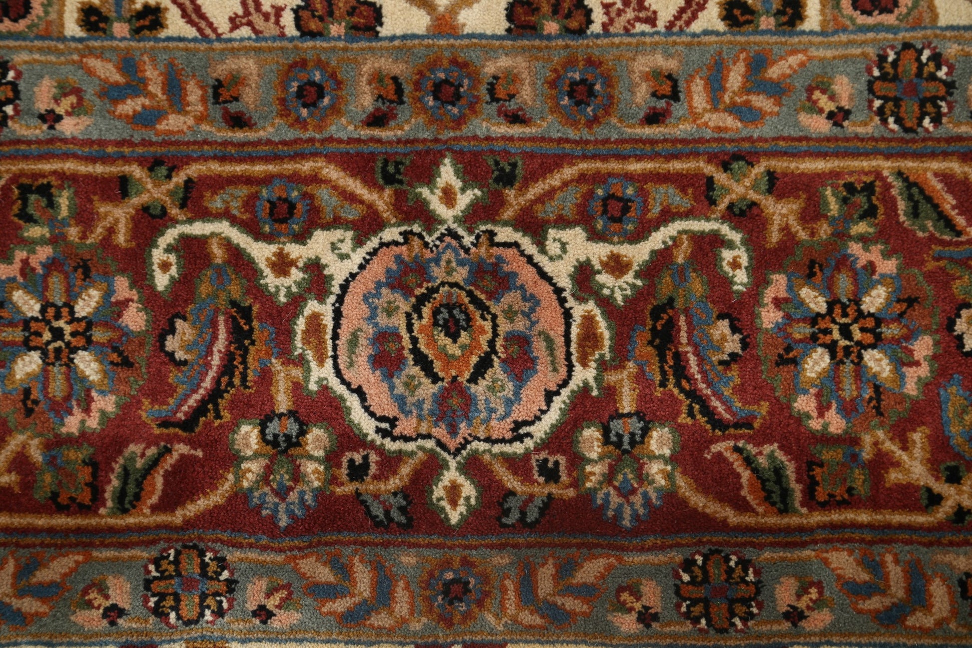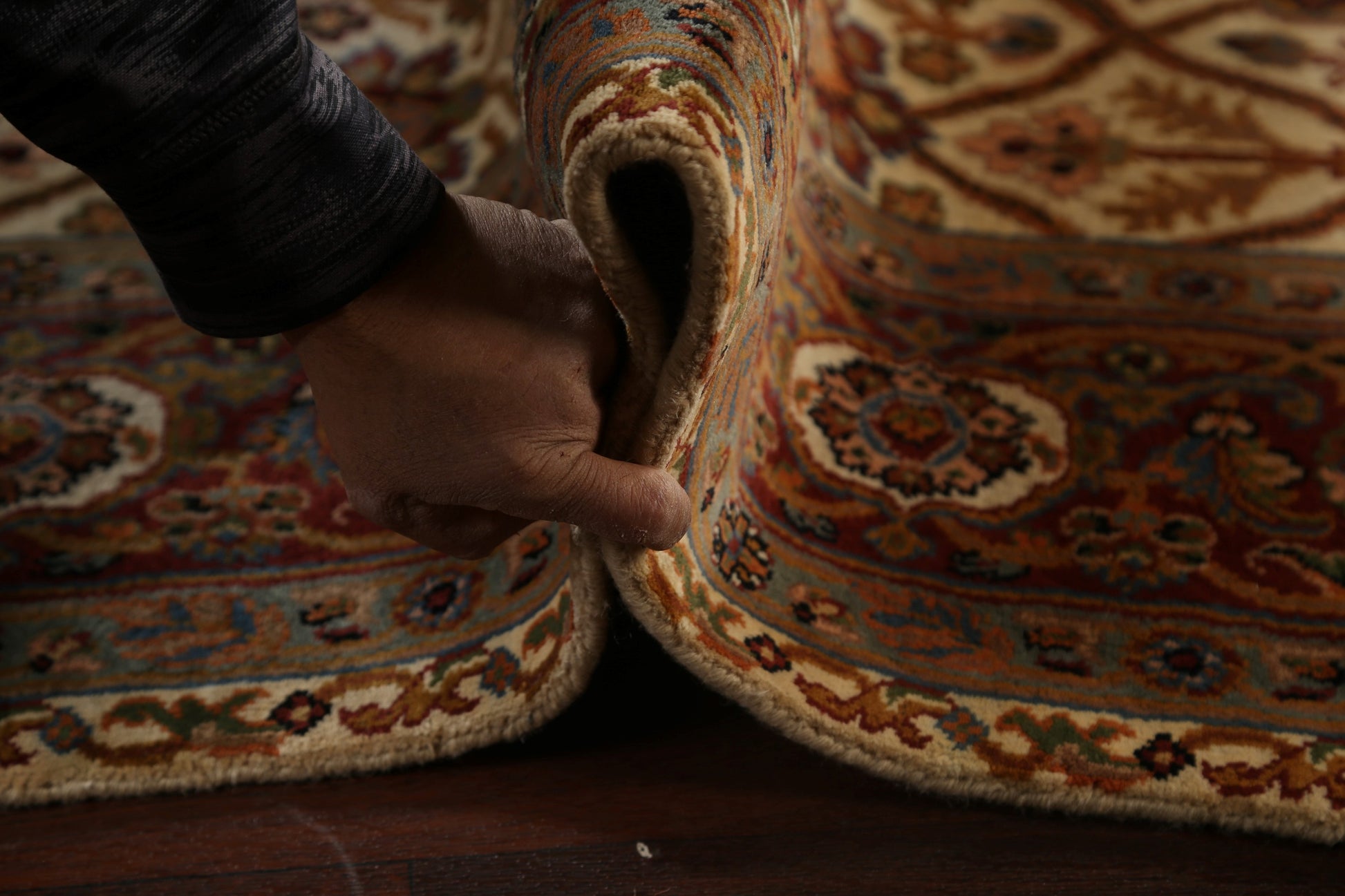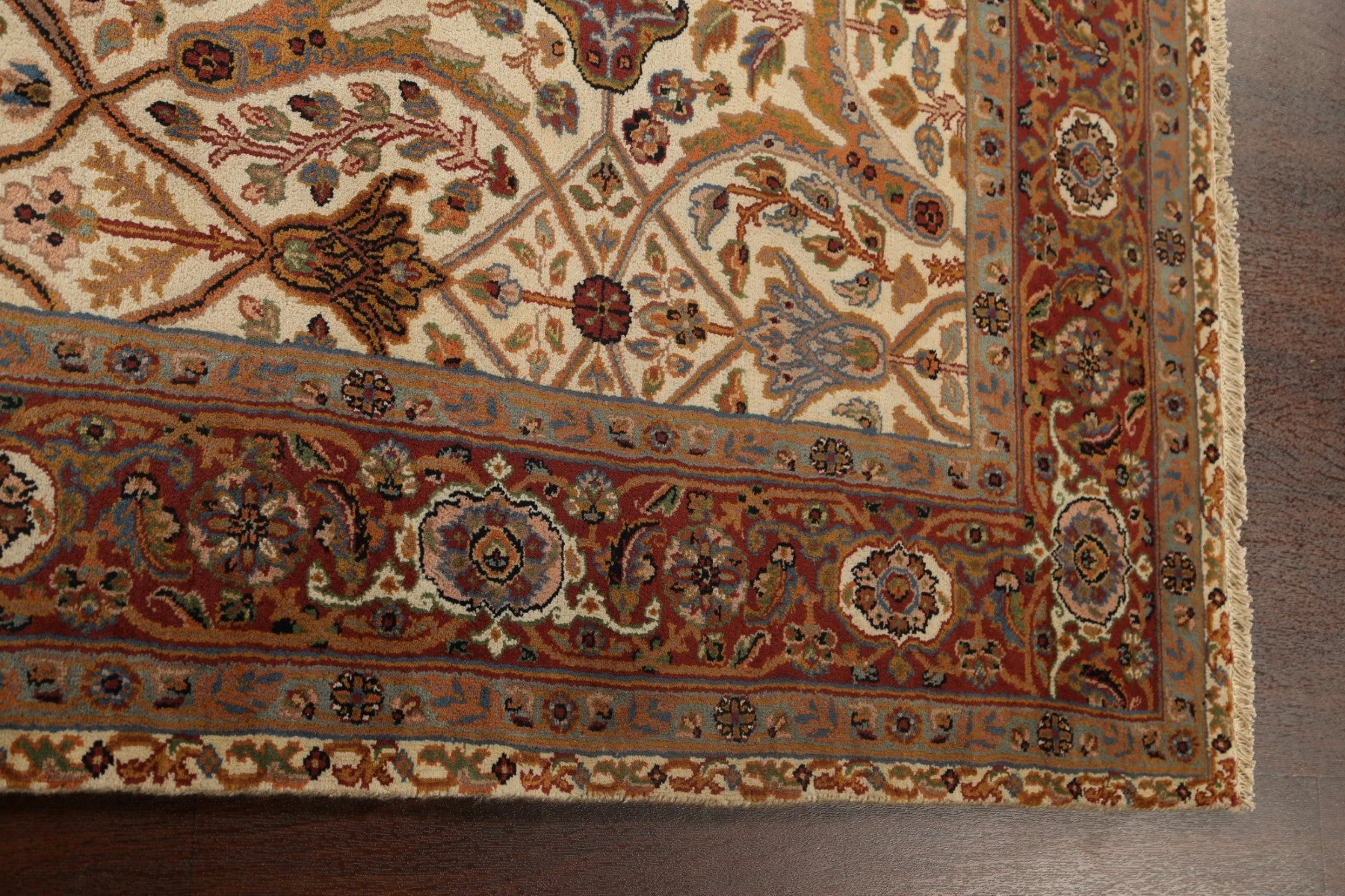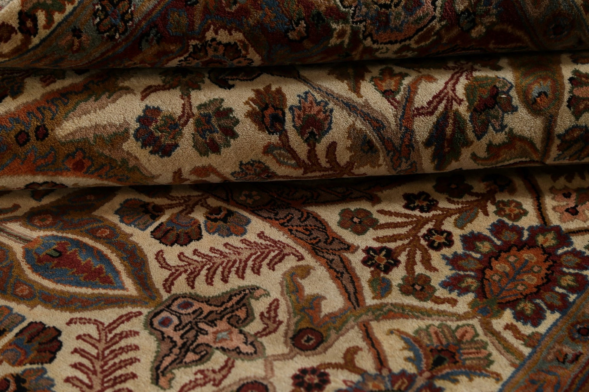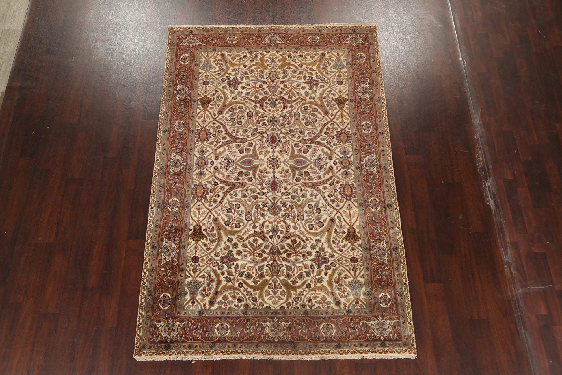 A Beautiful Genuine India Kashan rug is Hand Knotted by skillful weavers in India with 100% Wool Material. This rug is in New, First Quality condition. dimensions are 9' 1'' X 5' 10'' in foot and 277 X 178 in centimeter. the primary color is Beige & Ivories.