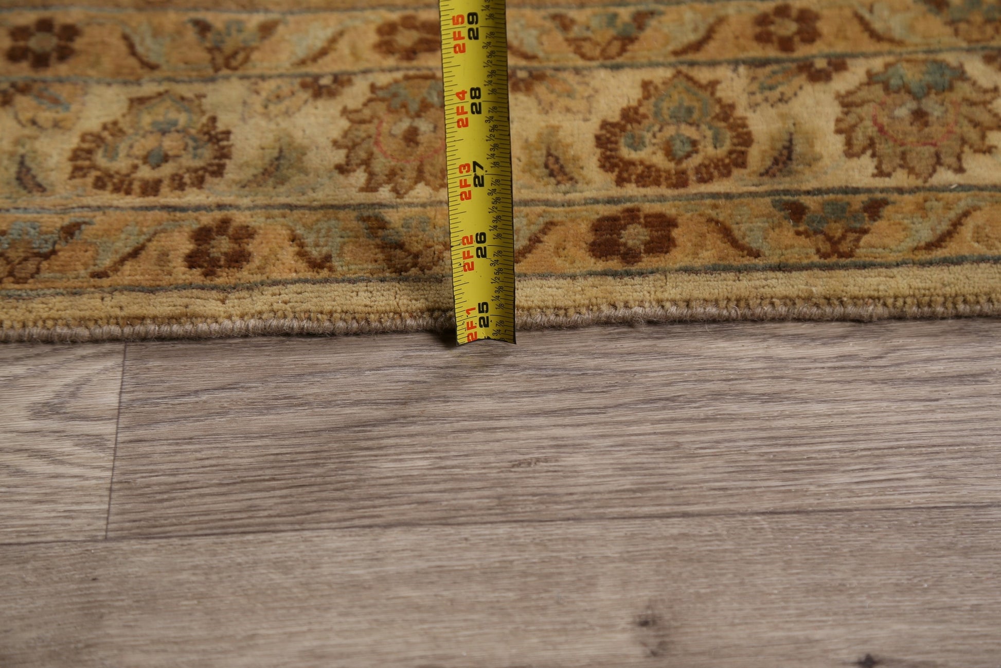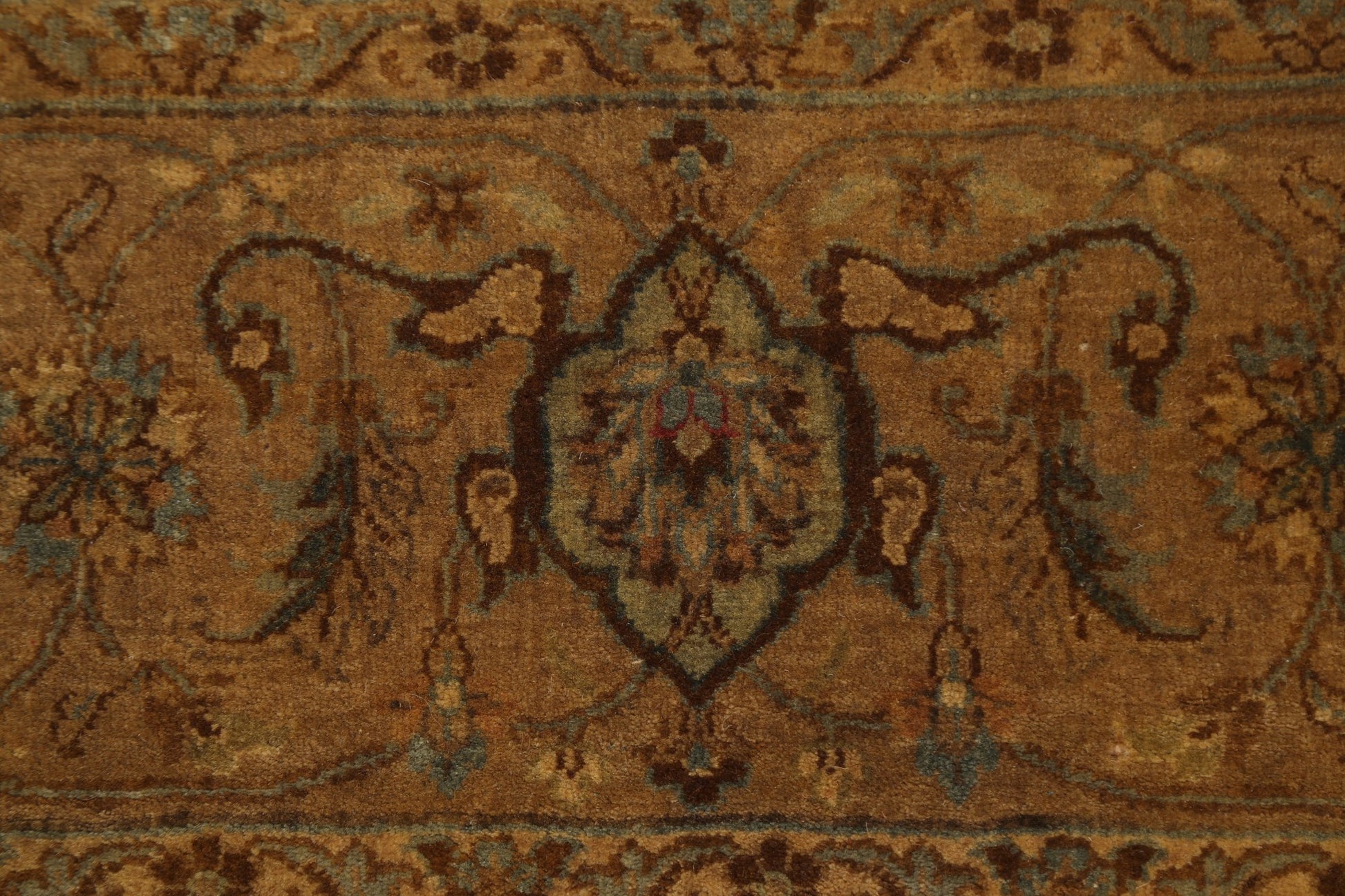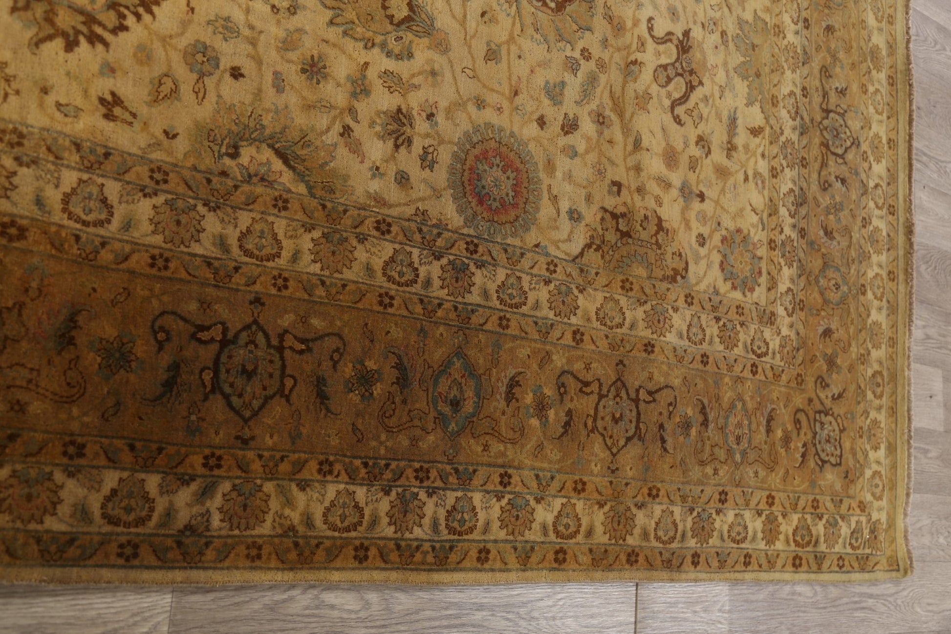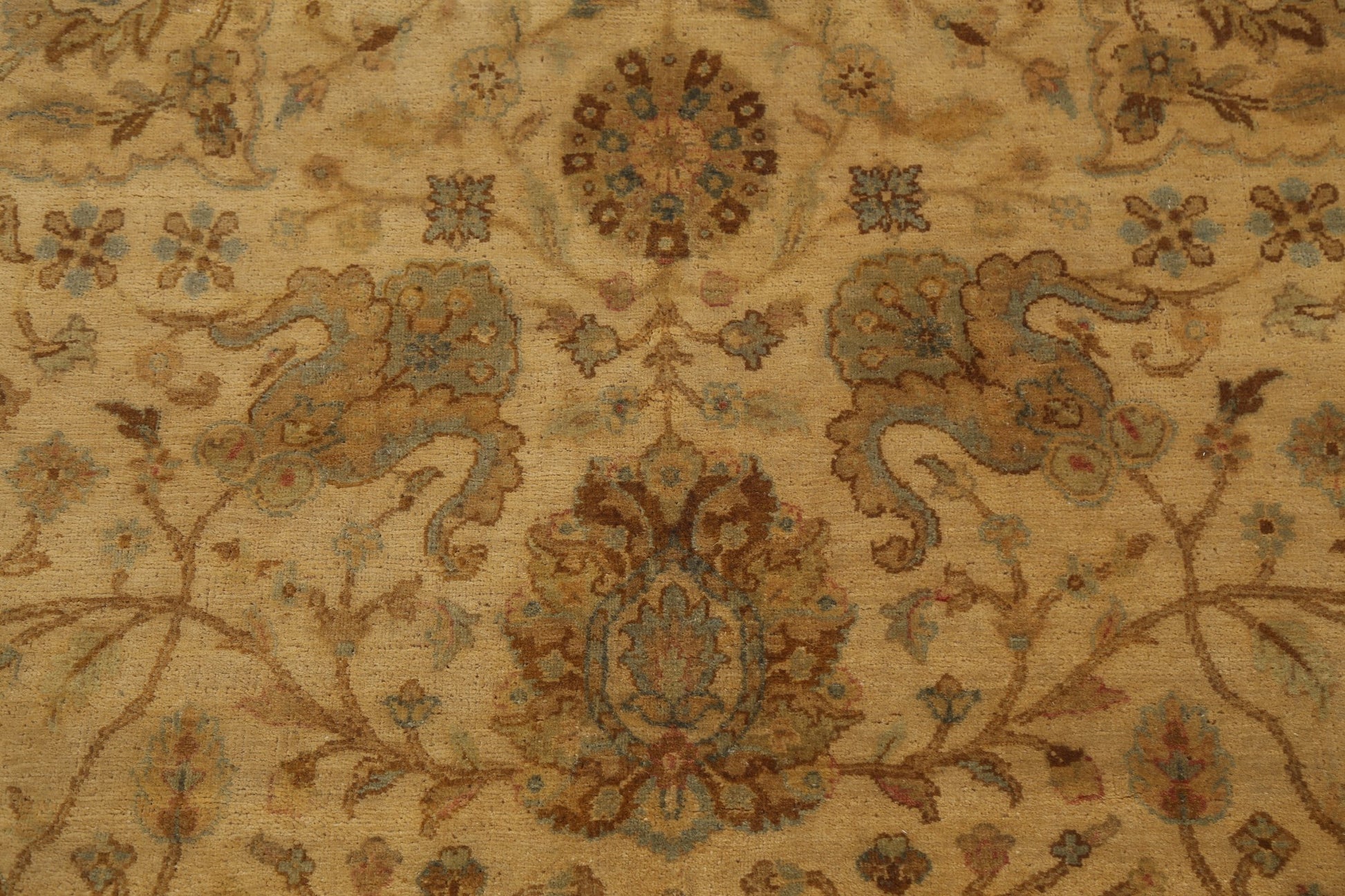 A Beautiful Genuine India Kashan rug is Hand Knotted by skillful weavers in India with 100% Wool Material. This rug is in New, First Quality condition. dimensions are 10' 6'' X 8' 2'' in foot and 320 X 249 in centimeter. the primary color is Yellow & Gold.