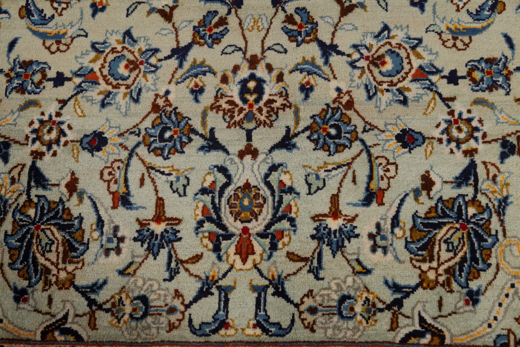 A Beautiful Genuine Persia ( Persia ) Kashan rug is Hand Knotted by skillful weavers in Persia ( Persia ) with 100% Wool Material. This rug is in Very Good condition. dimensions are 16' 0'' X 9' 6'' in foot and 488 X 290 in centimeter. the primary color is Green.