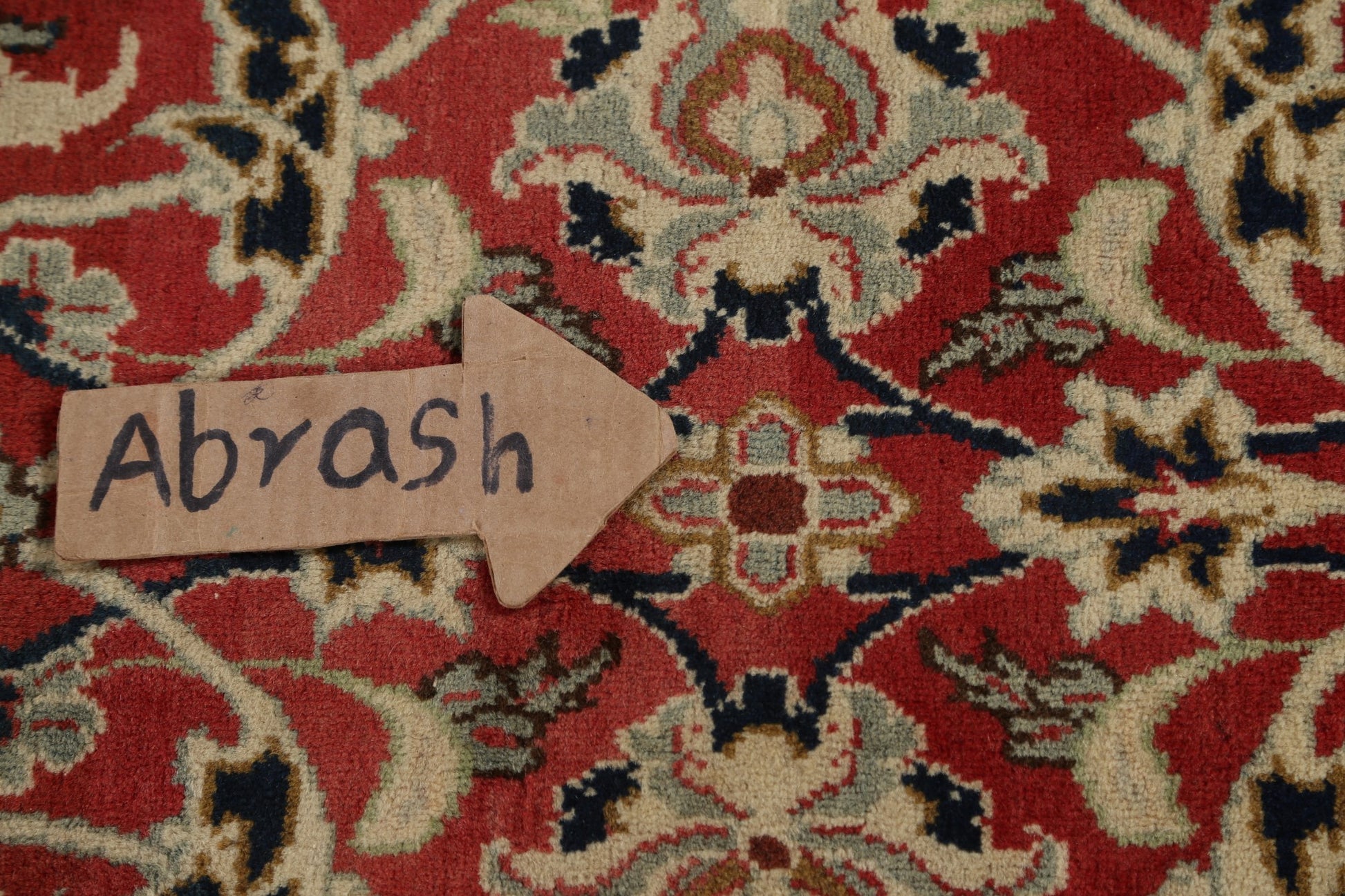 A Beautiful Genuine Persia ( Persia ) Kashan rug is Hand Knotted by skillful weavers in Persia ( Persia ) with 100% Wool Material. This rug is in Very Good (Abrash) condition. dimensions are 11' 6'' X 7' 6'' in foot and 351 X 229 in centimeter. the primary color is Red.