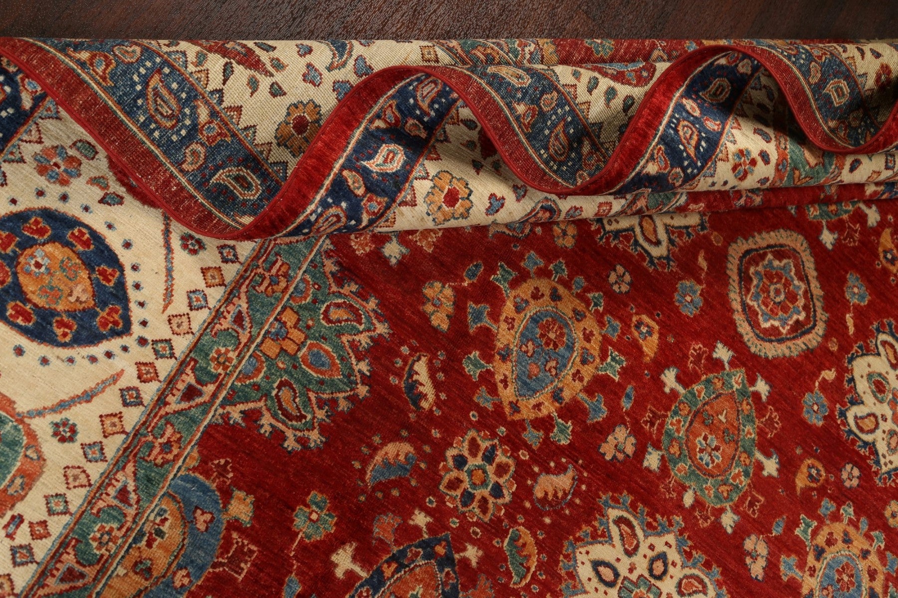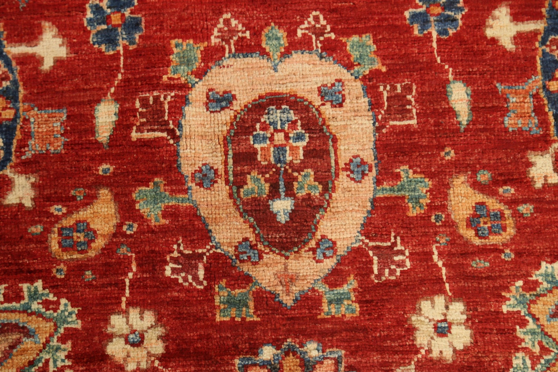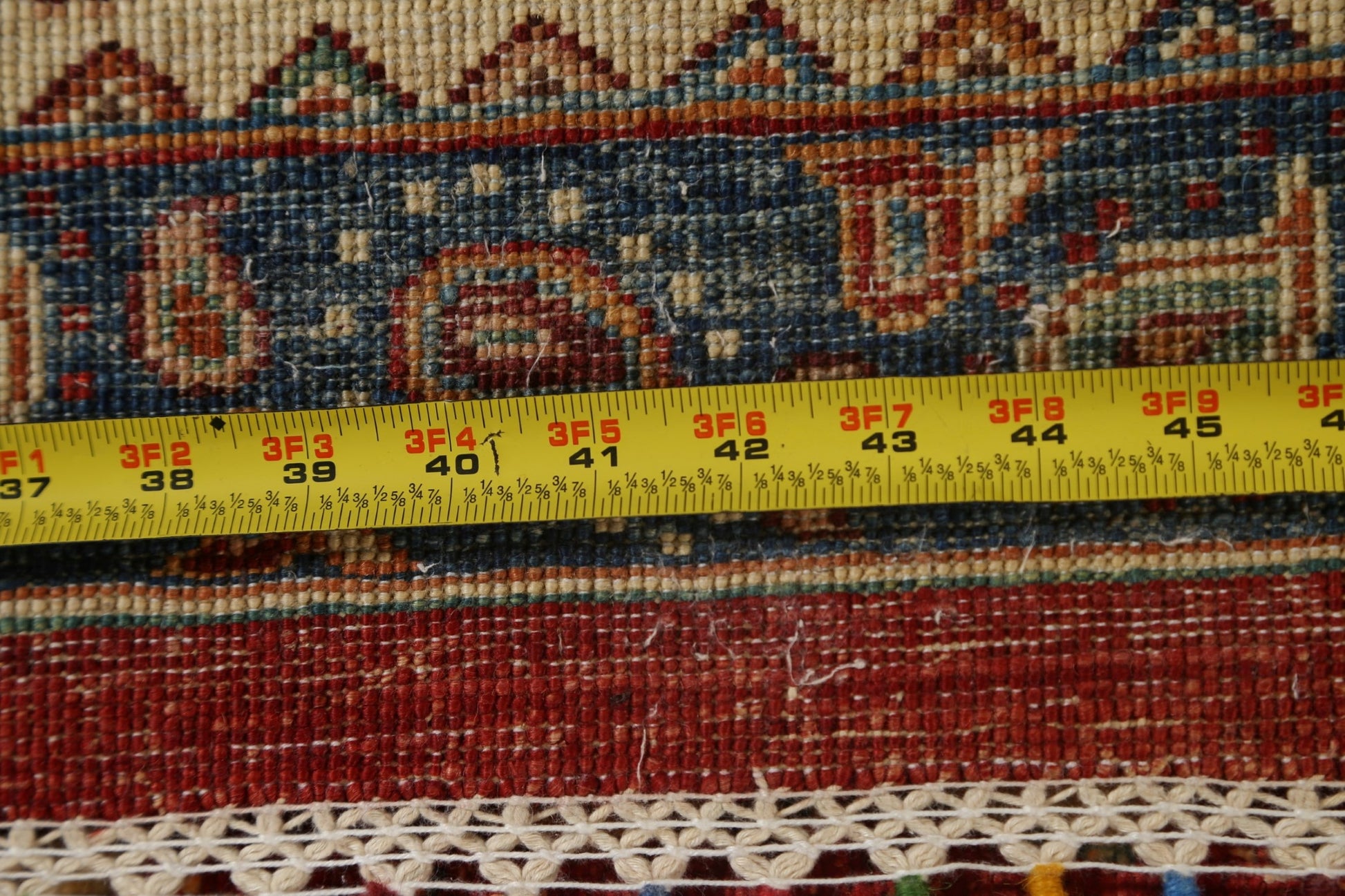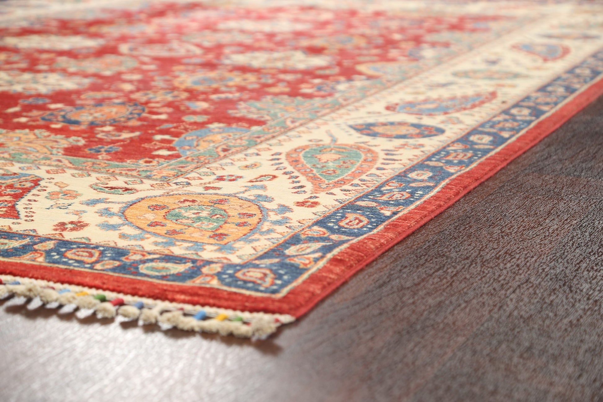 A Beautiful Genuine Pakistan Kazak rug is Hand Knotted by skillful weavers in Pakistan with 100% Wool Material. This rug is in New, First Quality condition. dimensions are 9' 8'' X 6' 8'' in foot and 295 X 203 in centimeter. the primary color is Red.
