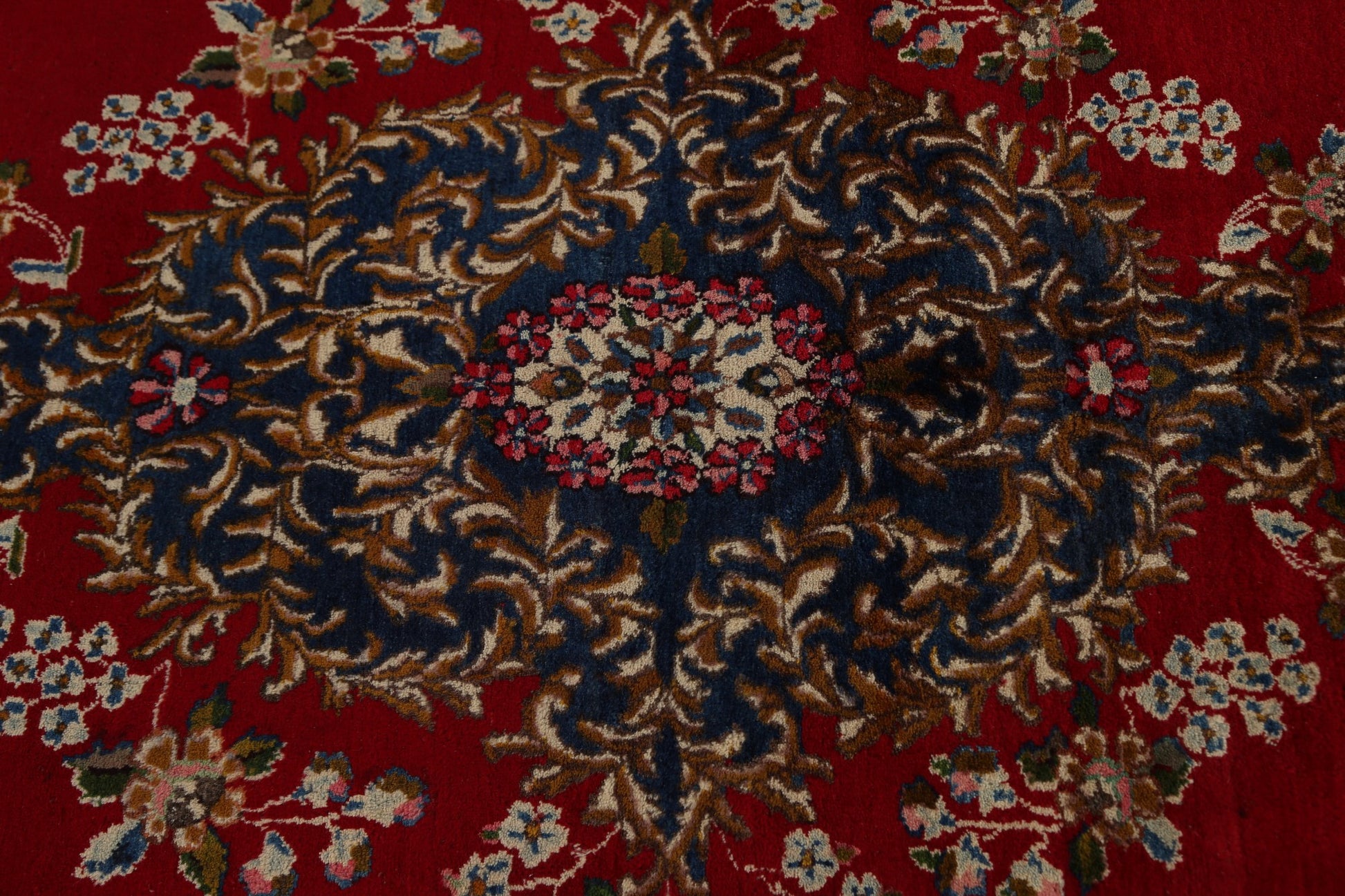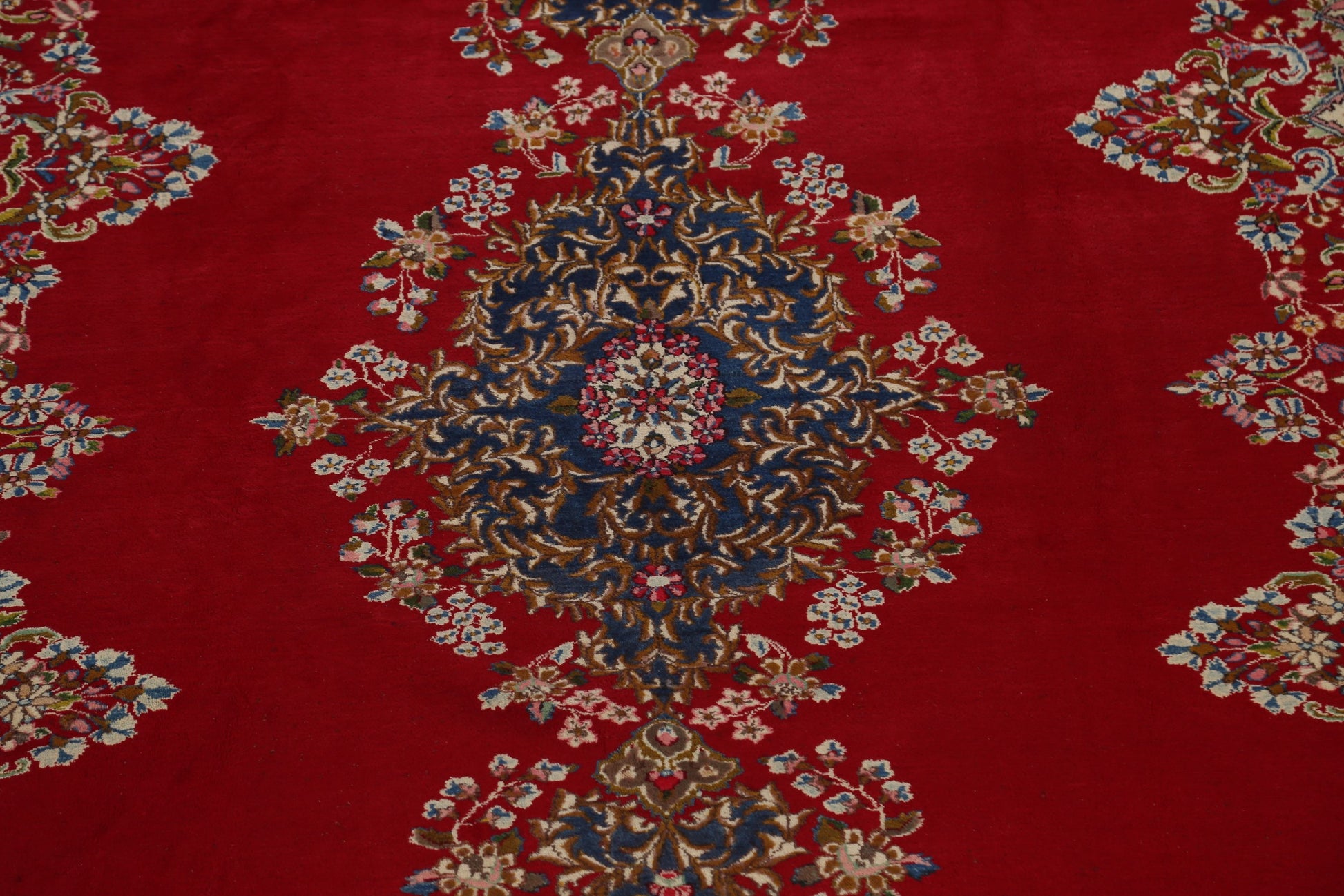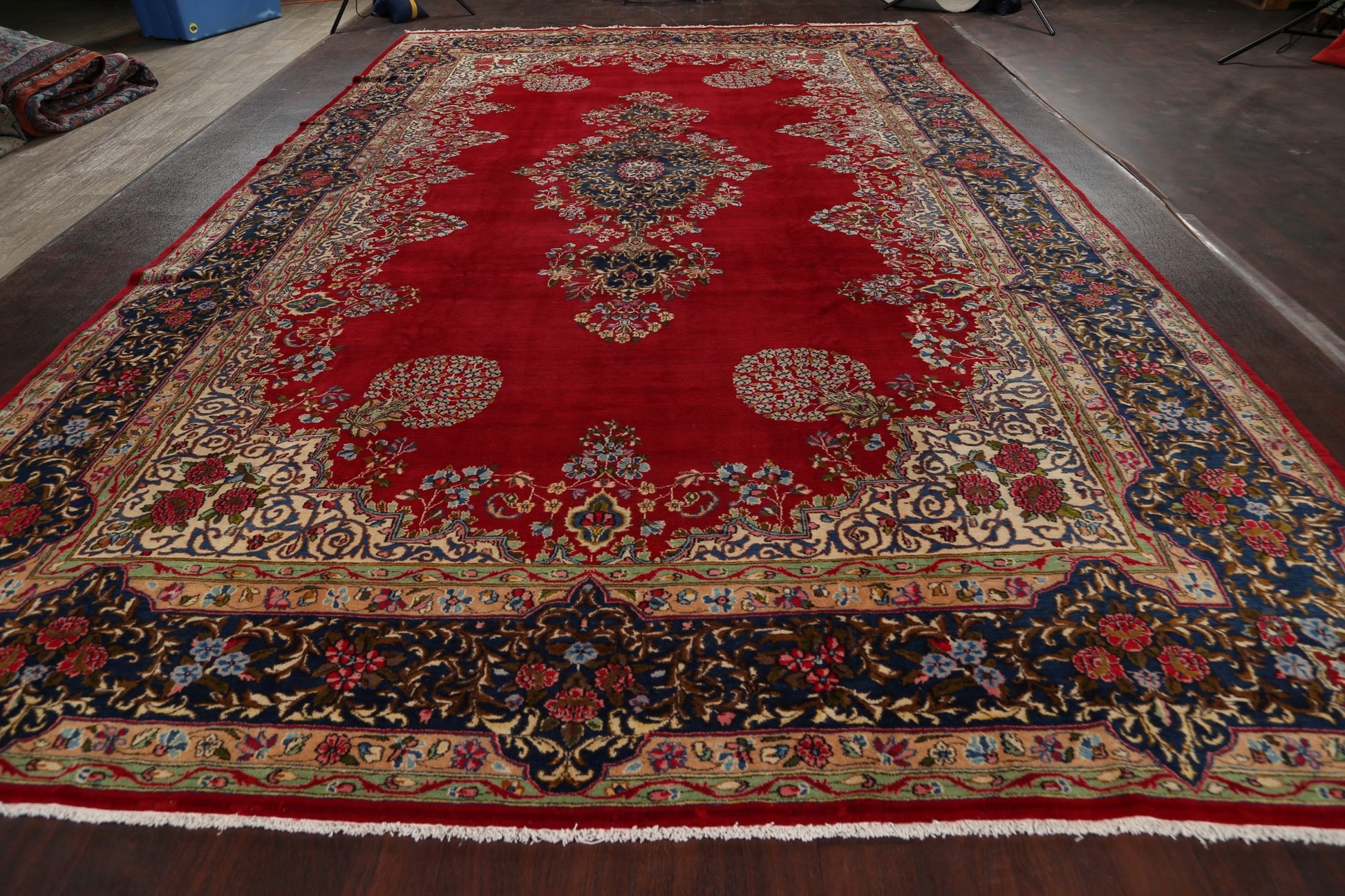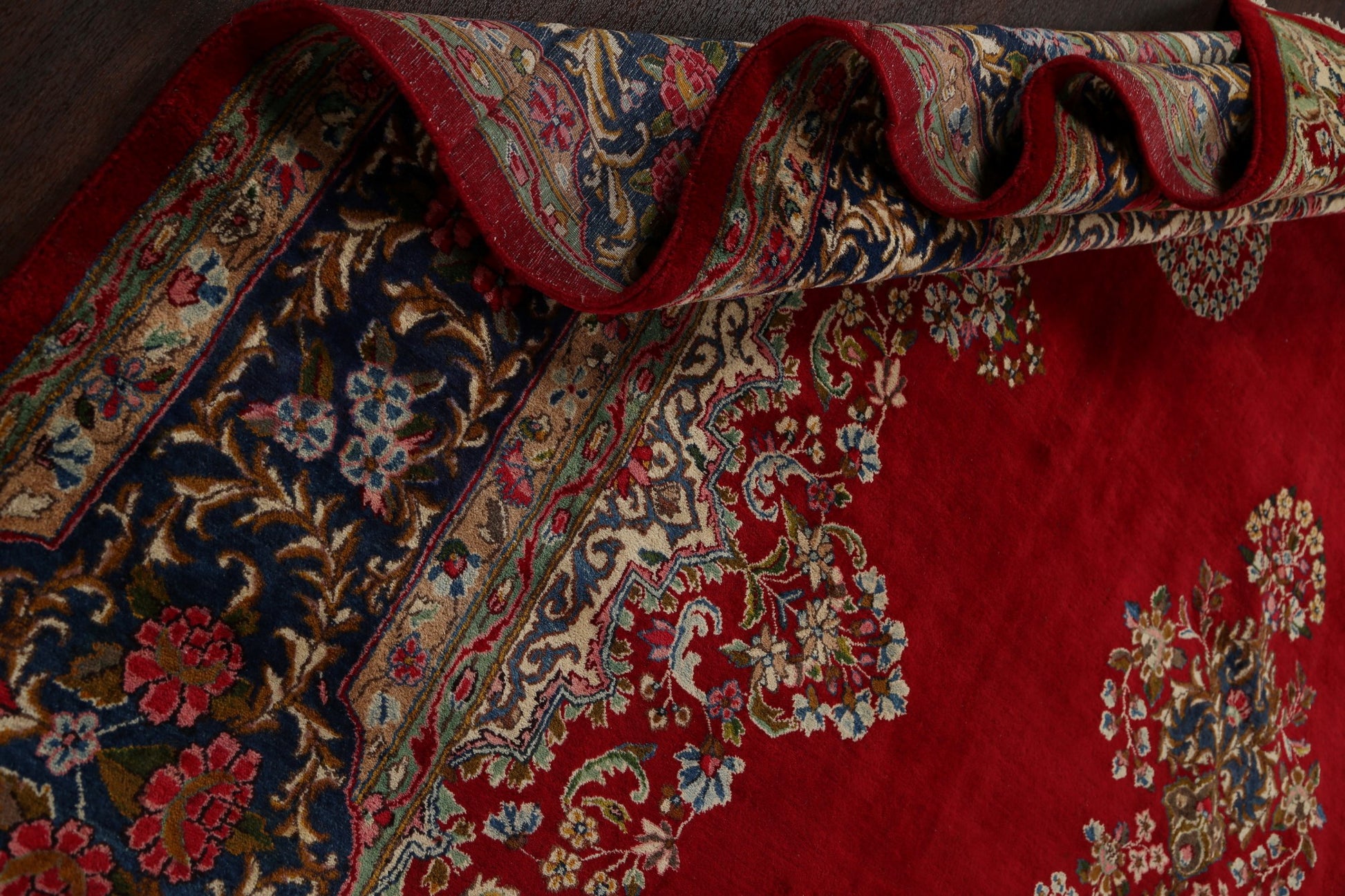 A Beautiful Genuine Persia ( Persia ) Kerman rug is Hand Knotted by skillful weavers in Persia ( Persia ) with 100% Wool Material. This rug is in Very Good condition. dimensions are 16' 9'' X 9' 11'' in foot and 511 X 302 in centimeter. the primary color is Red.