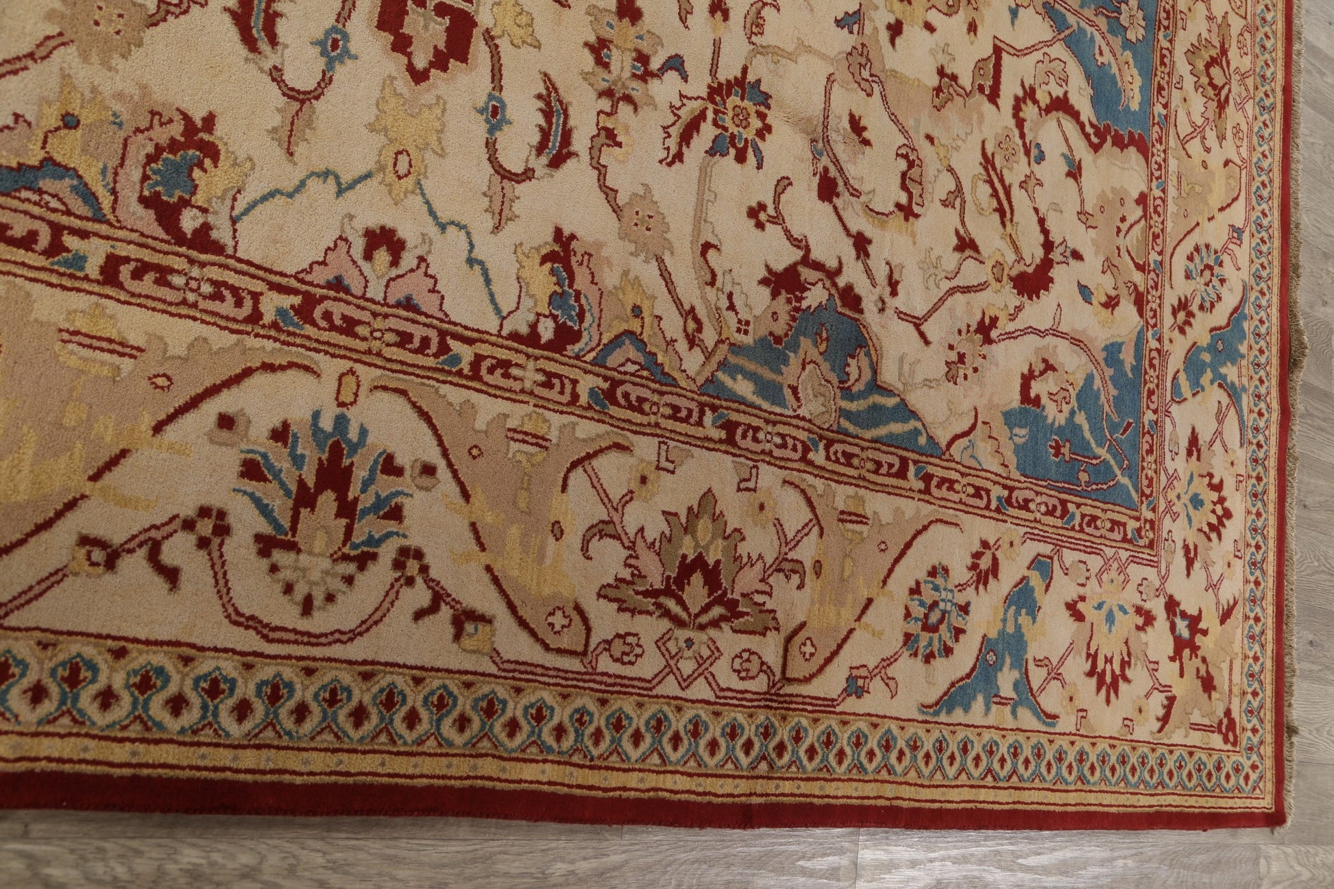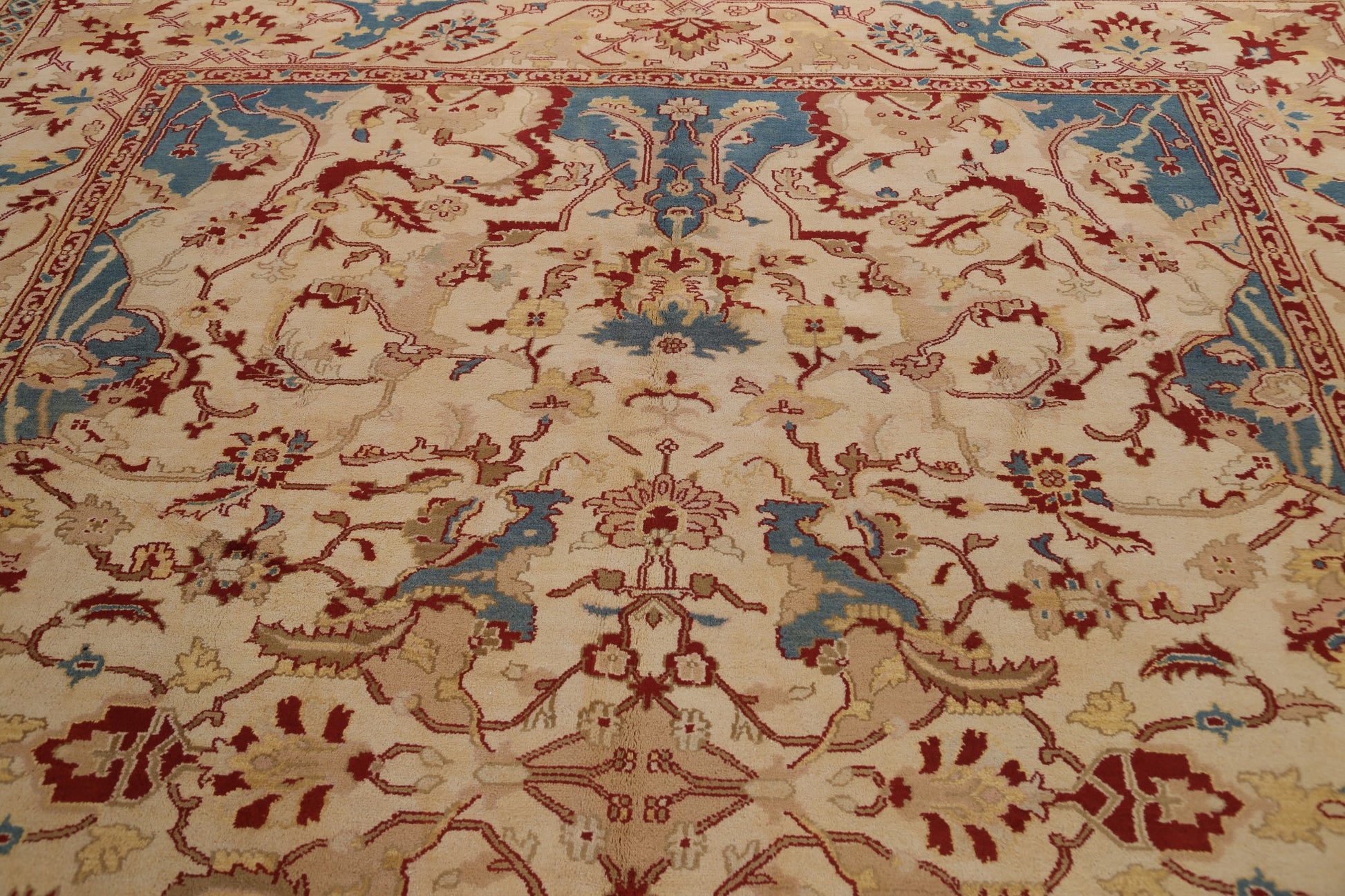A Beautiful Genuine India Oushak rug is Hand Knotted by skillful weavers in India with 100% Wool Material. This rug is in New, First Quality condition. dimensions are 11' 9'' X 8' 10'' in foot and 358 X 269 in centimeter. the primary color is Beige & Ivories.