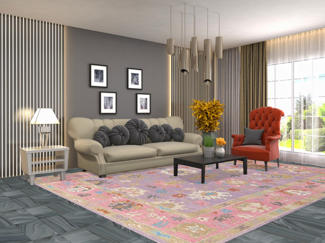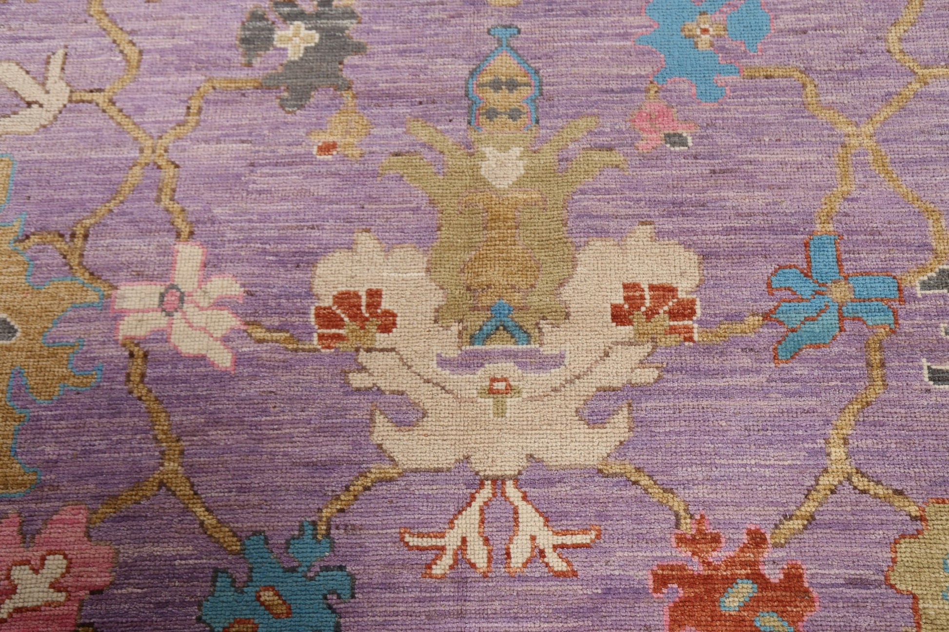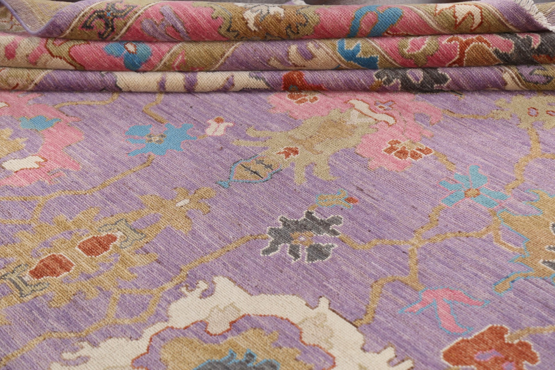 A Beautiful Genuine Turkey Oushak rug is Hand Knotted by skillful weavers in Turkey with 100% Wool Material. This rug is in New, First Quality condition. dimensions are 11' 9'' X 8' 11'' in foot and 358 X 272 in centimeter. the primary color is Purples.