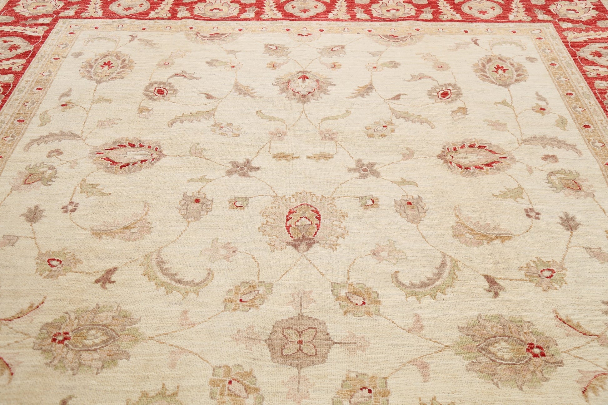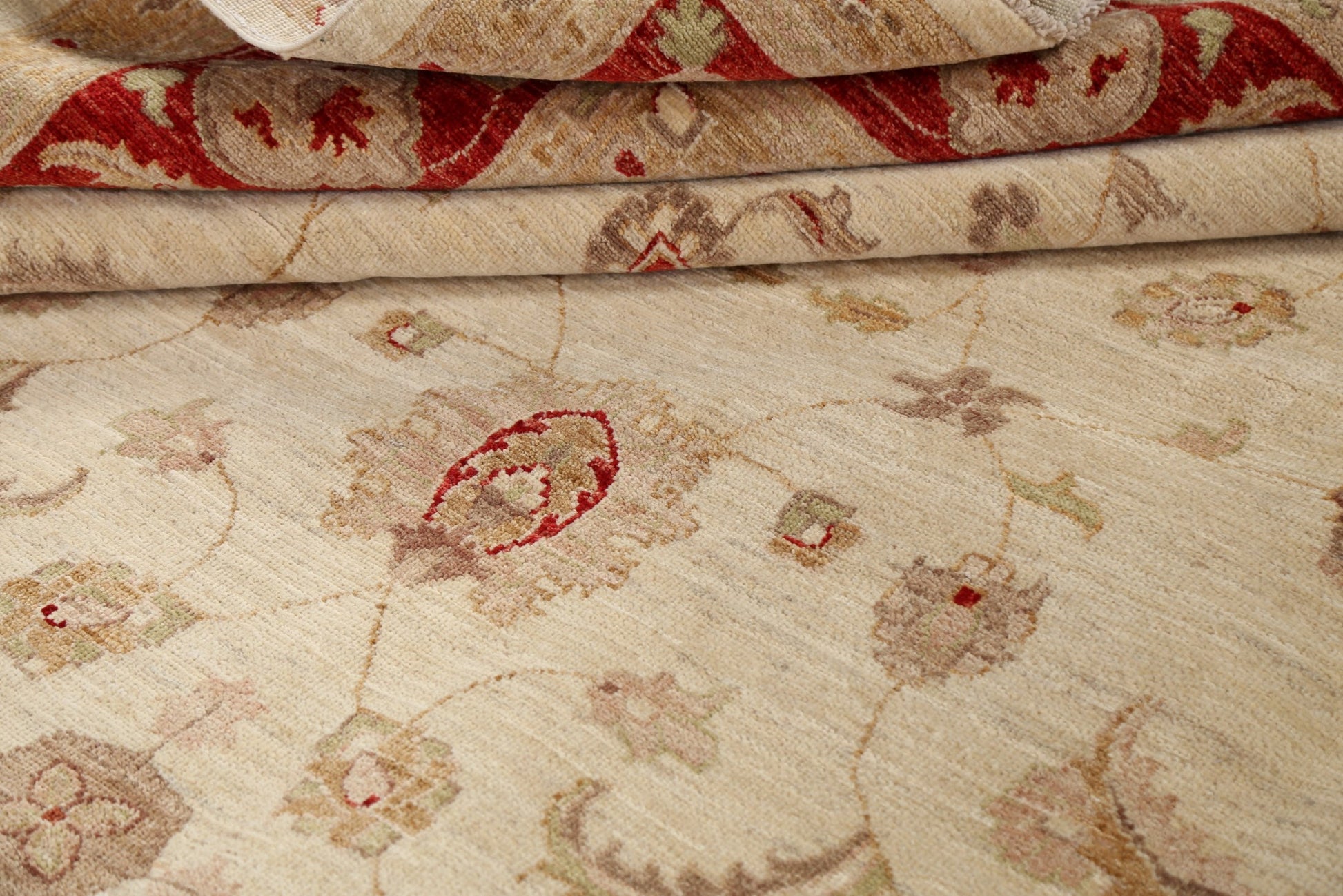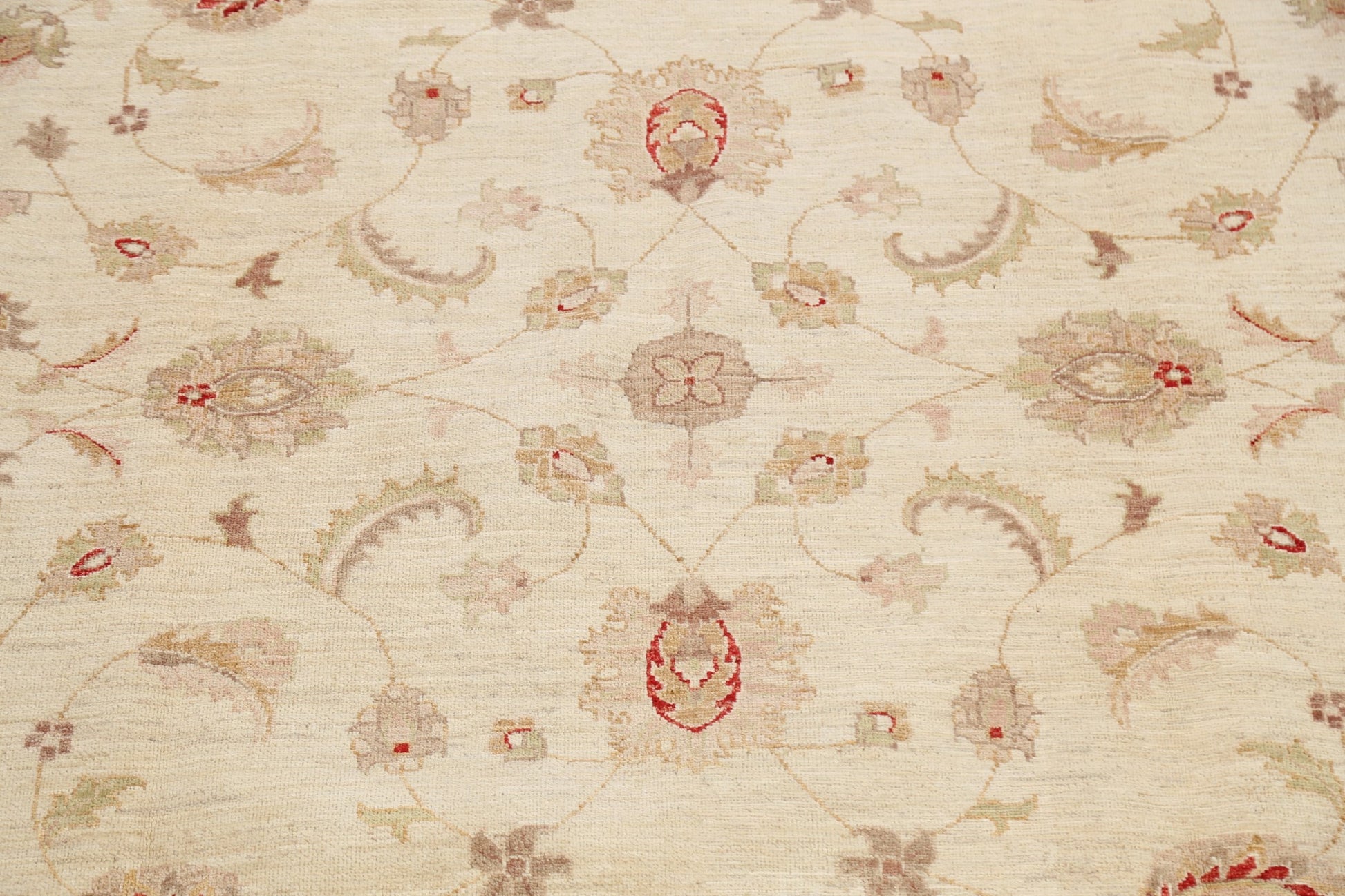 A Beautiful Genuine Pakistan Peshawar rug is Hand Knotted by skillful weavers in Pakistan with 100% Wool Material. This rug is in New, First Quality condition. dimensions are 12' 1'' X 8' 10'' in foot and 368 X 269 in centimeter. the primary color is Beige & Ivories.