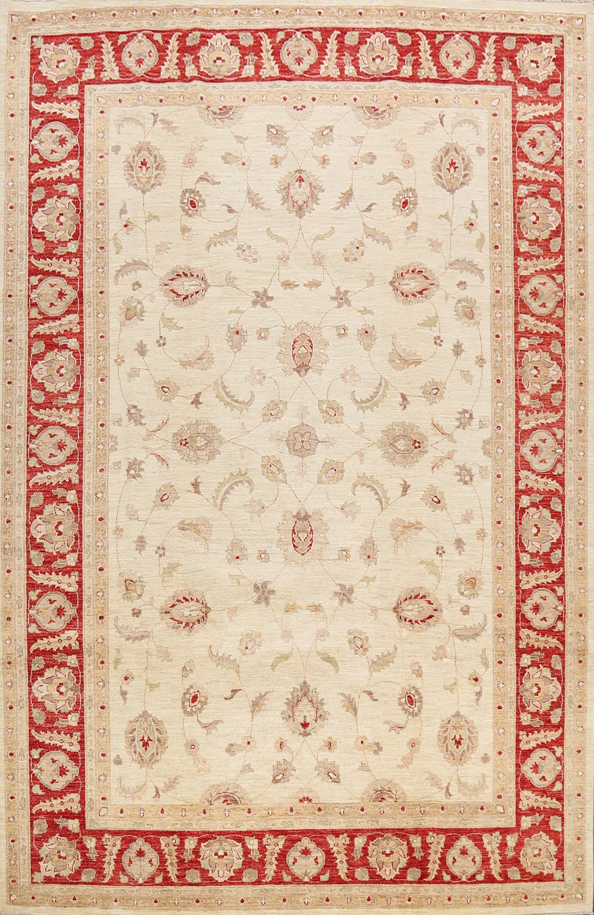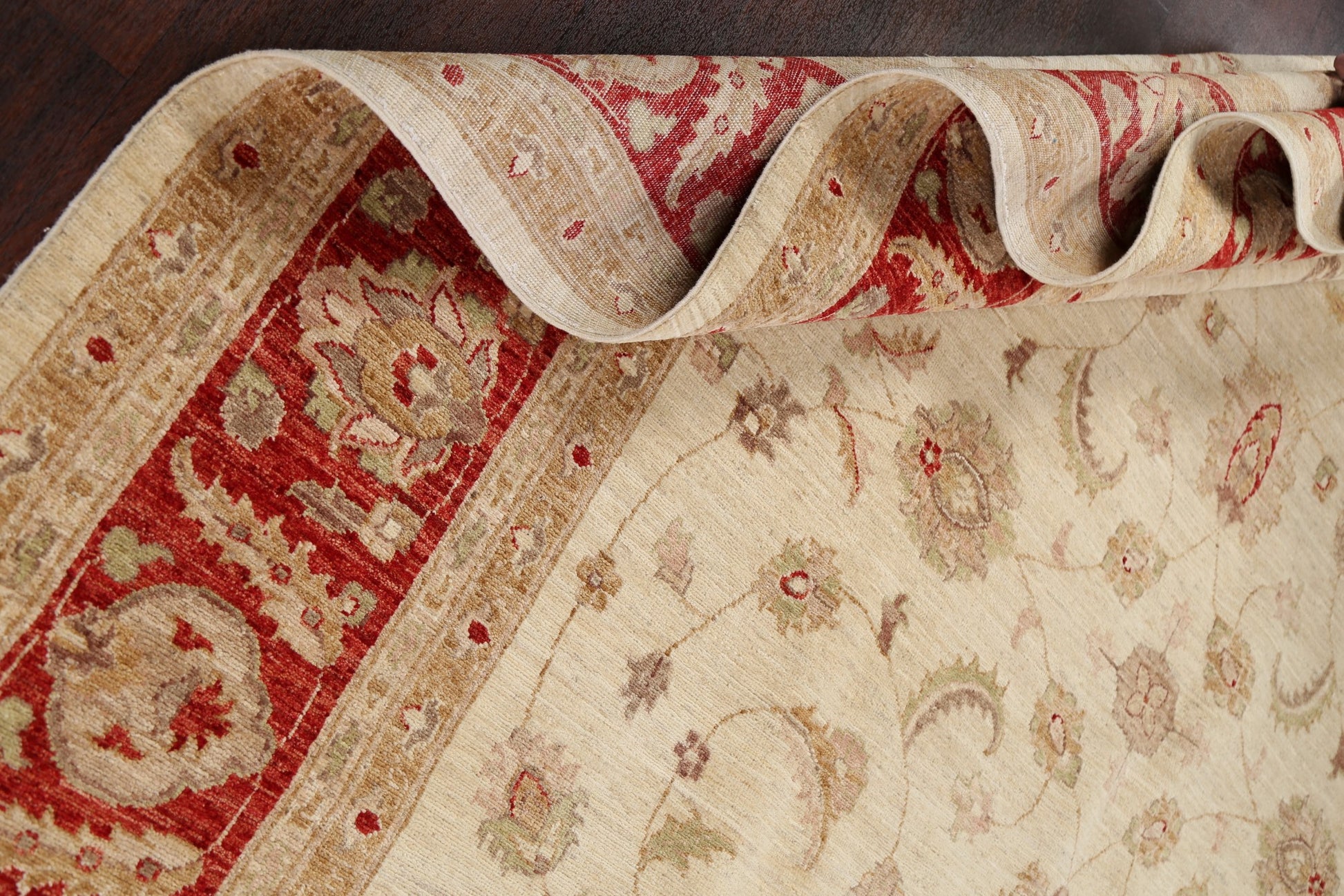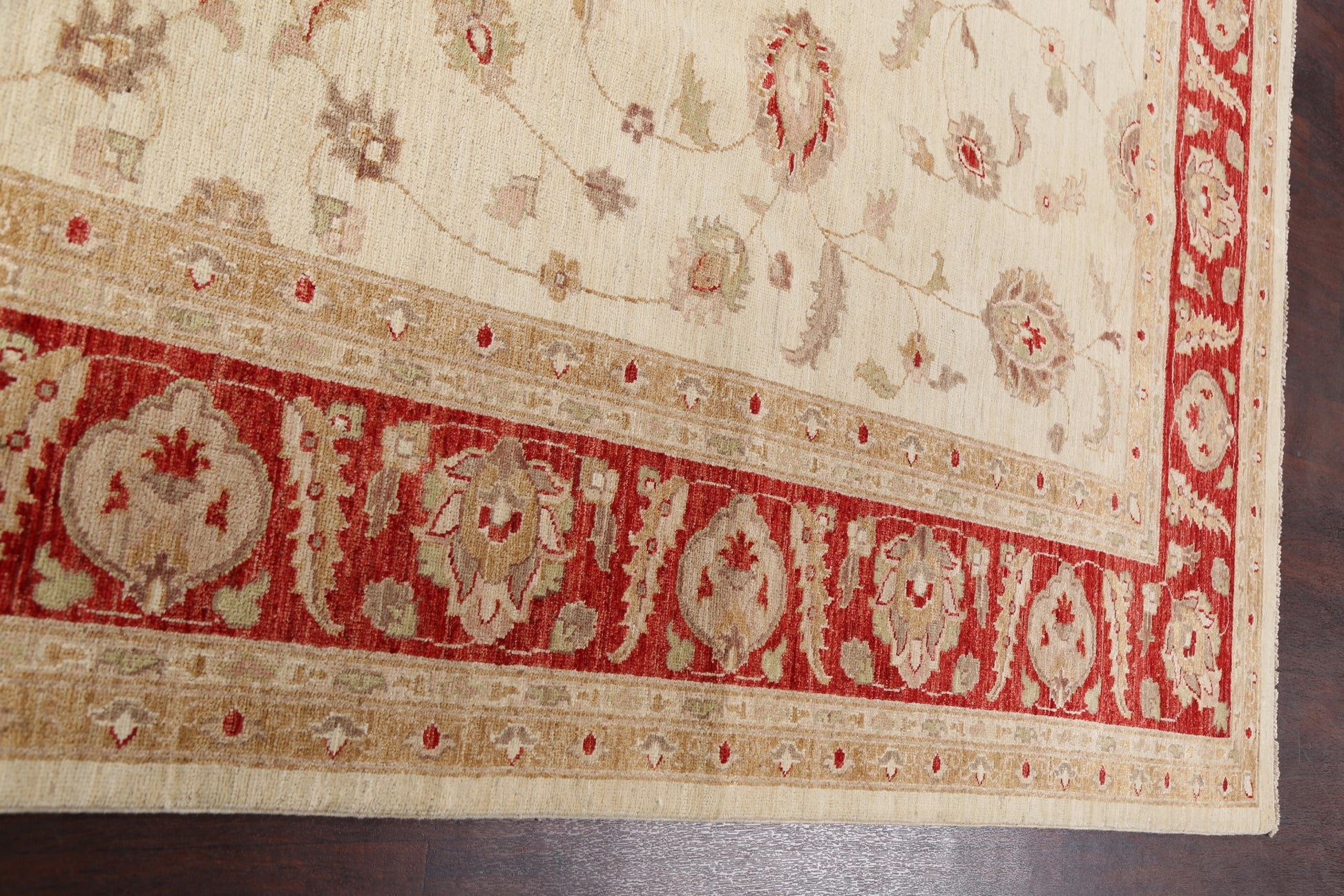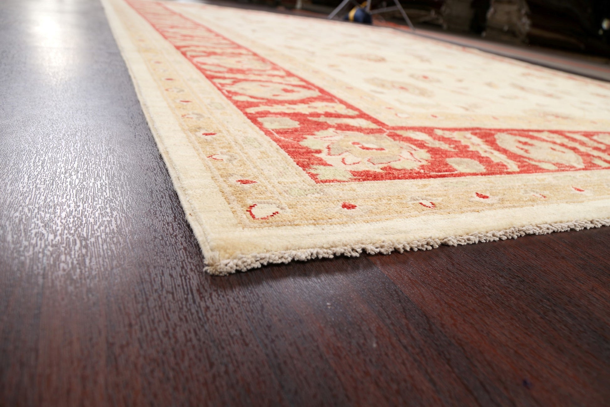 A Beautiful Genuine Pakistan Peshawar rug is Hand Knotted by skillful weavers in Pakistan with 100% Wool Material. This rug is in New, First Quality condition. dimensions are 12' 1'' X 8' 10'' in foot and 368 X 269 in centimeter. the primary color is Beige & Ivories.