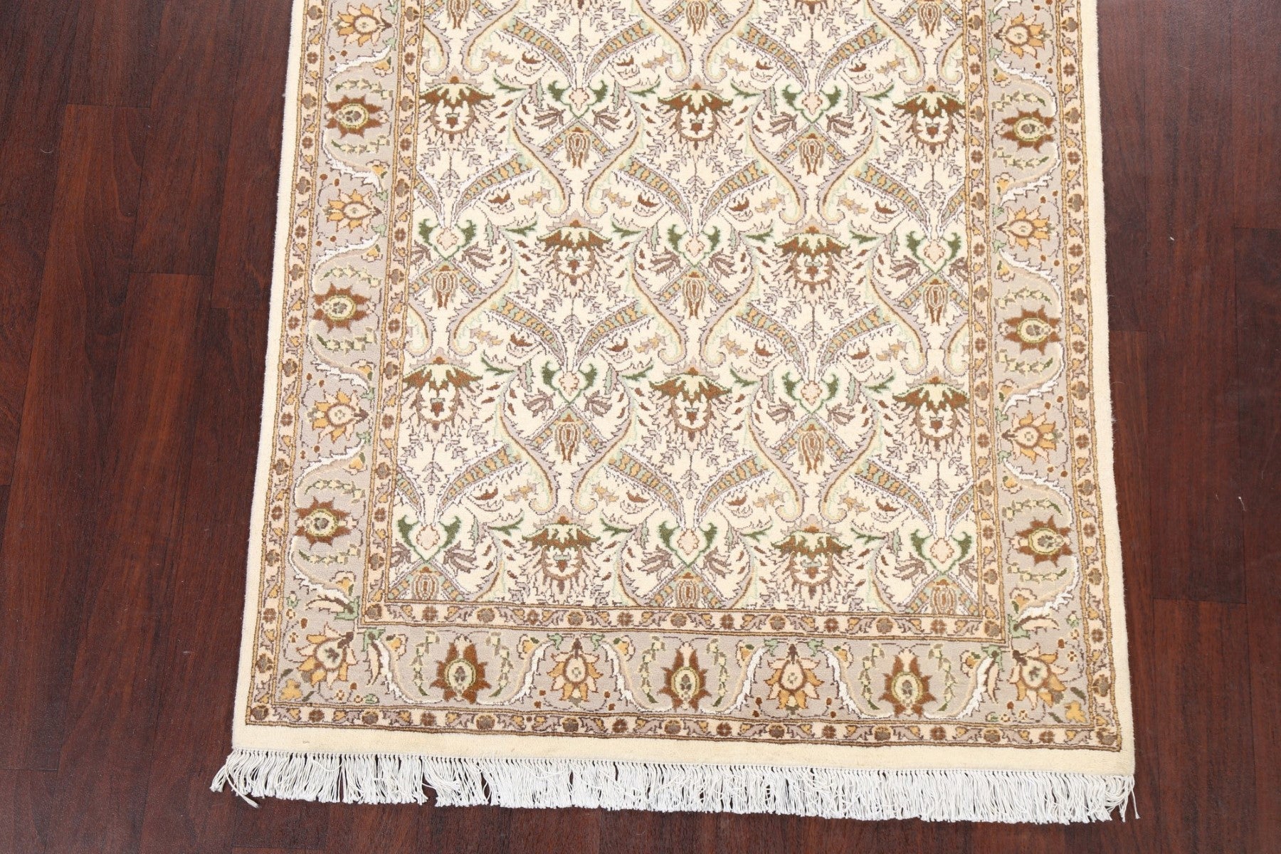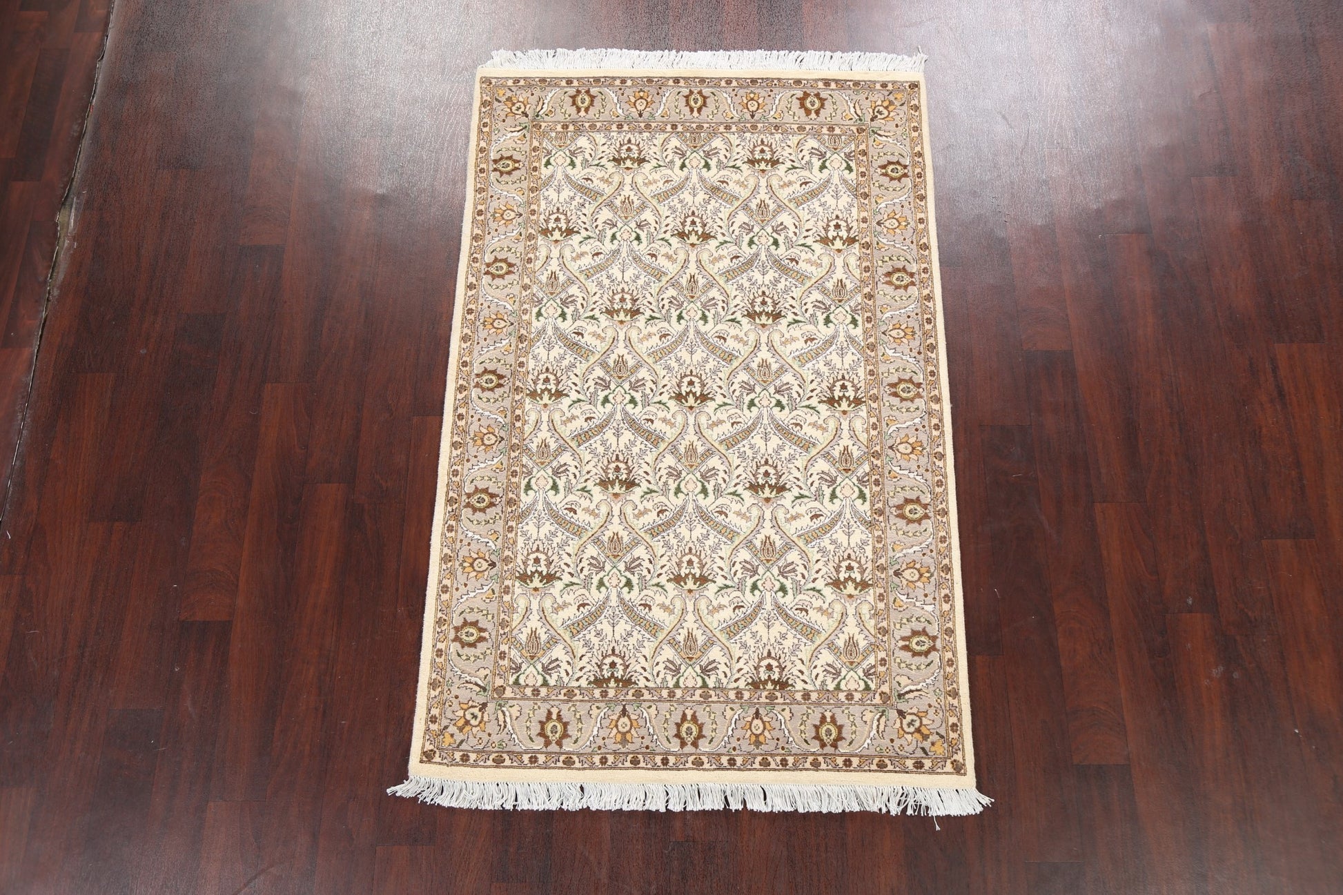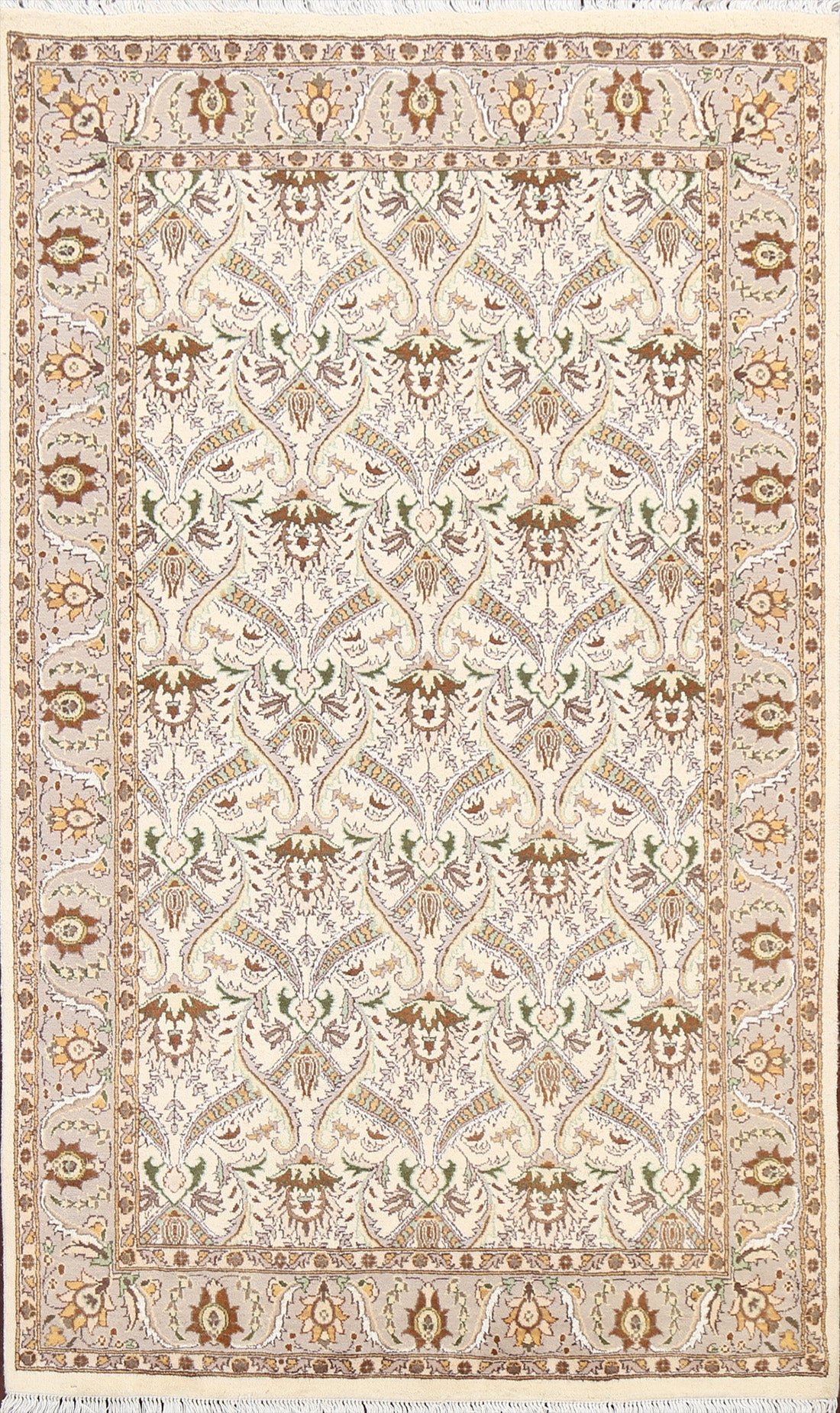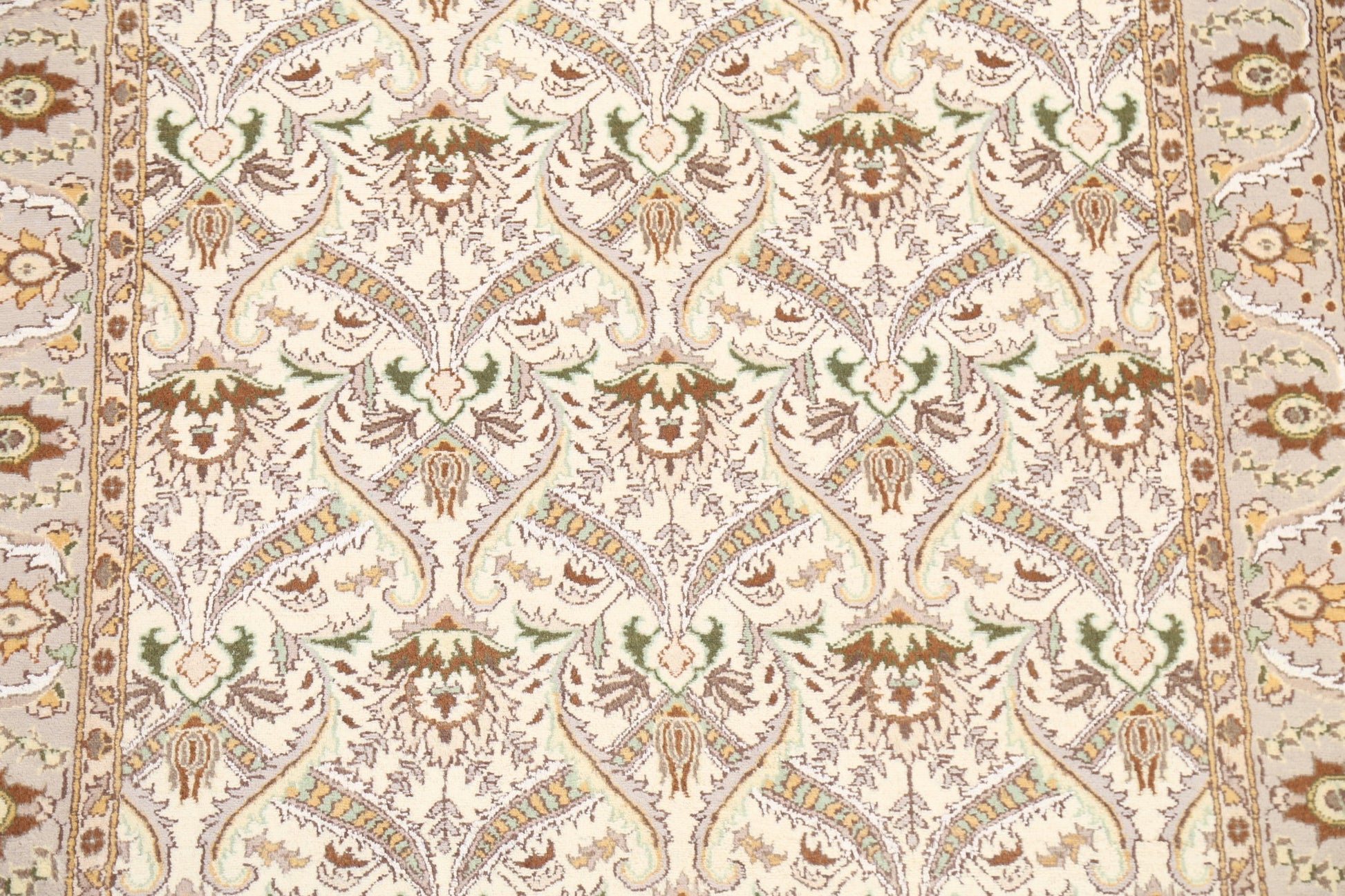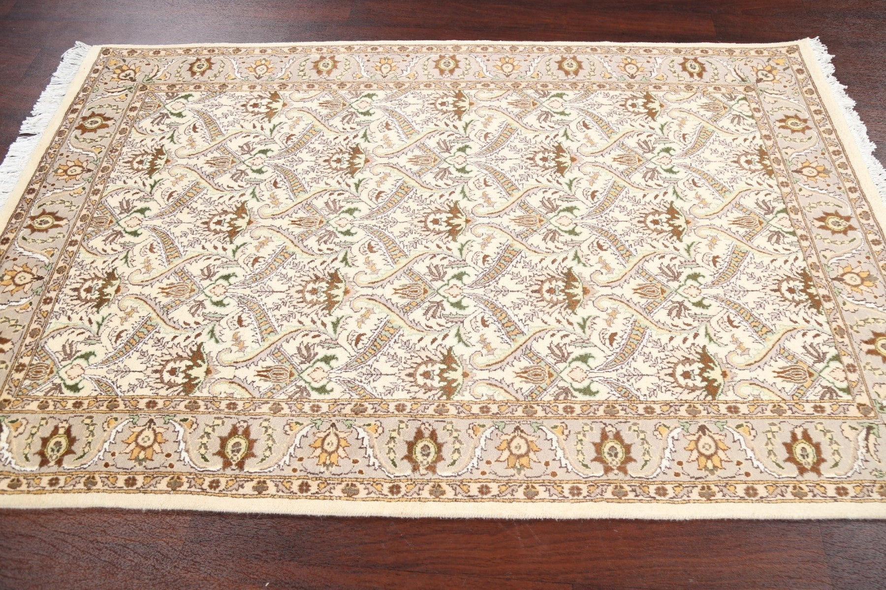 A Beautiful Genuine Pakistan Tabriz rug is Hand Knotted by skillful weavers in Pakistan with Wool & Silk Material. This rug is in New, First Quality condition. dimensions are 6' 3'' X 4' 1'' in foot and 191 X 124 in centimeter. the primary color is Beige & Ivories.