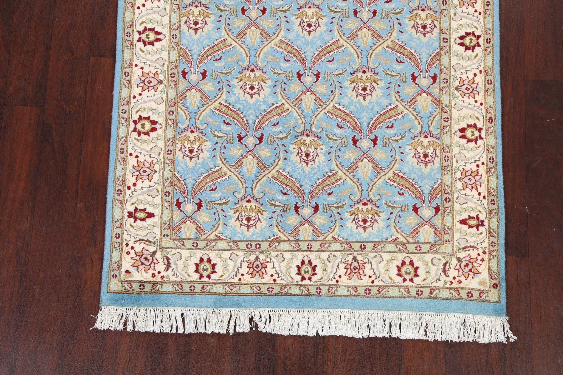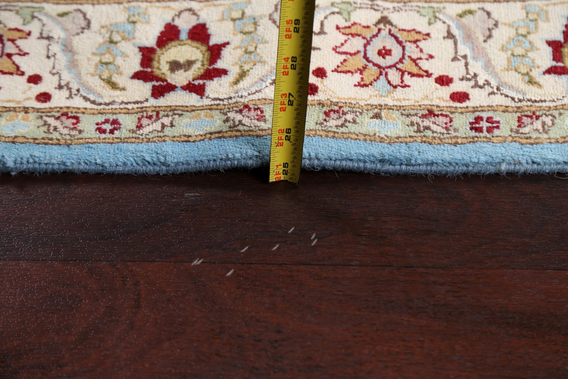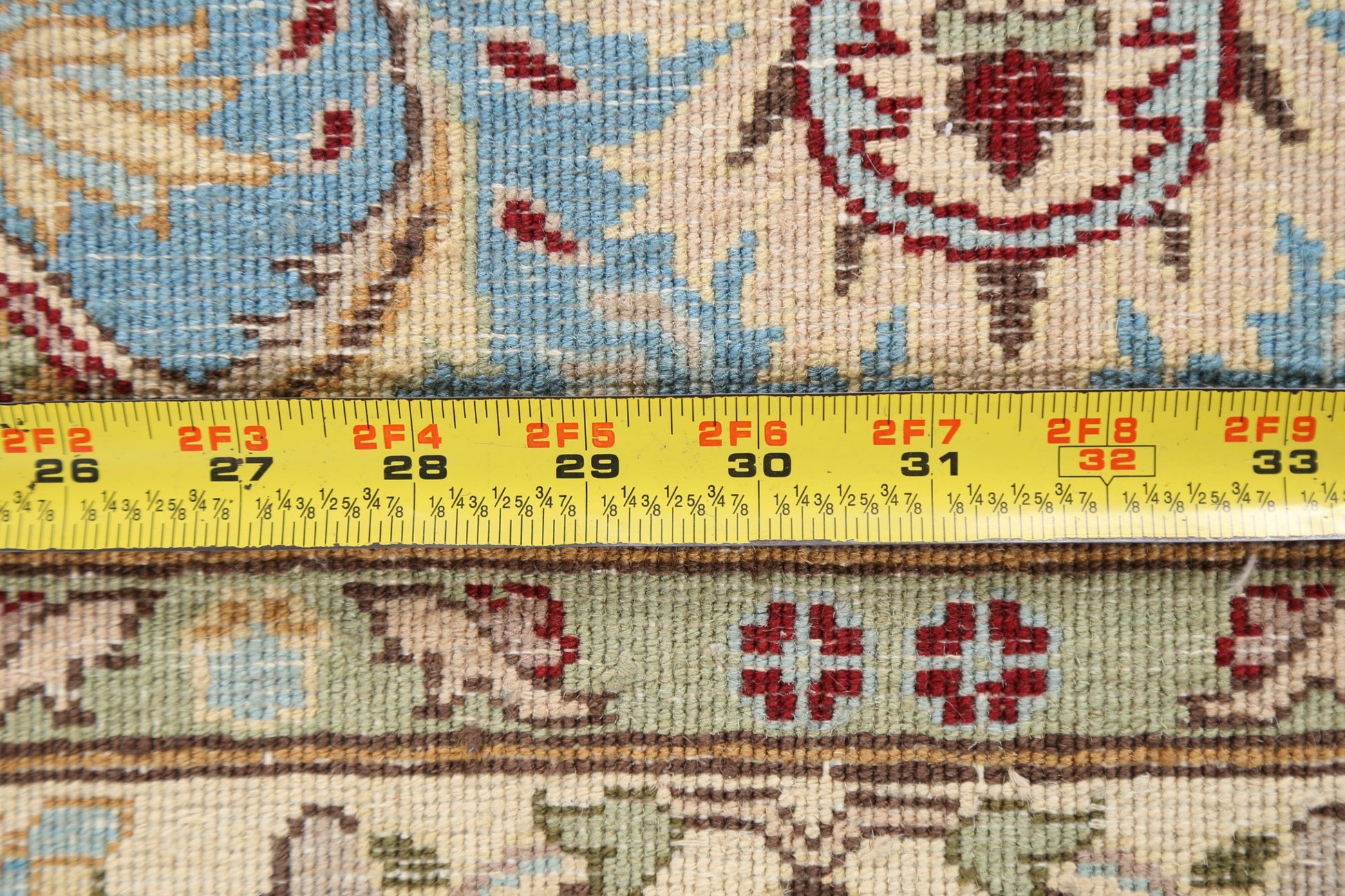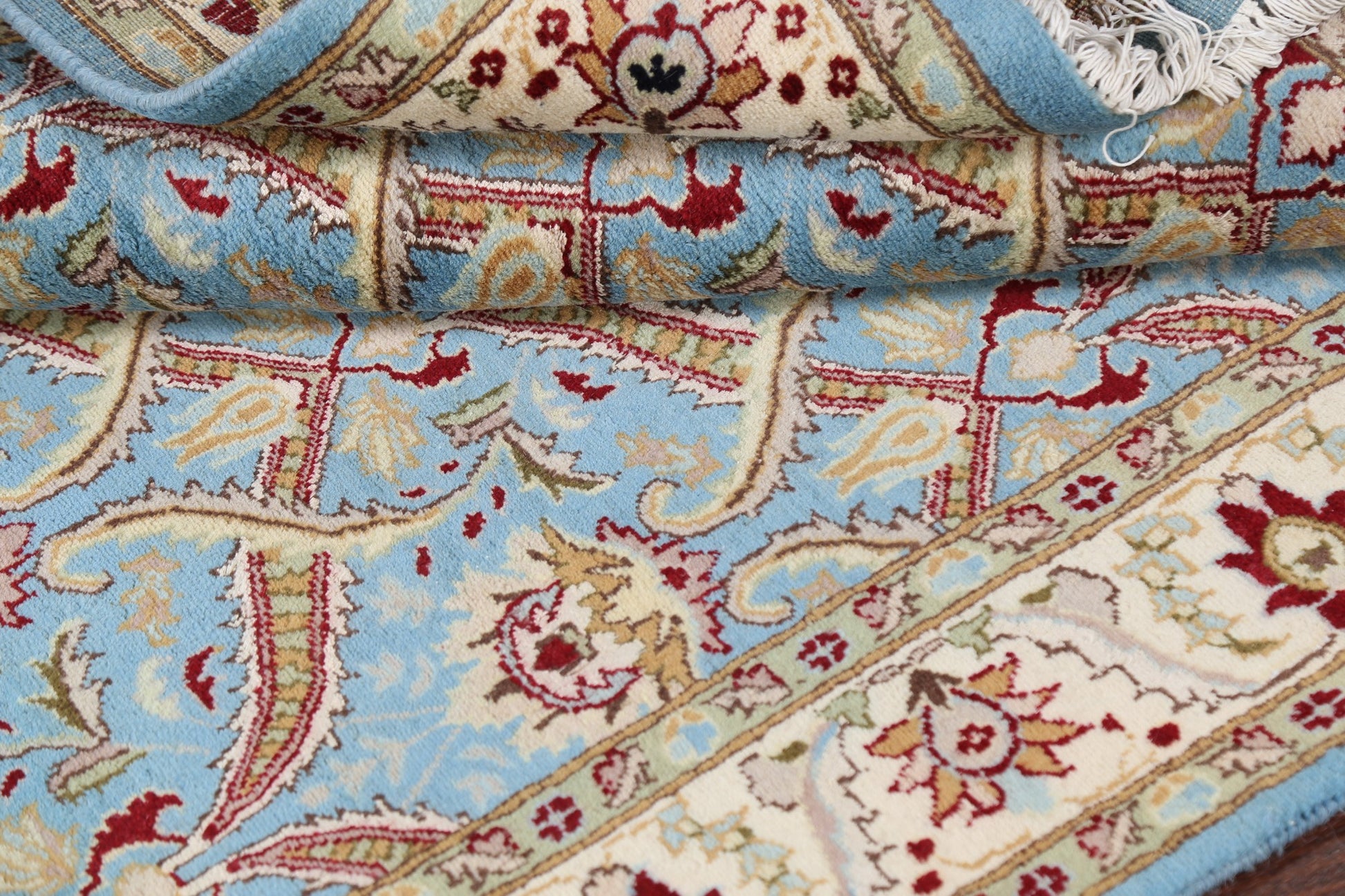 A Beautiful Genuine Pakistan Tabriz rug is Hand Knotted by skillful weavers in Pakistan with Wool & Silk Material. This rug is in New, First Quality condition. dimensions are 5' 11'' X 4' 0'' in foot and 180 X 122 in centimeter. the primary color is Navy Blue & Blues.