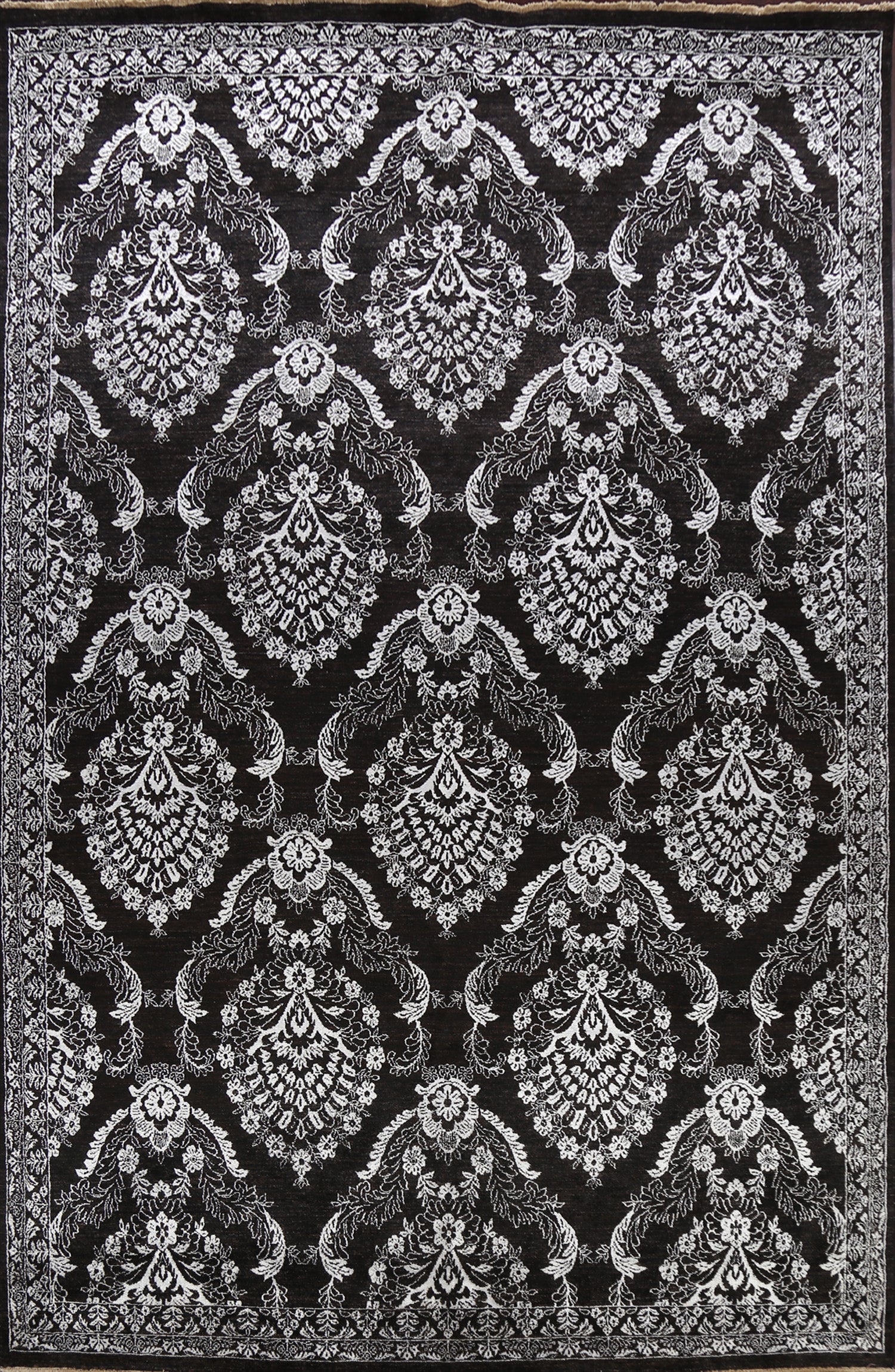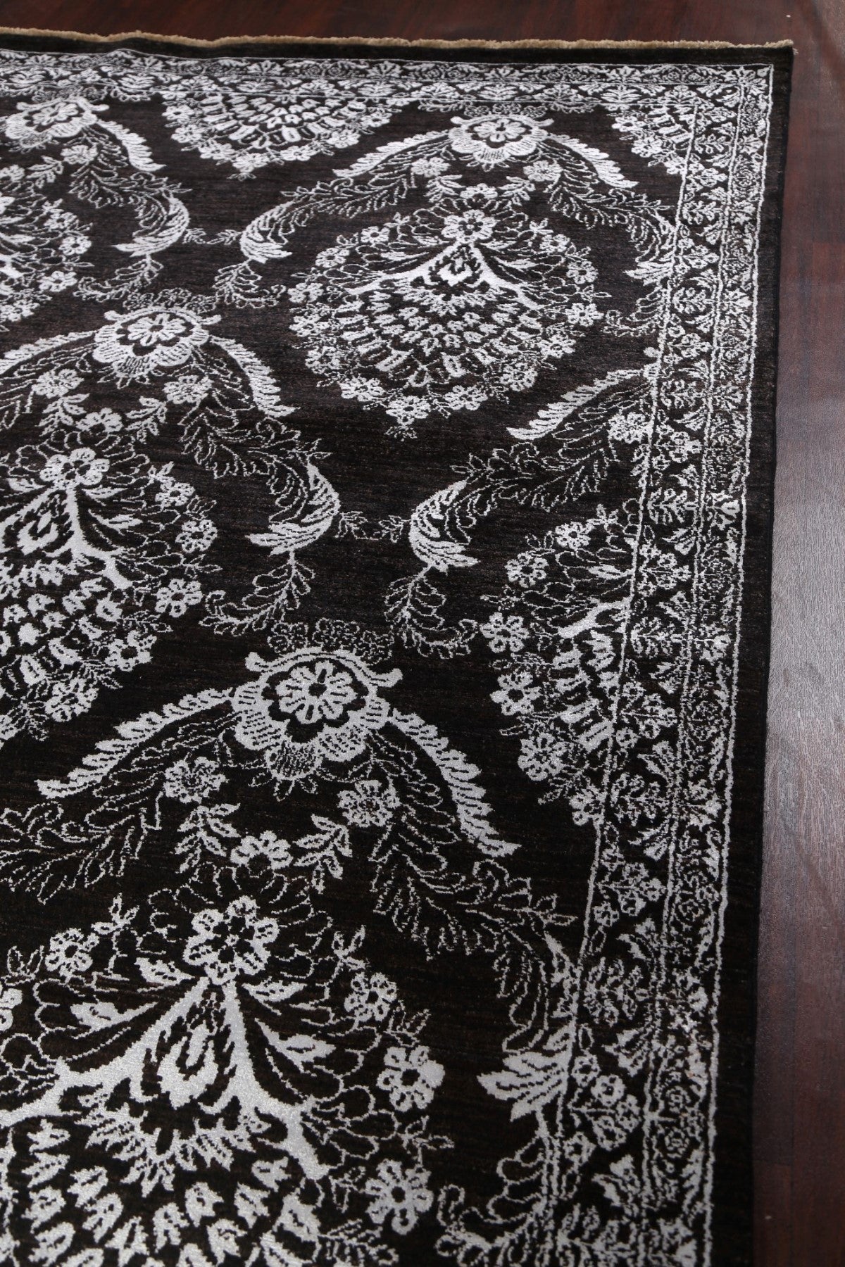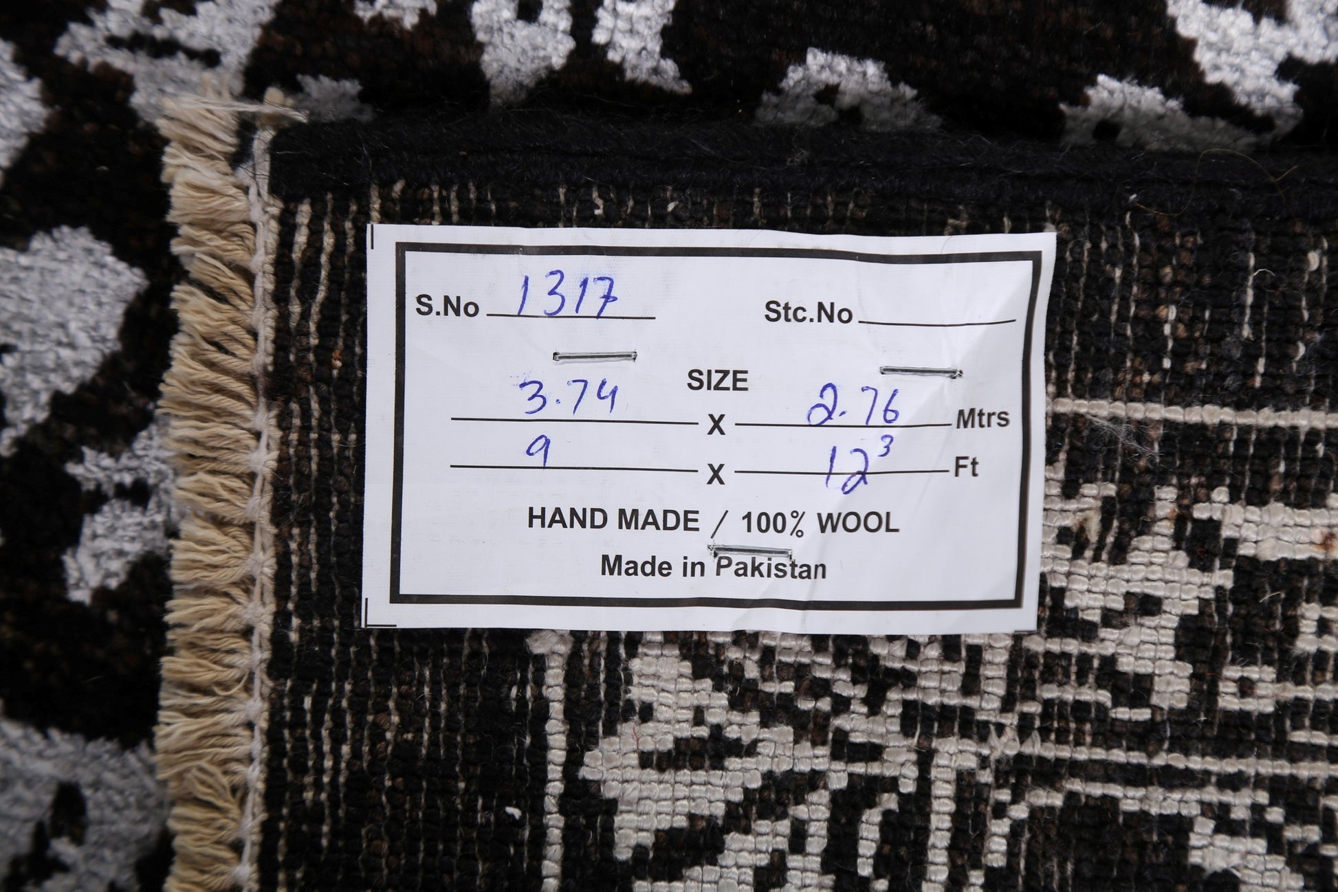 A Beautiful Genuine Pakistan Versace rug is Hand Knotted by skillful weavers in Pakistan with Wool & Silk Material. This rug is in New, First Quality condition. dimensions are 12' 3'' X 9' 0'' in foot and 373 X 274 in centimeter. the primary color is Black.