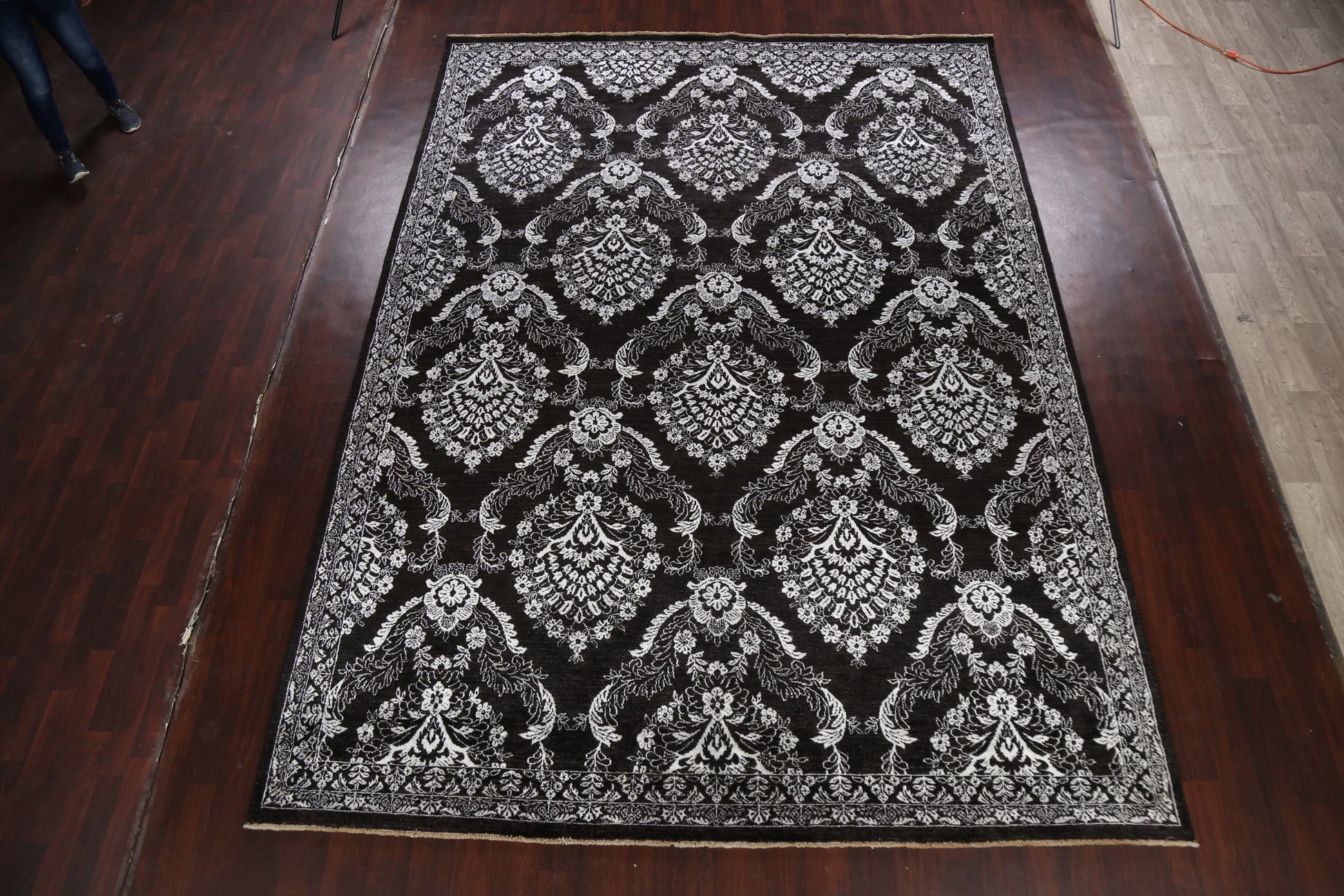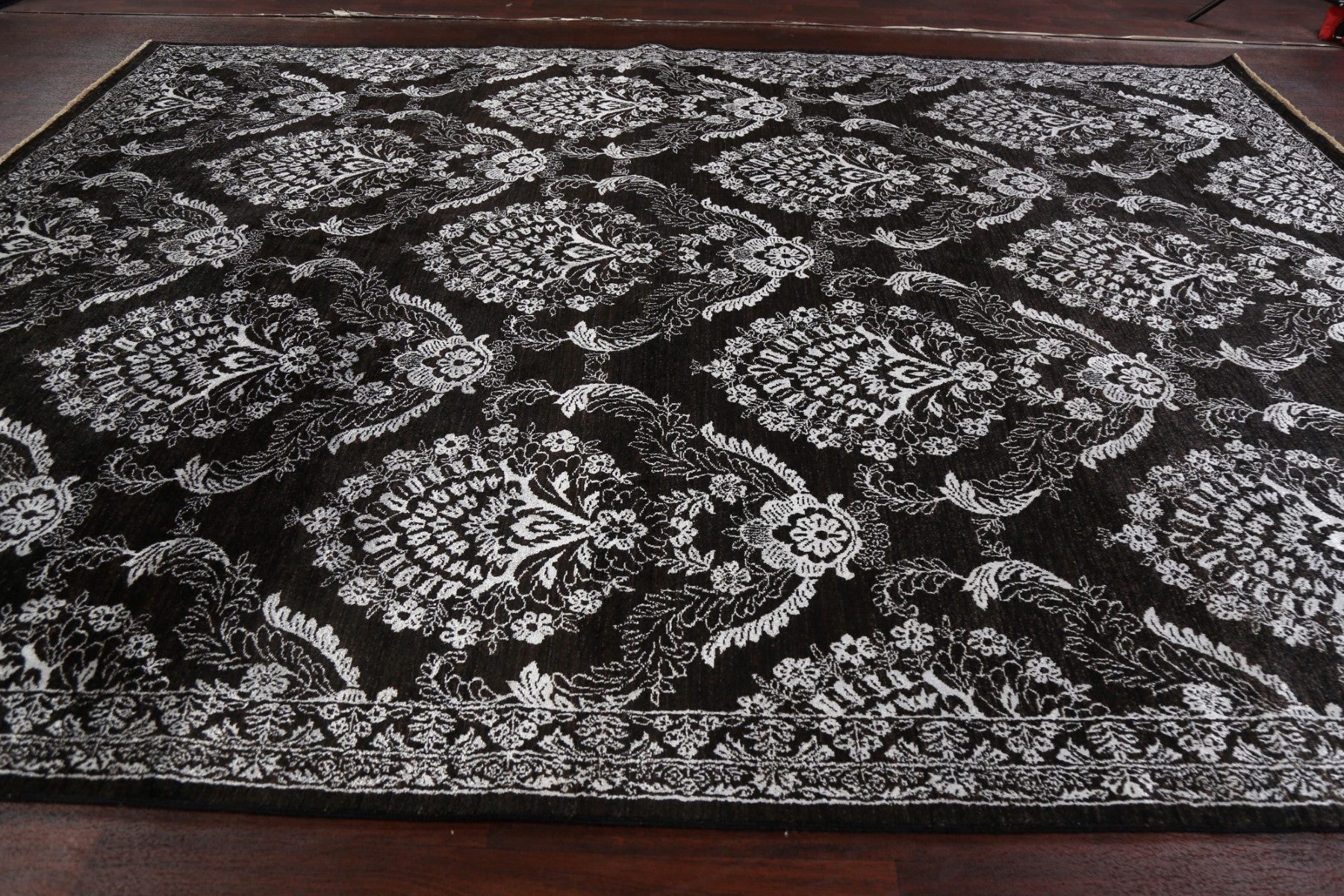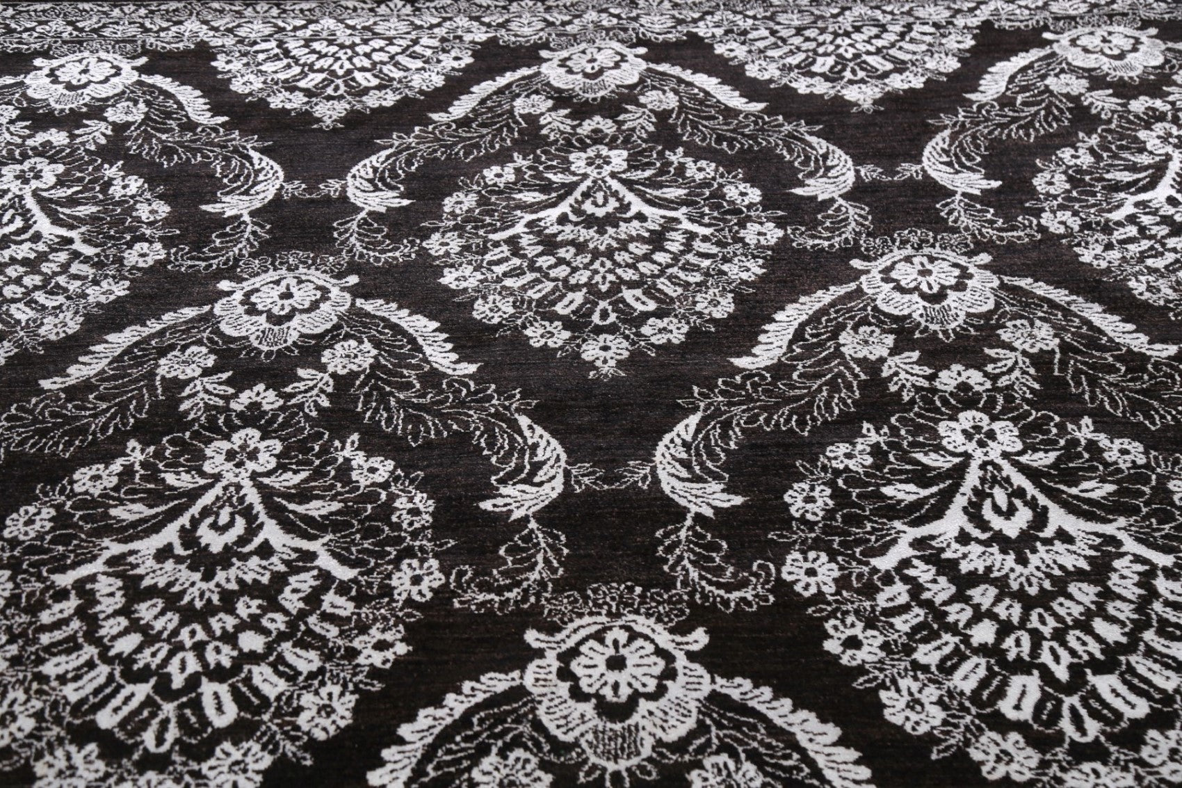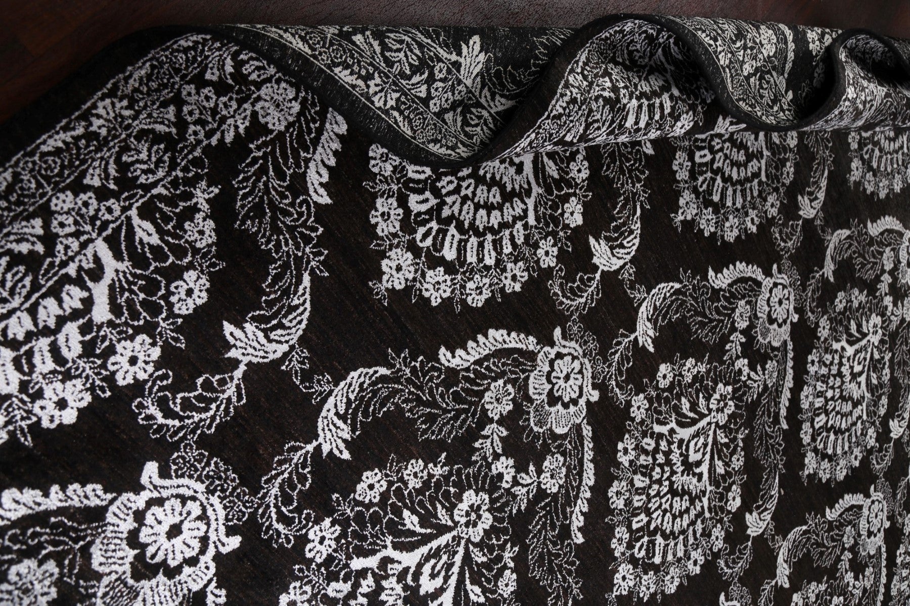 A Beautiful Genuine Pakistan Versace rug is Hand Knotted by skillful weavers in Pakistan with Wool & Silk Material. This rug is in New, First Quality condition. dimensions are 12' 3'' X 9' 0'' in foot and 373 X 274 in centimeter. the primary color is Black.