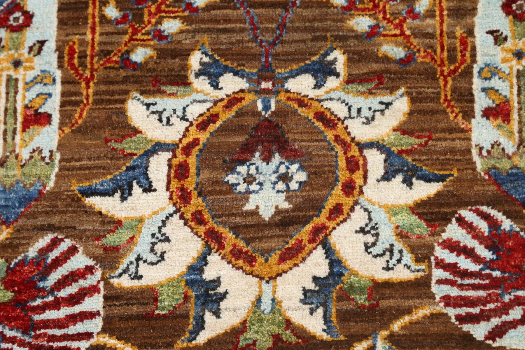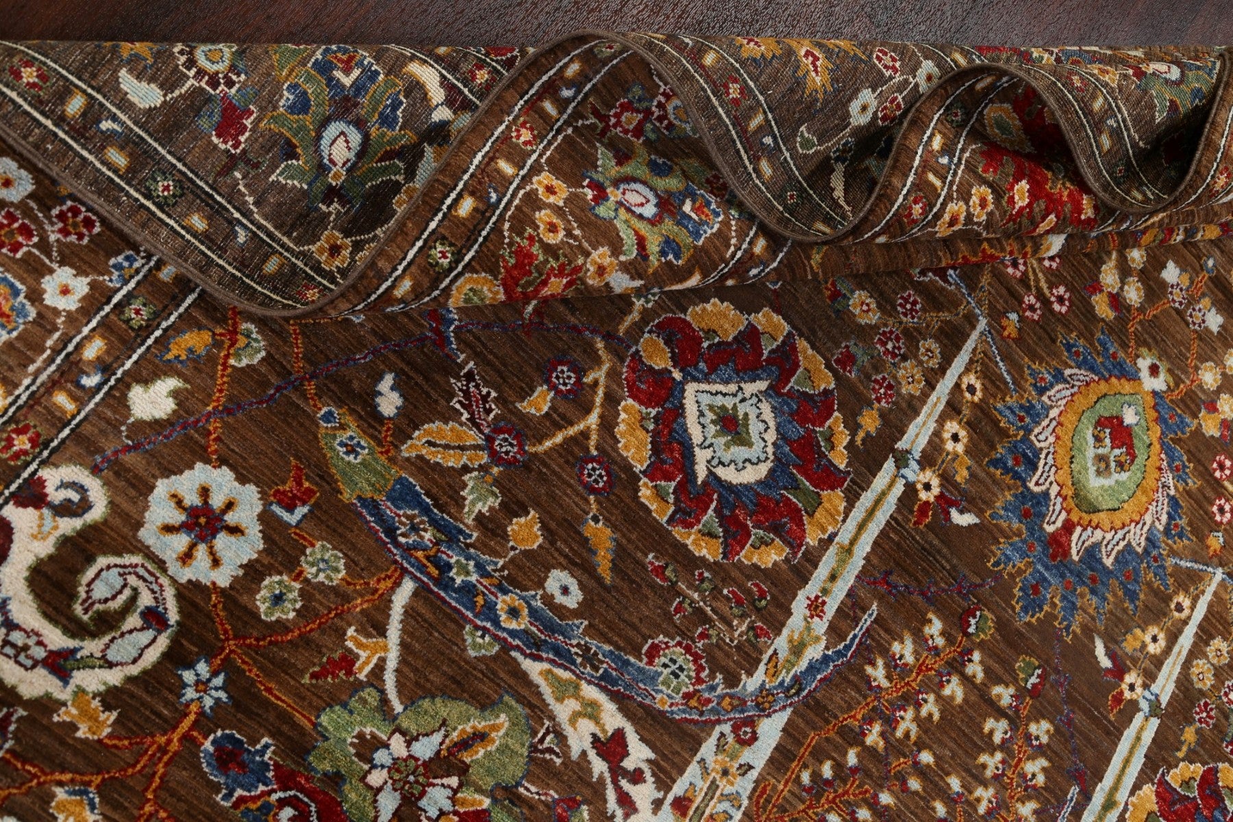 A Beautiful Genuine Pakistan Ziegler rug is Hand Knotted by skillful weavers in Pakistan with 100% Wool Material. This rug is in New, First Quality condition. dimensions are 9' 11'' X 8' 3'' in foot and 302 X 251 in centimeter. the primary color is Brown.