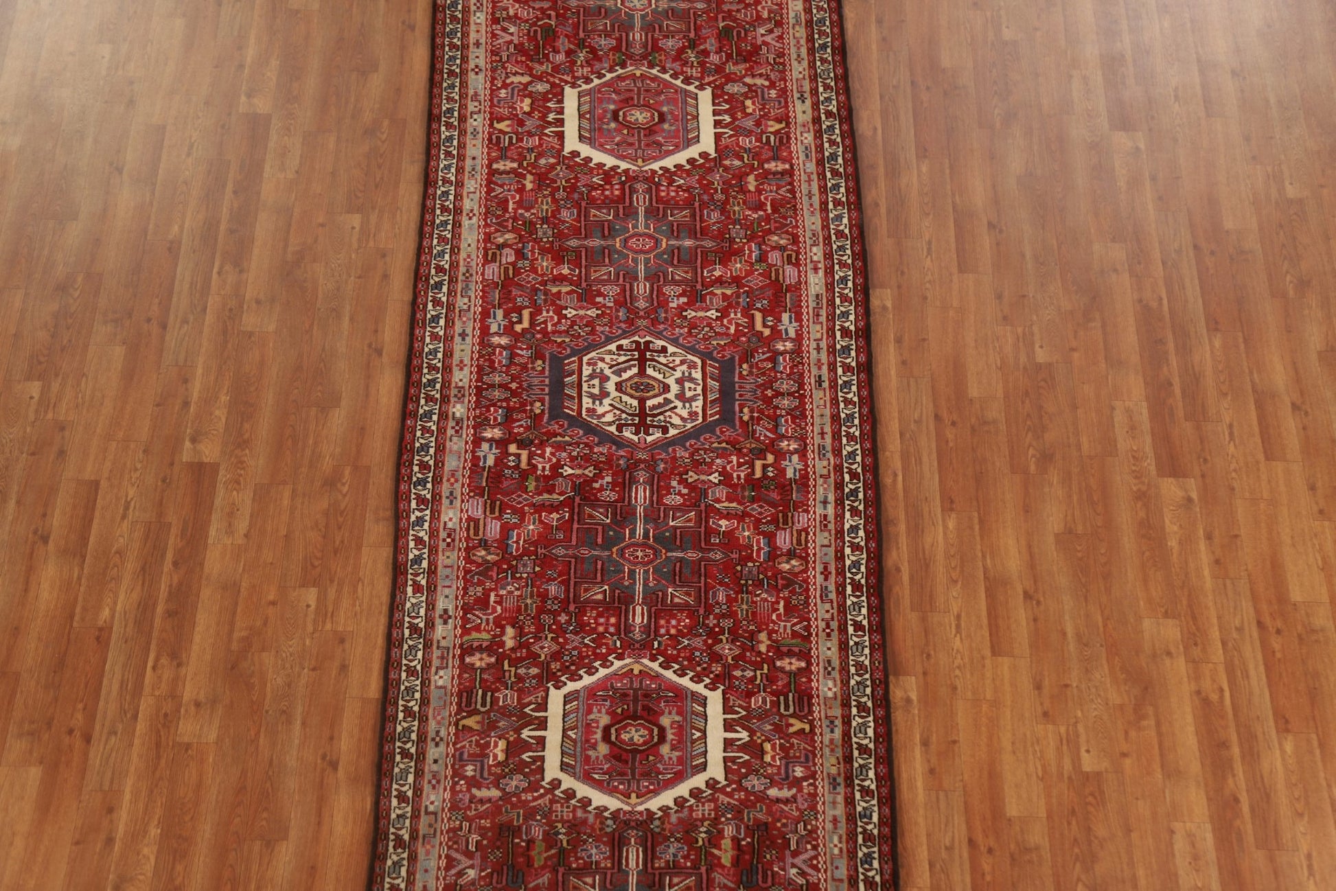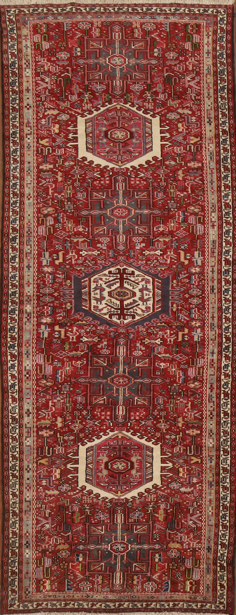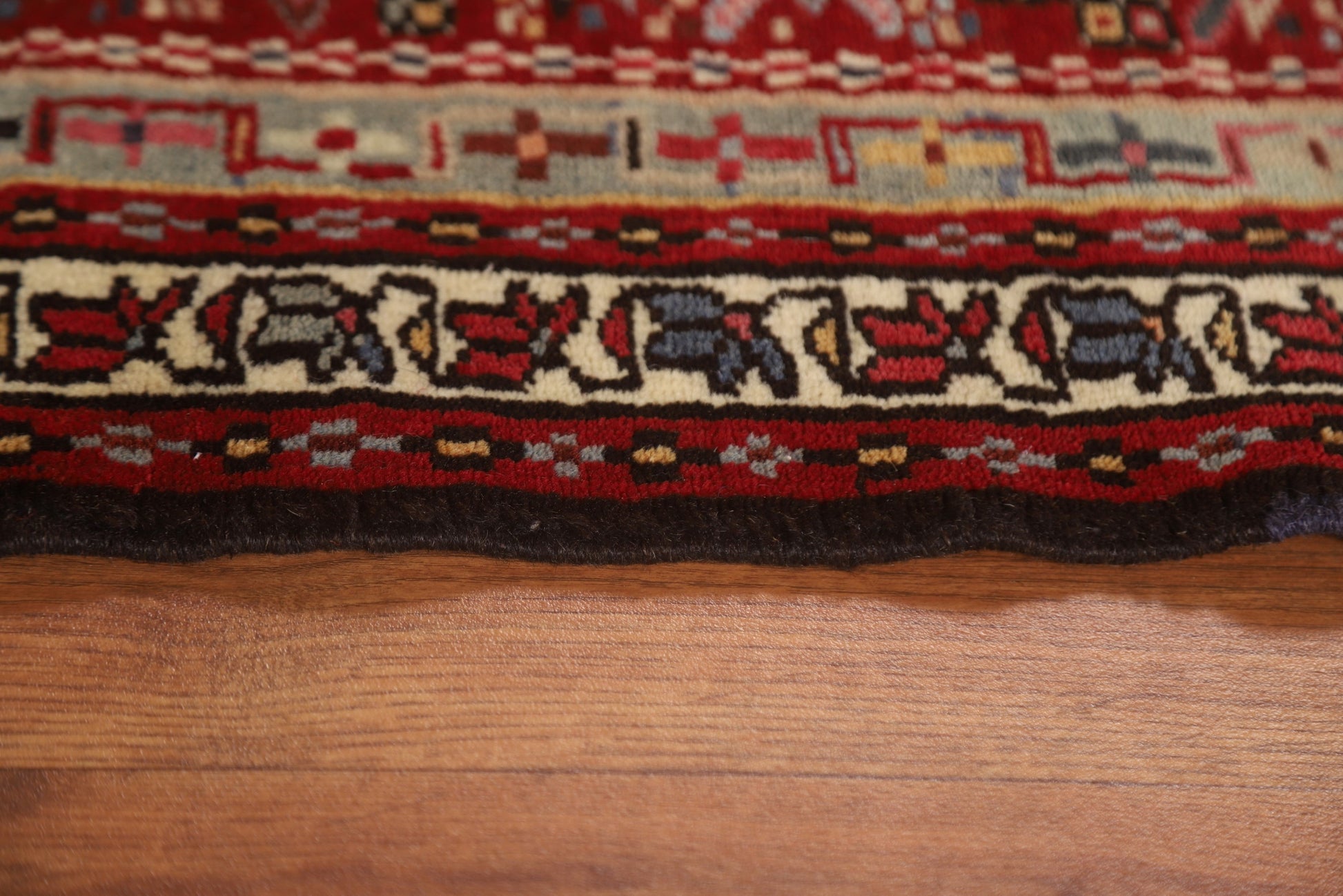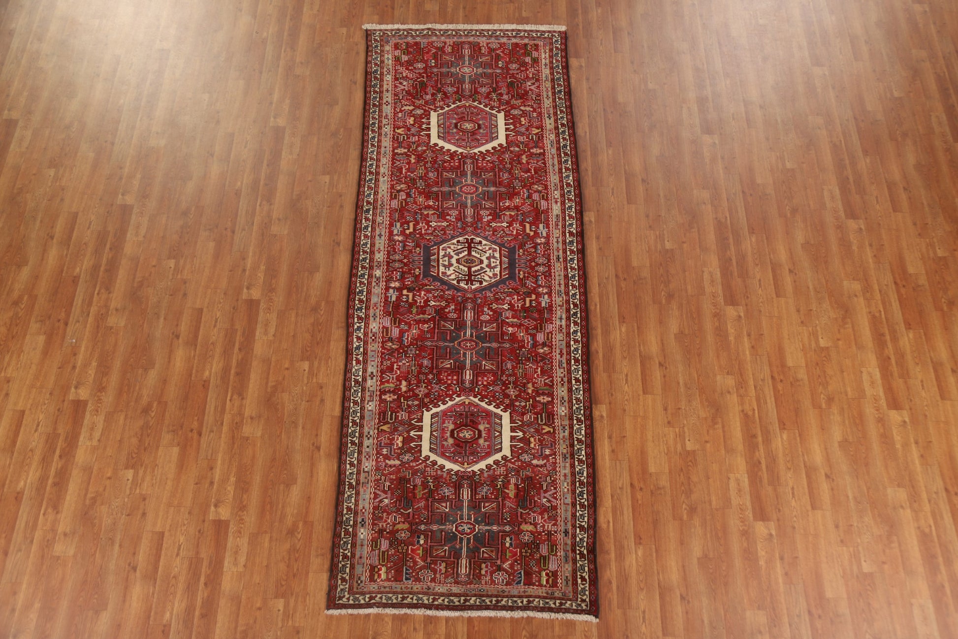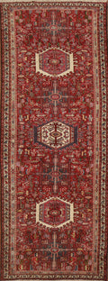 A Beautiful Genuine Persia ( Persia ) Gharajeh rug is Hand Knotted by skillful weavers in Persia ( Persia ) with 100% Wool Material. This rug is in Very Good condition. dimensions are 10' 0'' X 3' 7'' in foot and 305 X 109 in centimeter. the primary color is Red.