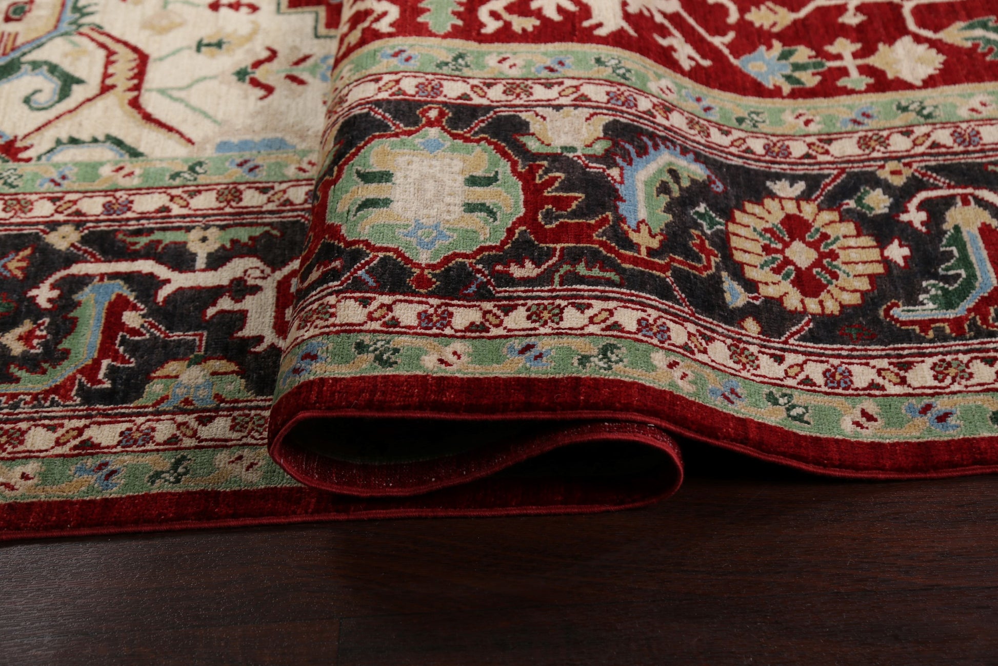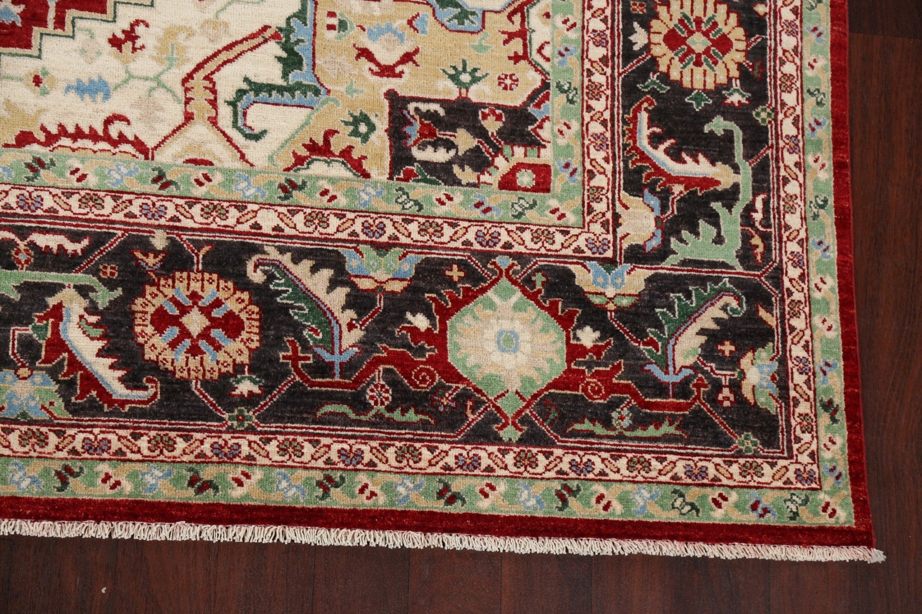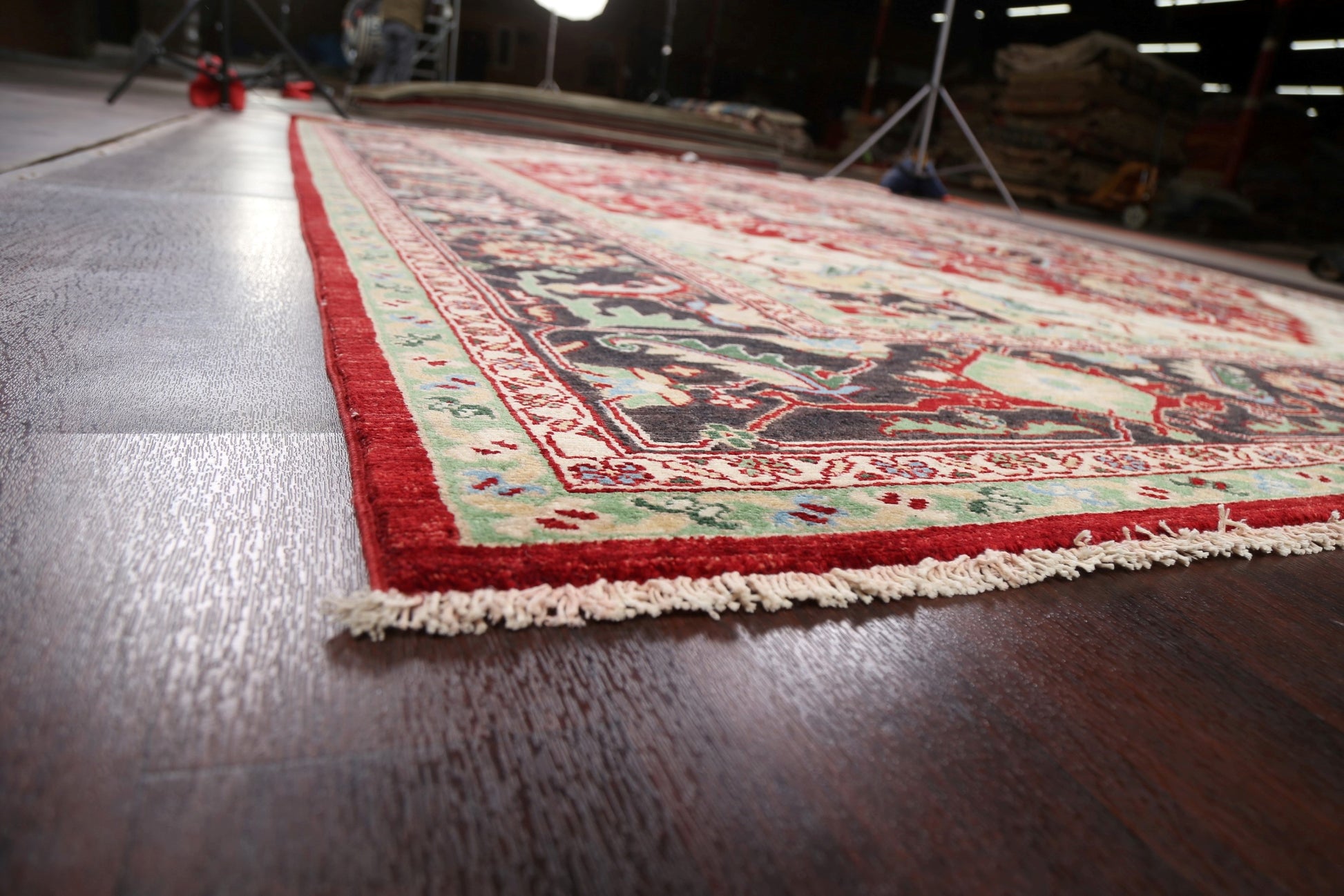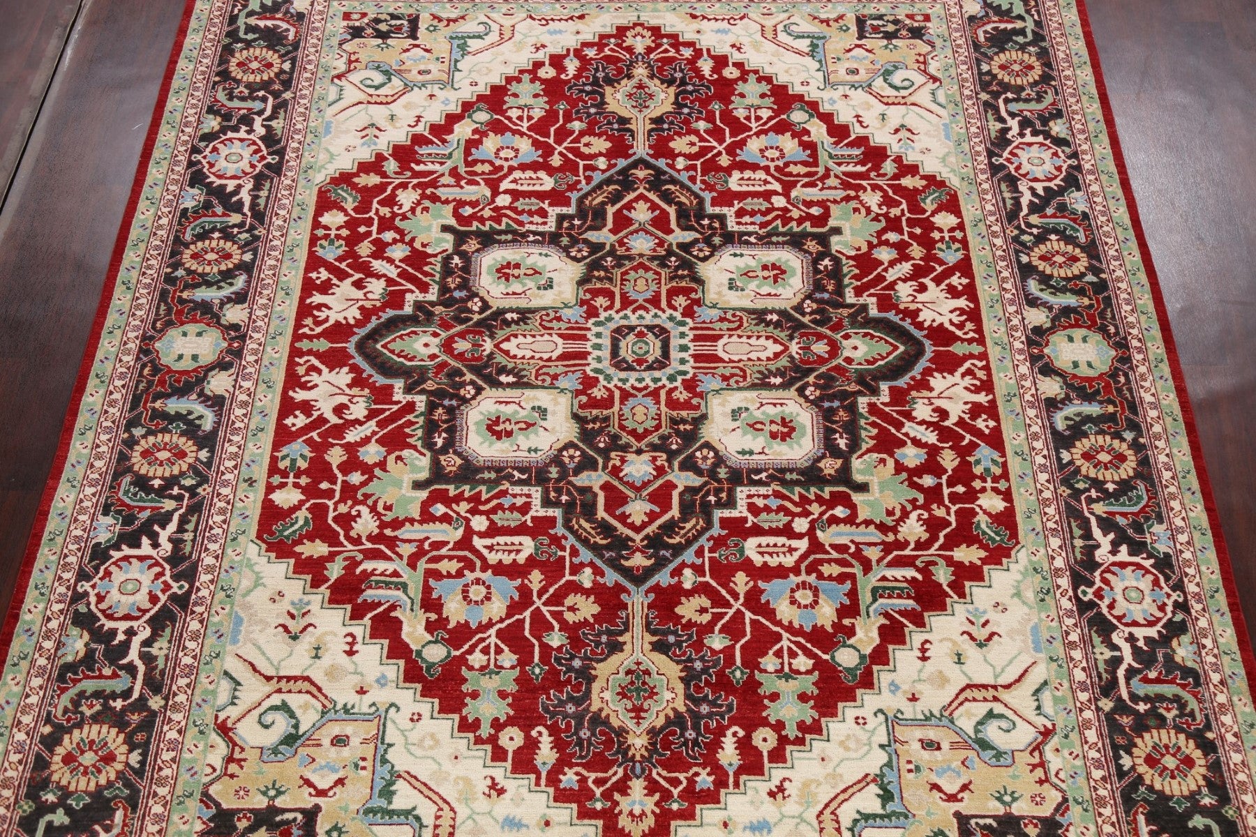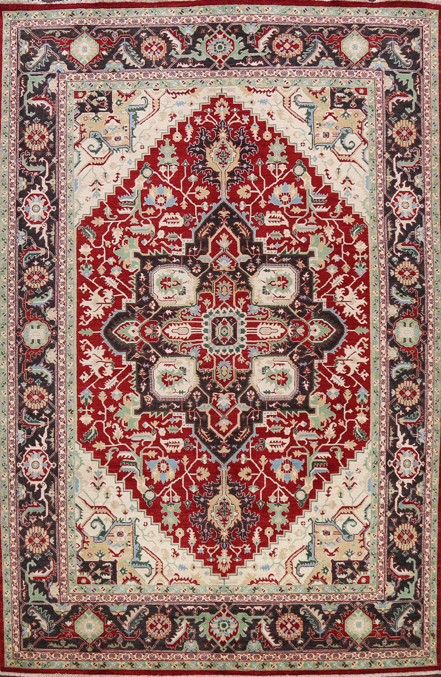 A Beautiful Genuine Pakistan Heriz rug is Hand Knotted by skillful weavers in Pakistan with 100% Wool Material. This rug is in New, First Quality condition. dimensions are 11' 8'' X 9' 0'' in foot and 356 X 274 in centimeter. the primary color is Red.