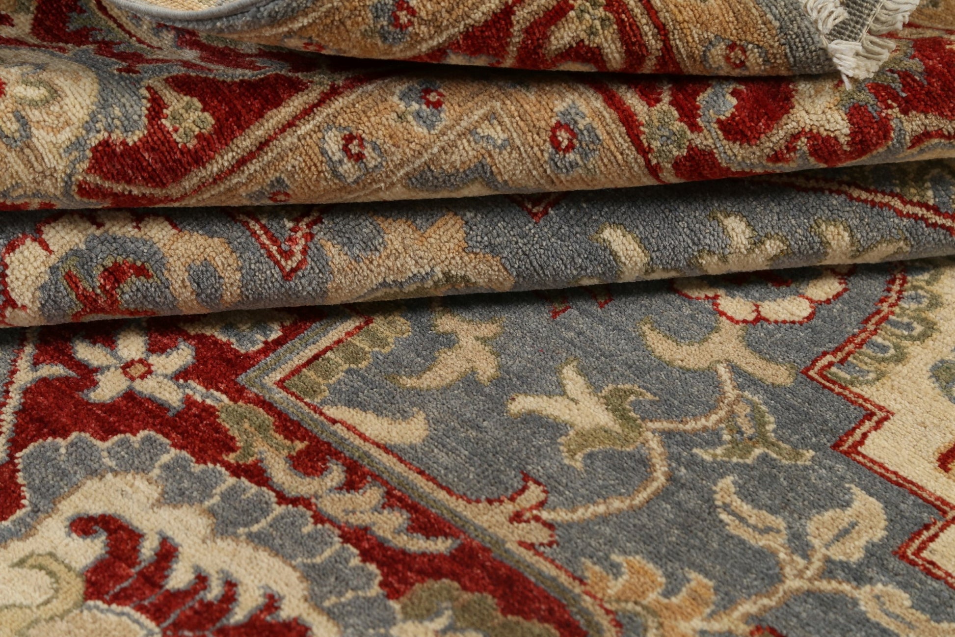 A Beautiful Genuine Pakistan Heriz (serapi) rug is Hand Knotted by skillful weavers in Pakistan with 100% Wool Material. This rug is in New, First Quality condition. dimensions are 9' 4'' X 6' 1'' in foot and 284 X 185 in centimeter. the primary color is Greys & Charcoal.