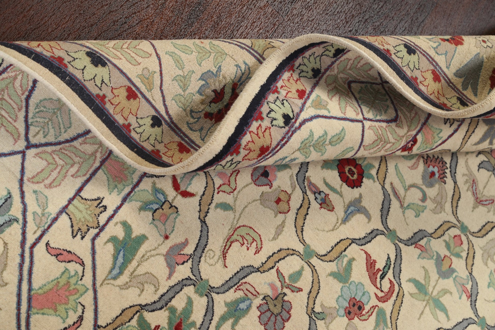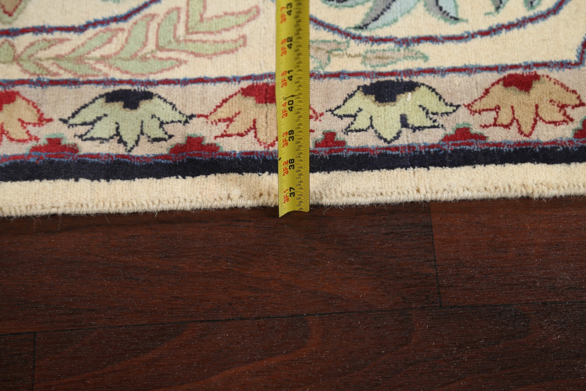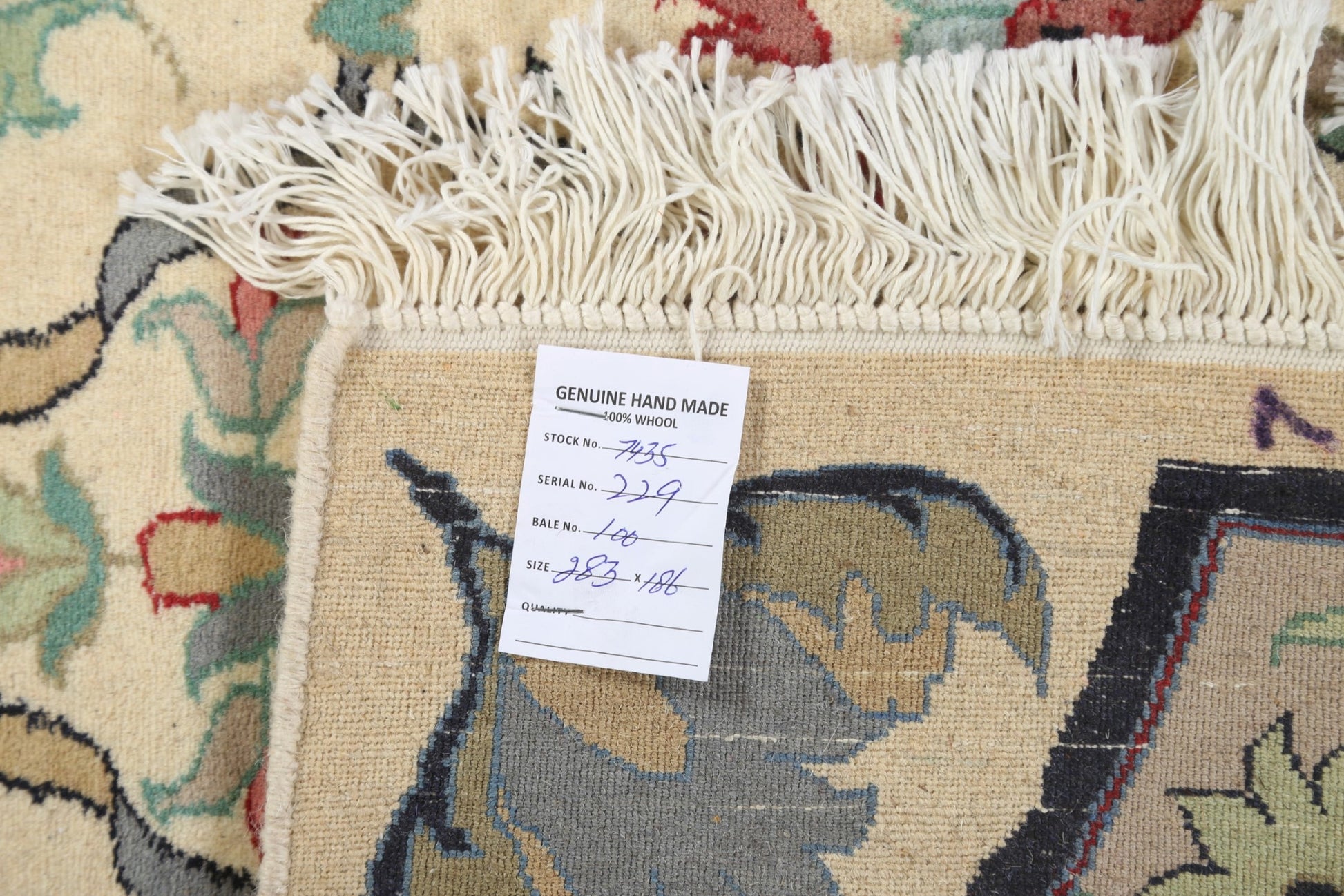A Beautiful Genuine Pakistan Kashan rug is Hand Knotted by skillful weavers in Pakistan with 100% Wool Material. This rug is in New, First Quality condition. dimensions are 9' 4'' X 6' 2'' in foot and 284 X 188 in centimeter. the primary color is Beige & Ivories.