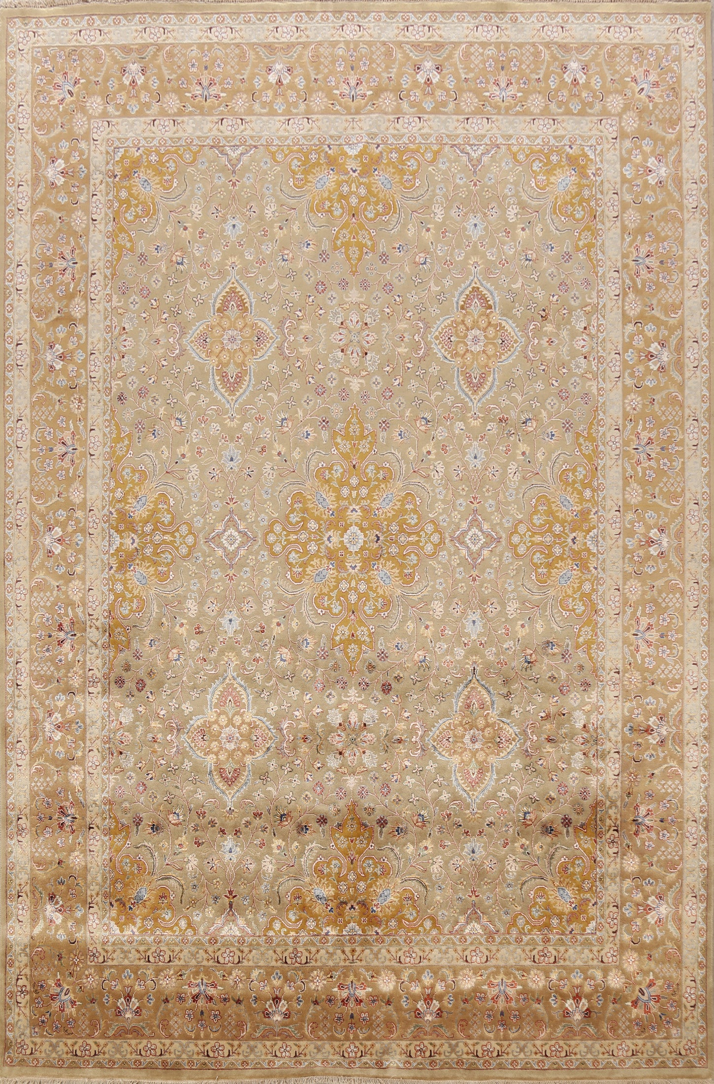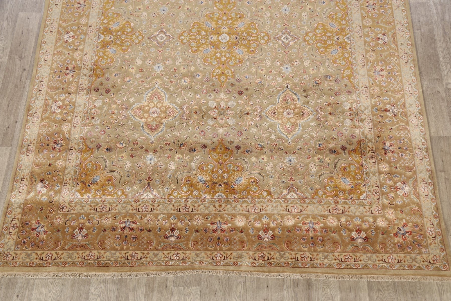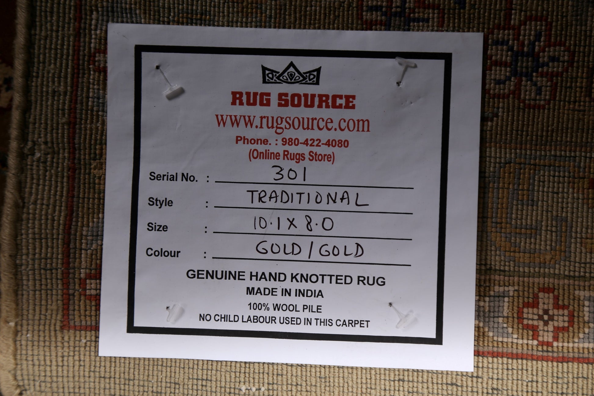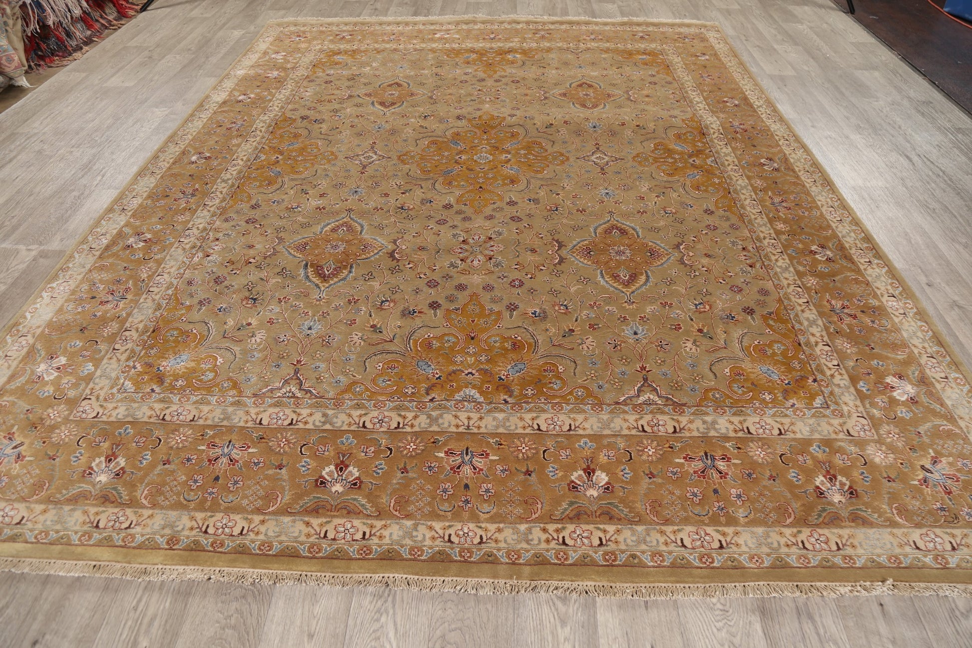 A Beautiful Genuine India Kashan rug is Hand Knotted by skillful weavers in India with 100% Wool Material. This rug is in New, First Quality condition. dimensions are 10' 1'' X 8' 0'' in foot and 307 X 244 in centimeter. the primary color is Beige & Ivories.