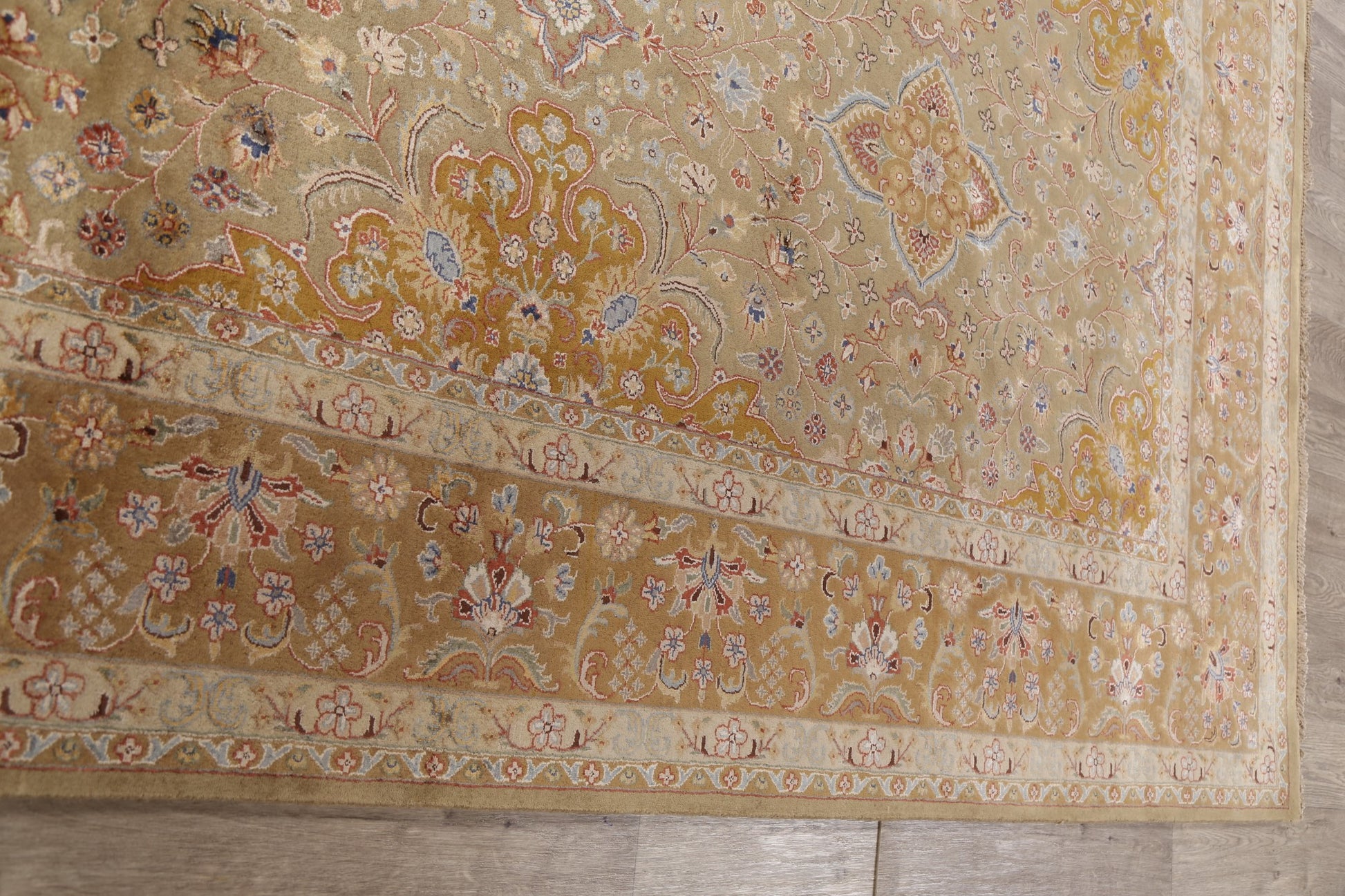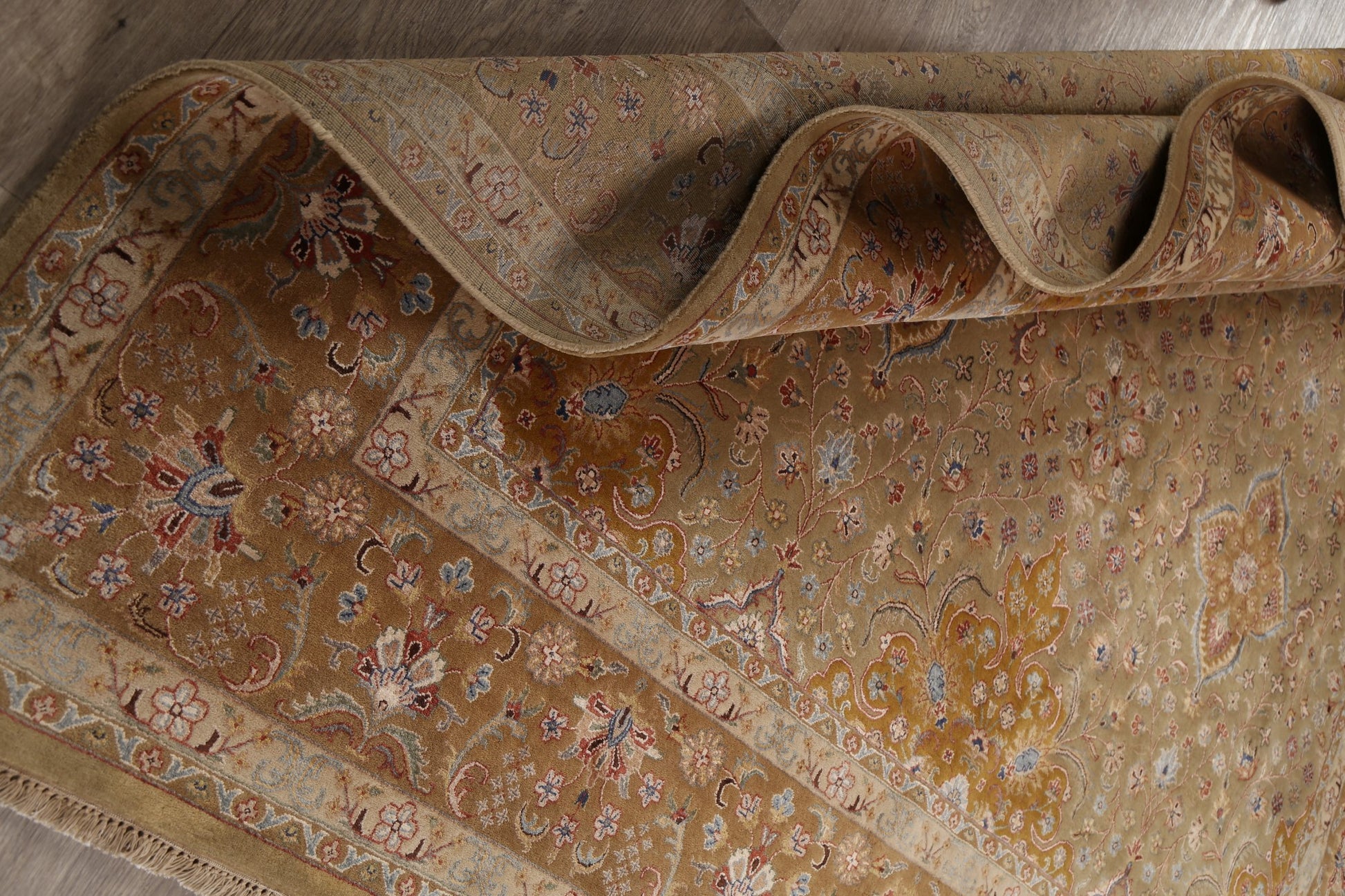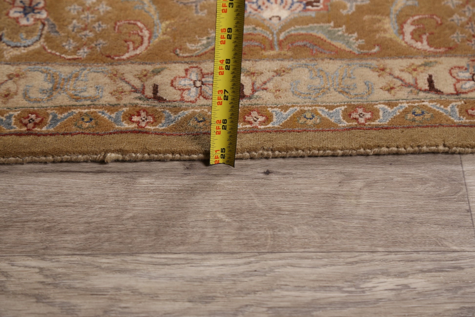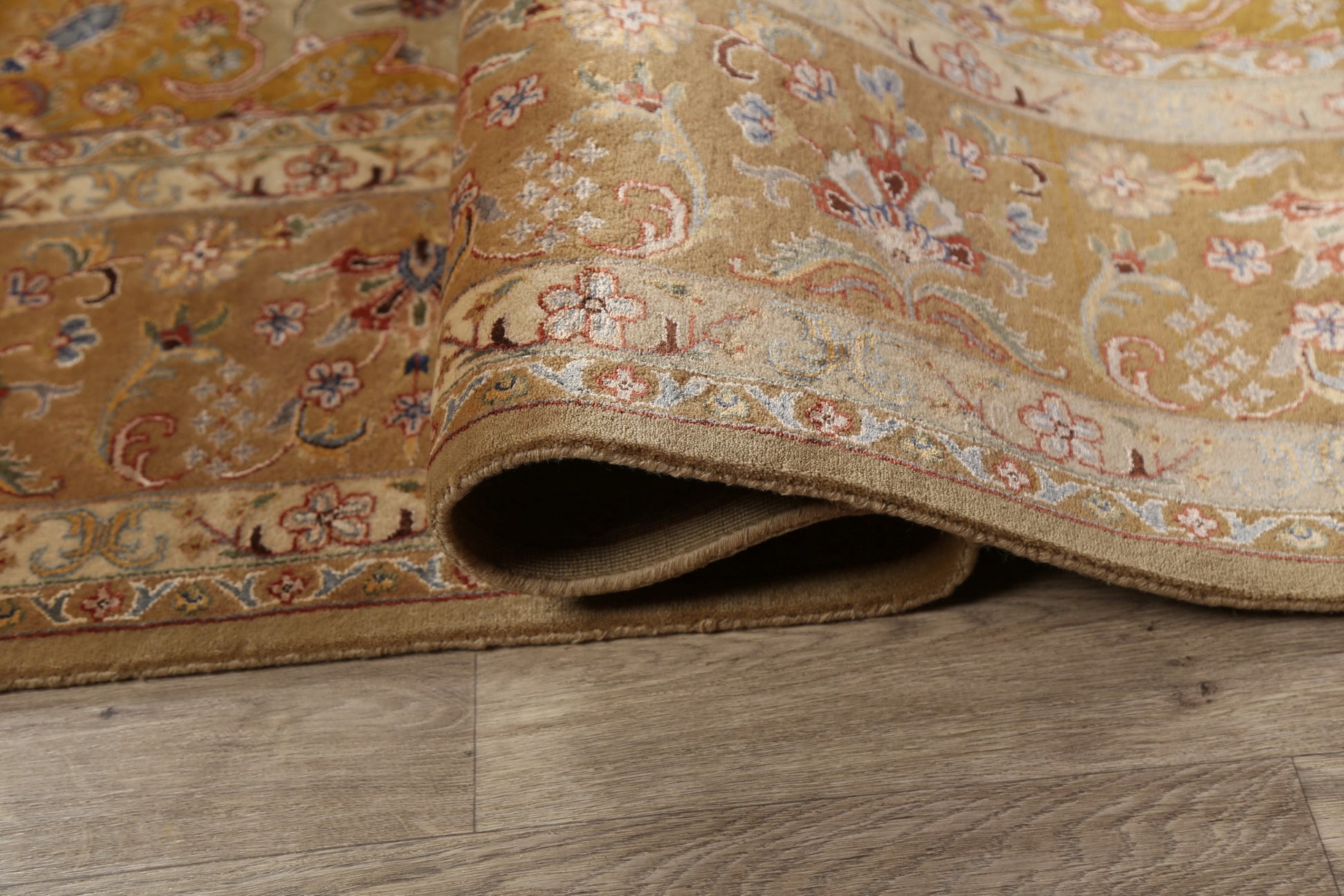 A Beautiful Genuine India Kashan rug is Hand Knotted by skillful weavers in India with 100% Wool Material. This rug is in New, First Quality condition. dimensions are 10' 1'' X 8' 0'' in foot and 307 X 244 in centimeter. the primary color is Beige & Ivories.