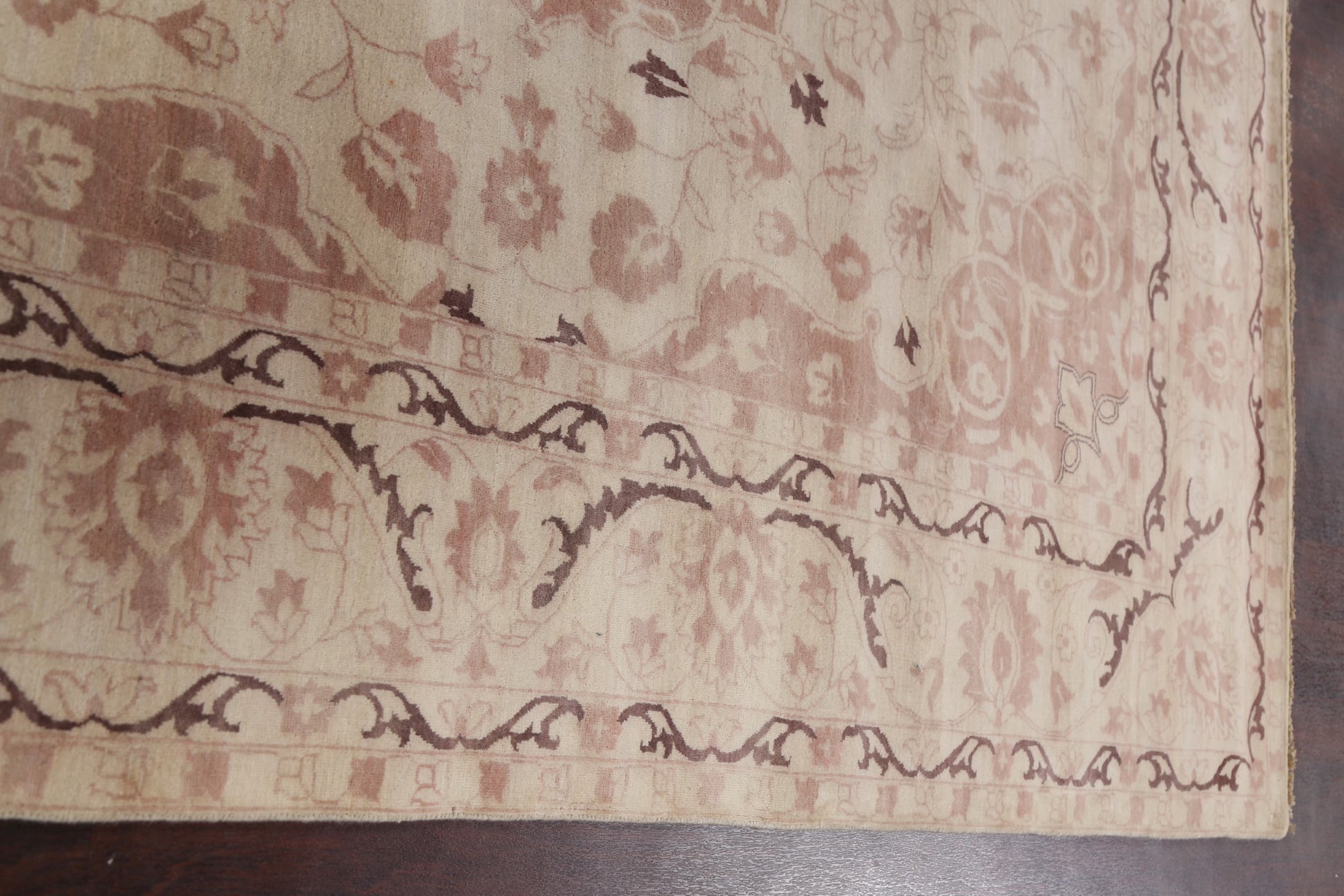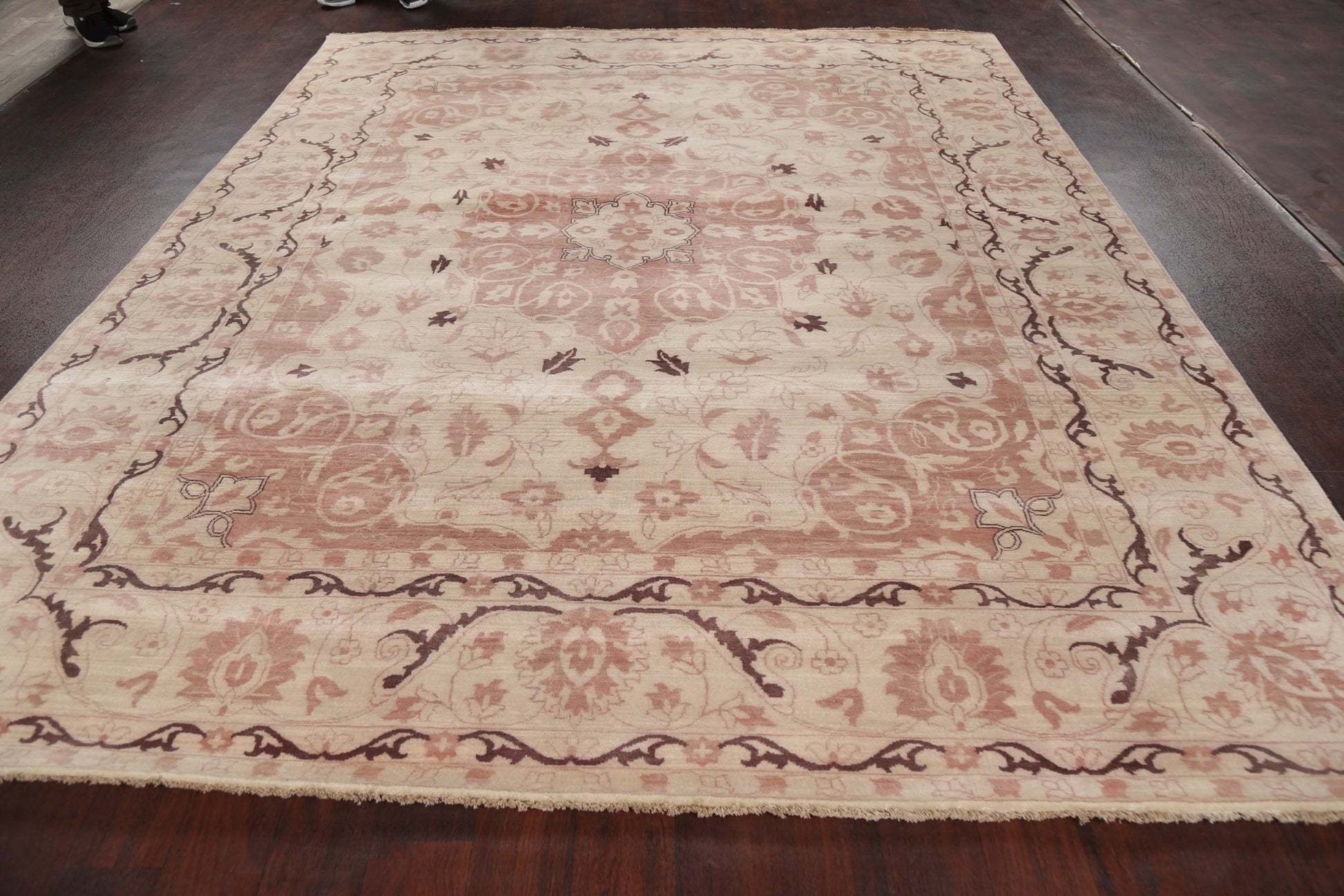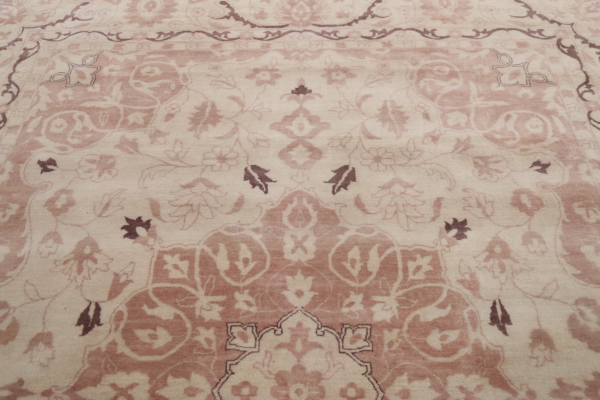 A Beautiful Genuine India Kashan rug is Hand Knotted by skillful weavers in India with 100% Wool Material. This rug is in New, First Quality condition. dimensions are 9' 11'' X 8' 0'' in foot and 302 X 244 in centimeter. the primary color is Beige & Ivories.