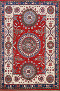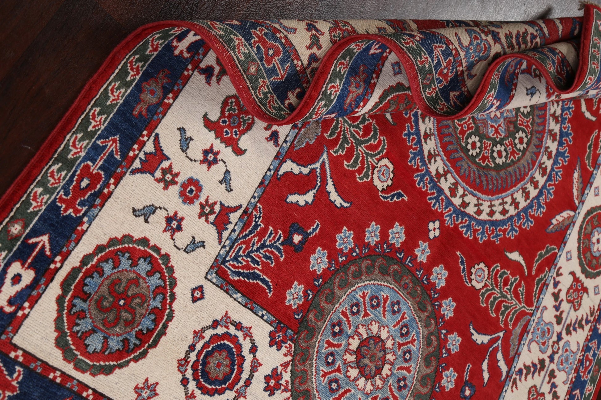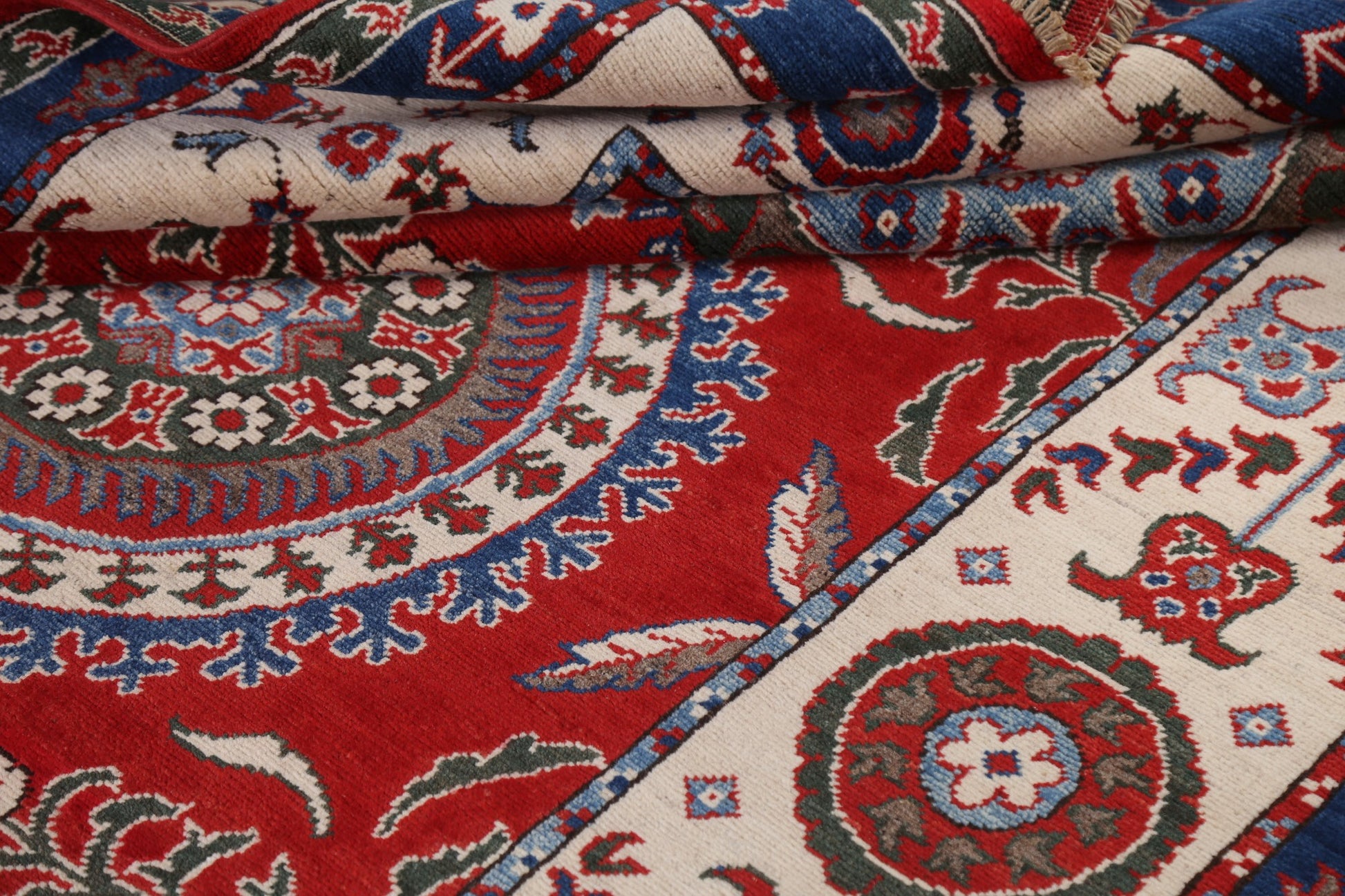 A Beautiful Genuine Pakistan Kazak rug is Hand Knotted by skillful weavers in Pakistan with 100% Wool Material. This rug is in New, First Quality condition. dimensions are 8' 0'' X 5' 7'' in foot and 244 X 170 in centimeter. the primary color is Red.