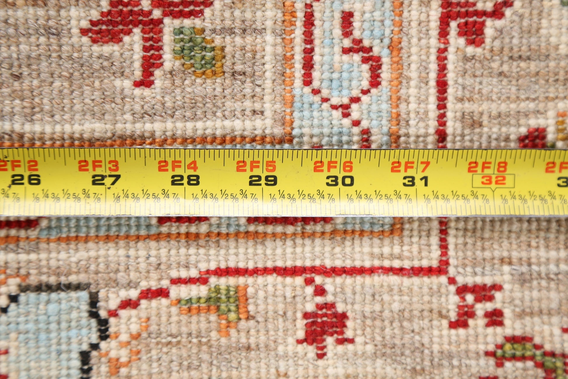 A Beautiful Genuine Pakistan Kazak rug is Hand Knotted by skillful weavers in Pakistan with 100% Wool Material. This rug is in New, First Quality condition. dimensions are 7' 11'' X 5' 8'' in foot and 241 X 173 in centimeter. the primary color is Beige & Ivories.