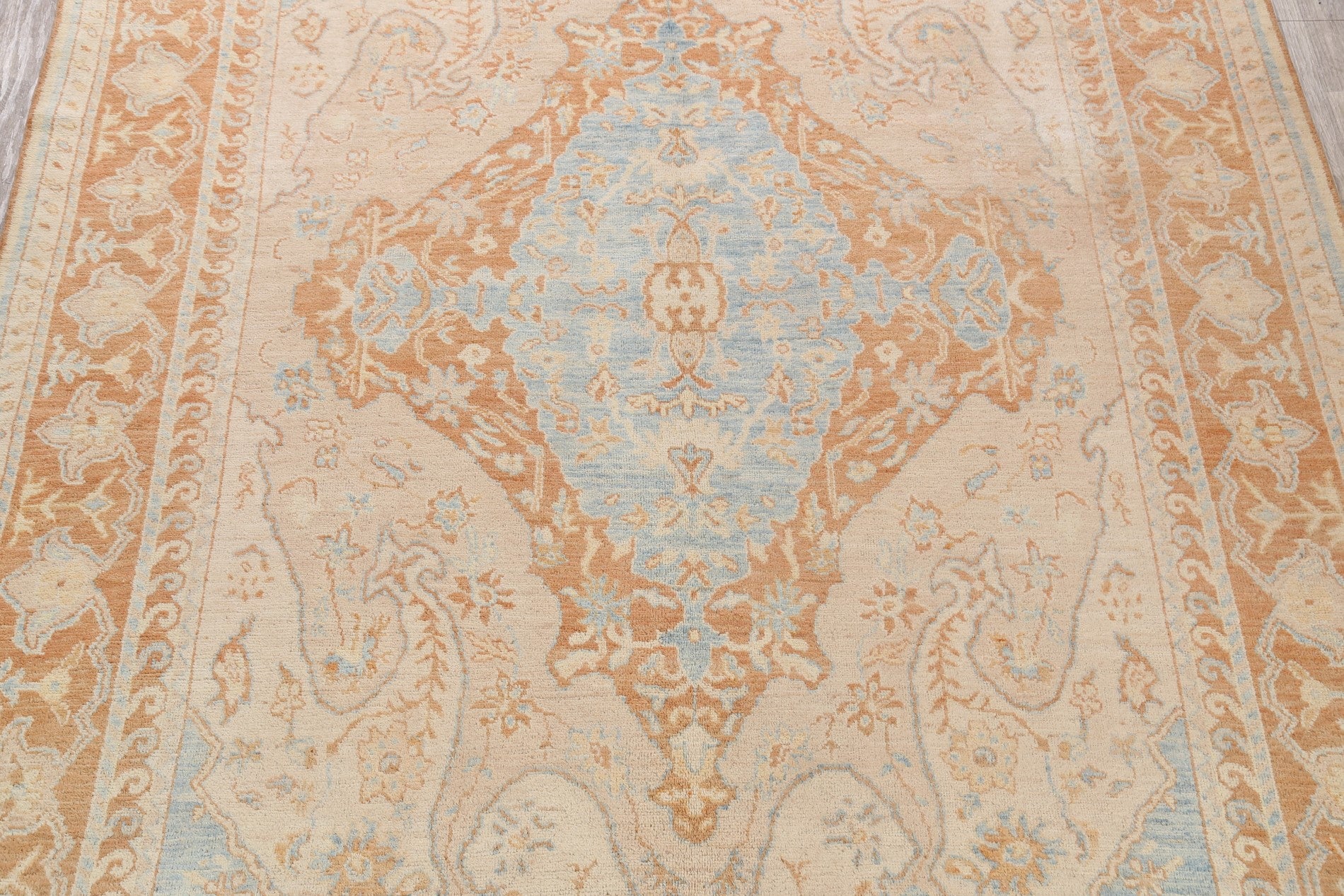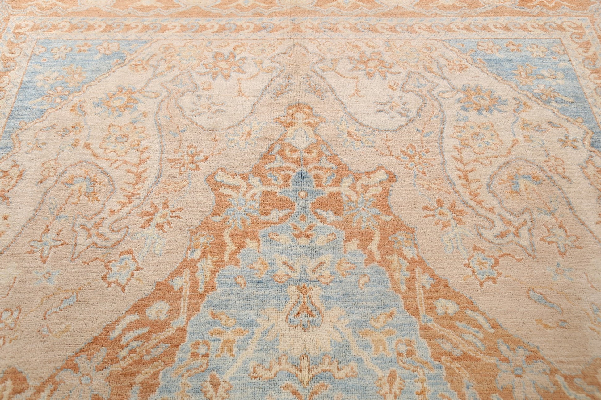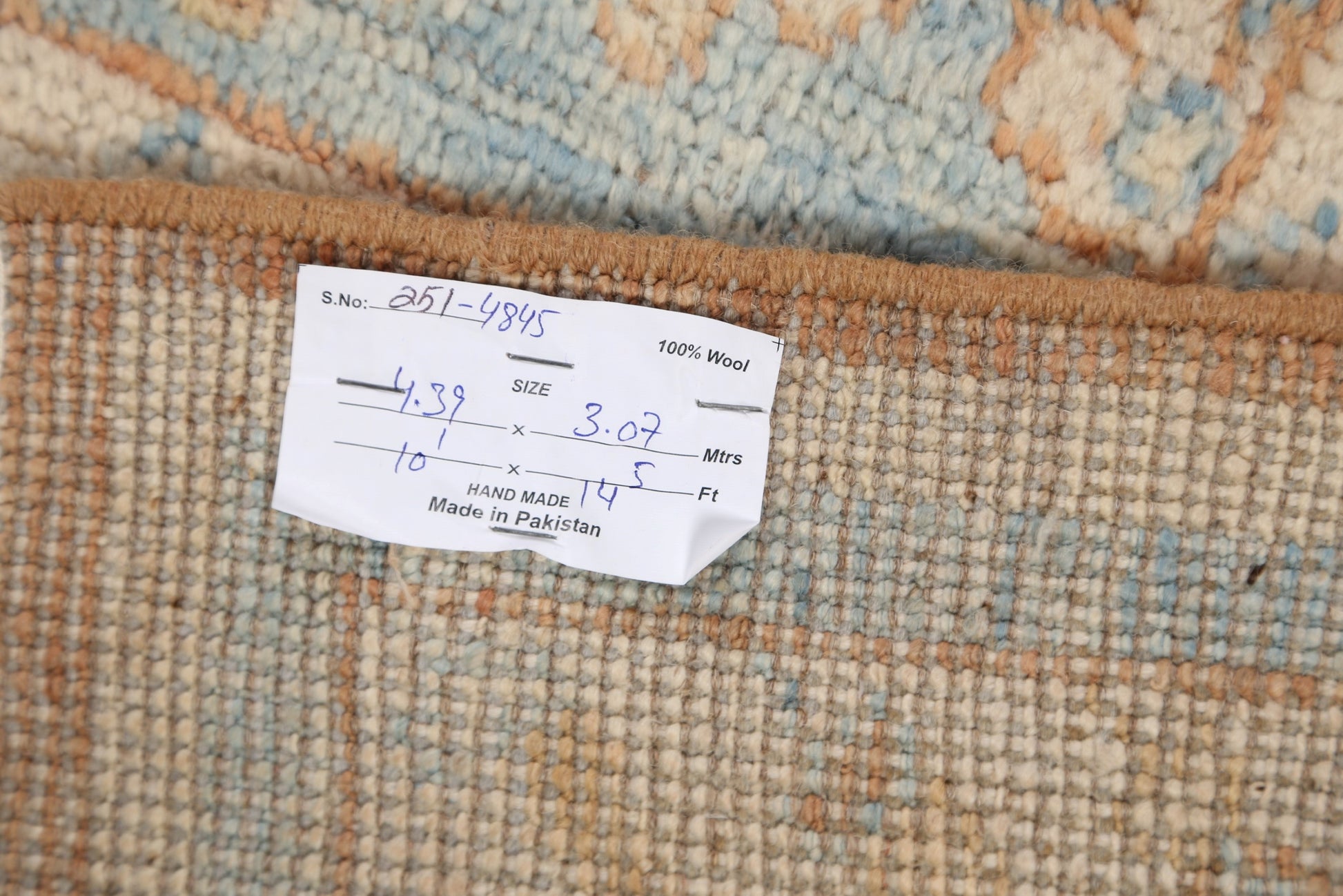 A Beautiful Genuine Pakistan Khotan rug is Hand Knotted by skillful weavers in Pakistan with 100% Wool Material. This rug is in New, First Quality condition. dimensions are 14' 5'' X 10' 1'' in foot and 439 X 307 in centimeter. the primary color is Navy Blue & Blues.