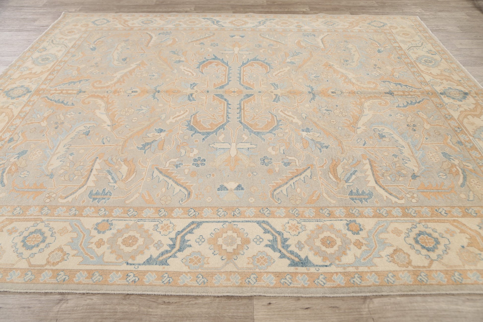 A Beautiful Genuine Pakistan Khotan rug is Hand Knotted by skillful weavers in Pakistan with 100% Wool Material. This rug is in New, First Quality condition. dimensions are 9' 9'' X 8' 3'' in foot and 297 X 251 in centimeter. the primary color is Greys & Charcoal.