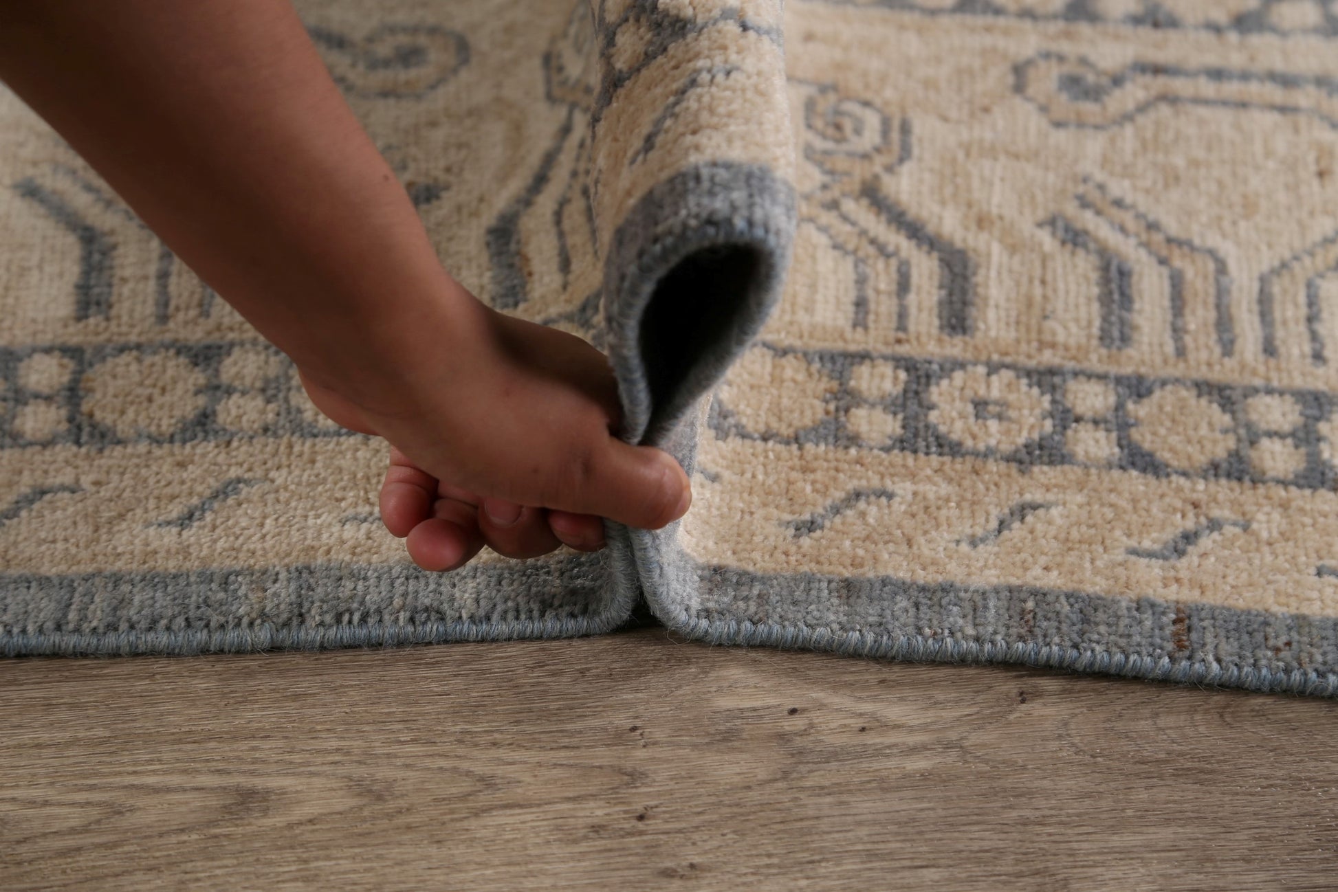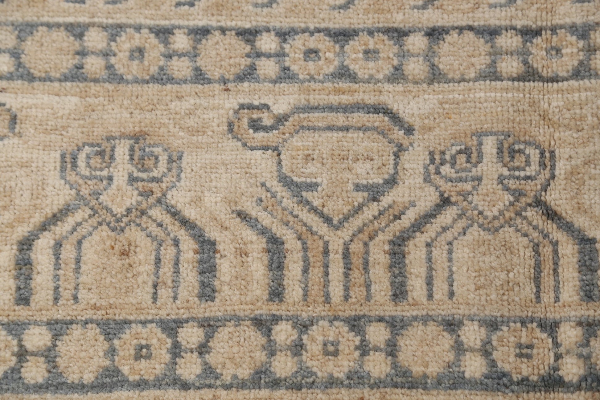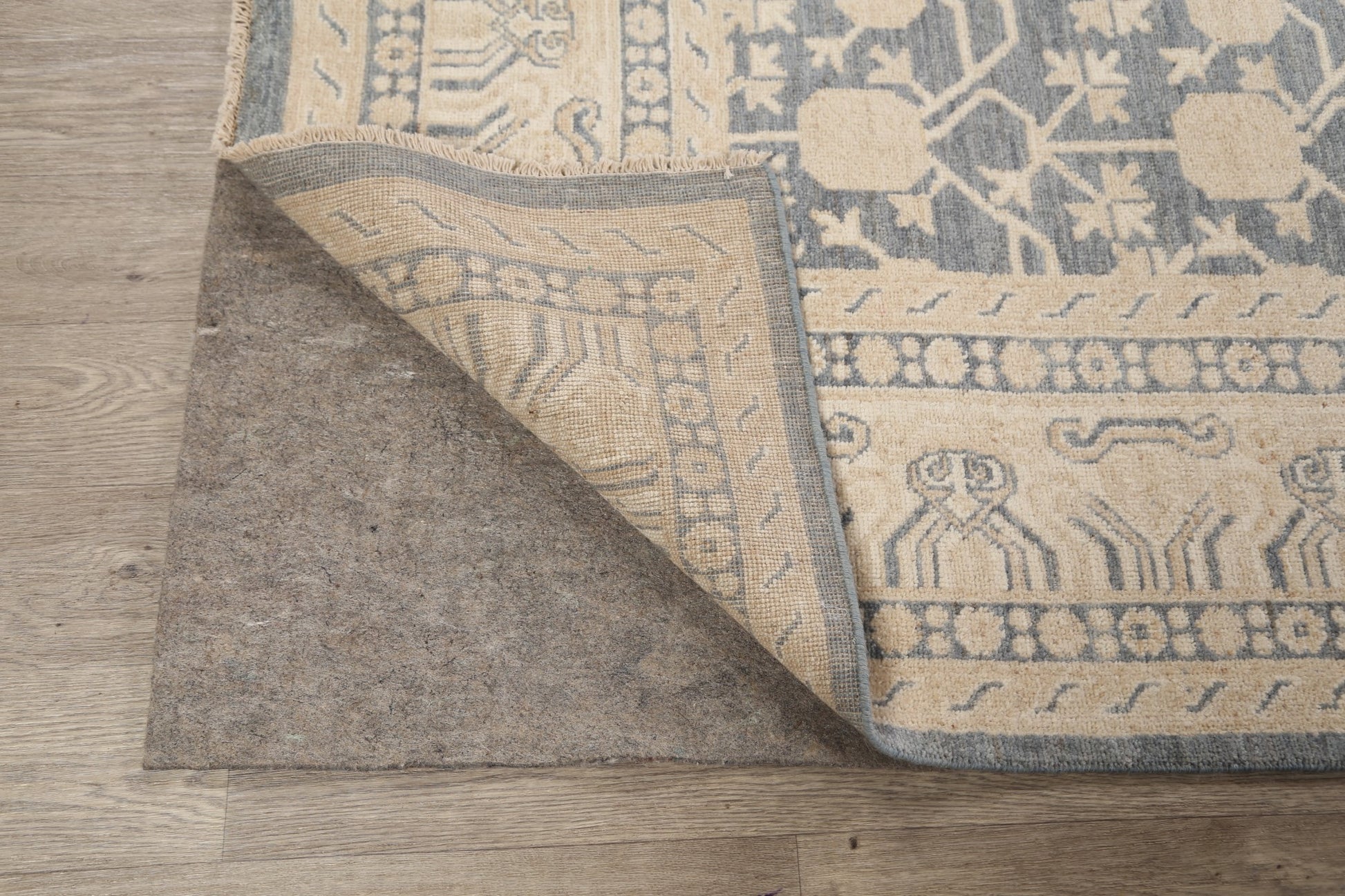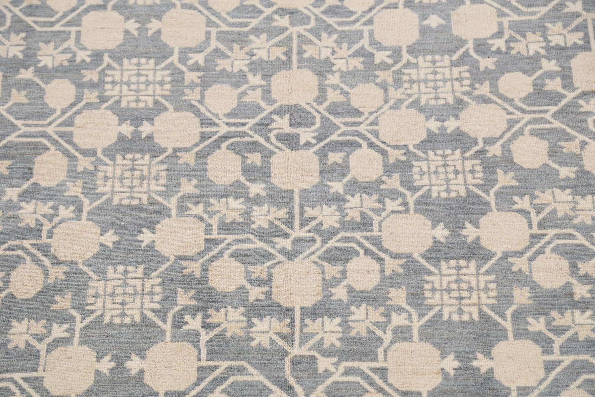 A Beautiful Genuine Pakistan Khotan rug is Hand Knotted by skillful weavers in Pakistan with 100% Wool Material. This rug is in New, First Quality condition. dimensions are 9' 7'' X 8' 1'' in foot and 292 X 246 in centimeter. the primary color is Greys & Charcoal.