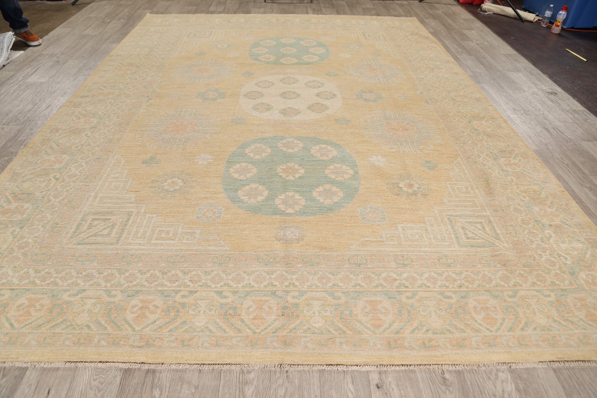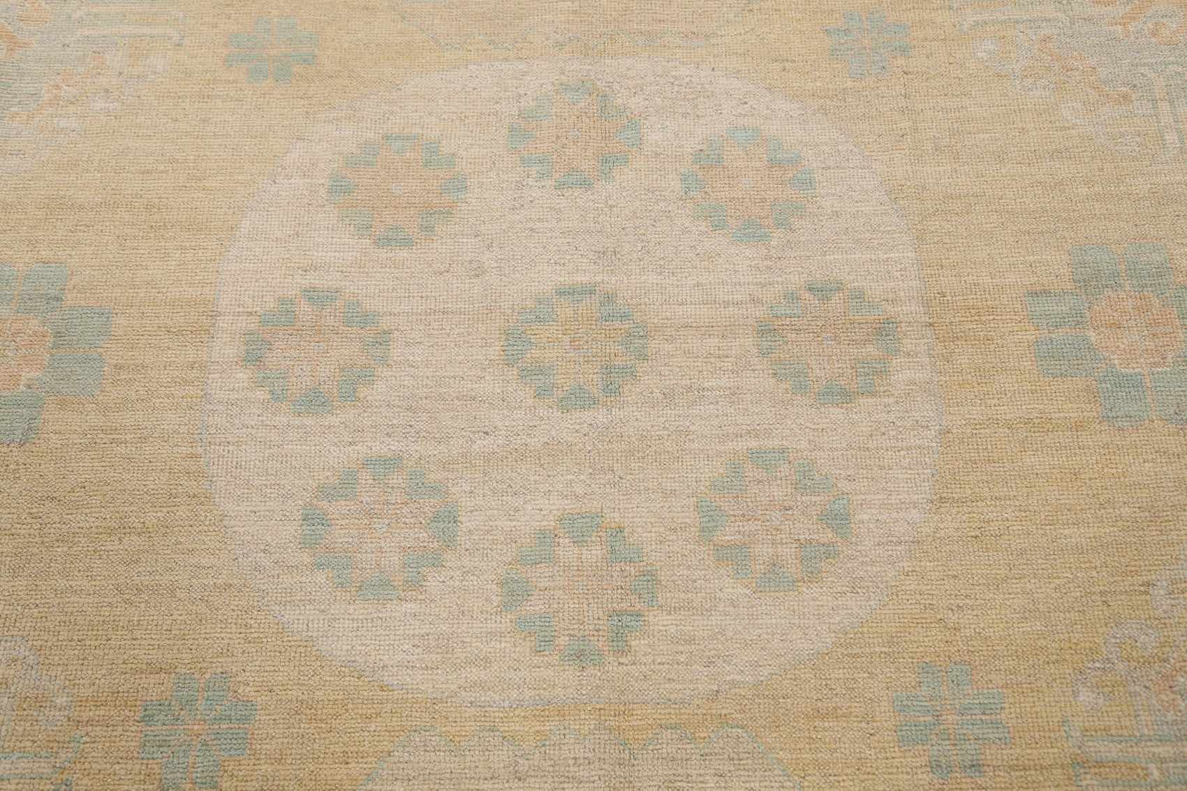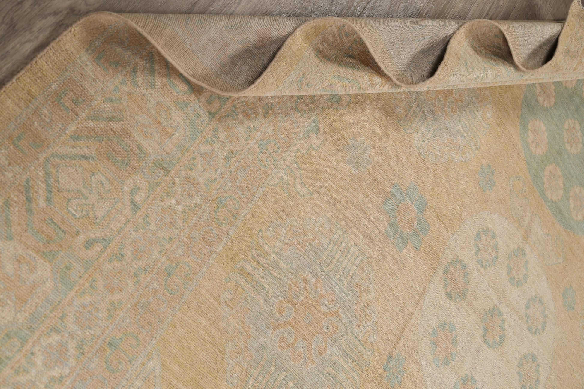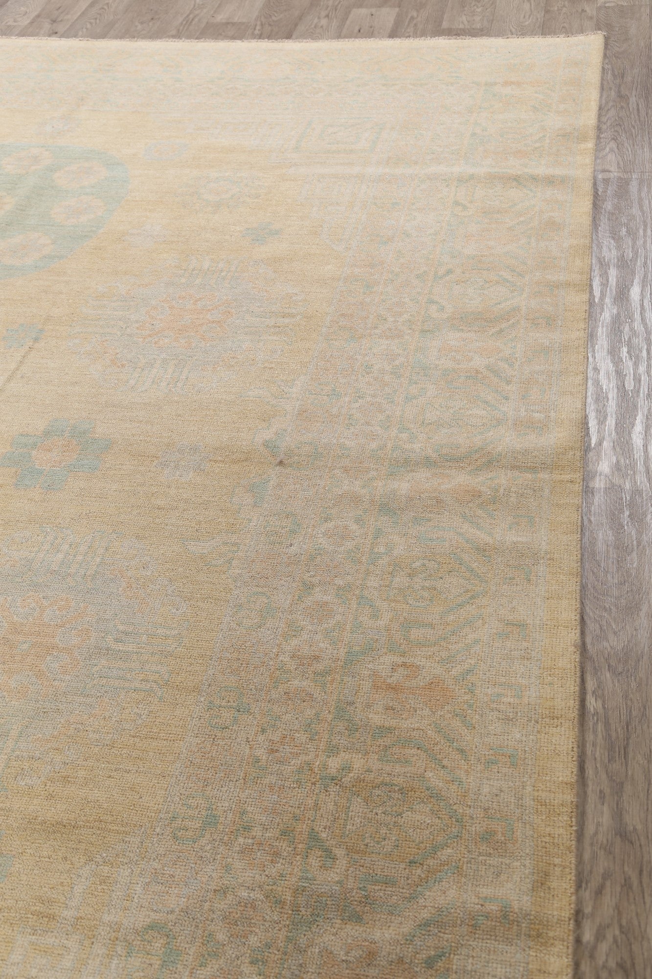 A Beautiful Genuine Pakistan Khotan rug is Hand Knotted by skillful weavers in Pakistan with 100% Wool Material. This rug is in New, First Quality condition. dimensions are 11' 9'' X 8' 9'' in foot and 358 X 267 in centimeter. the primary color is Beige & Ivories.