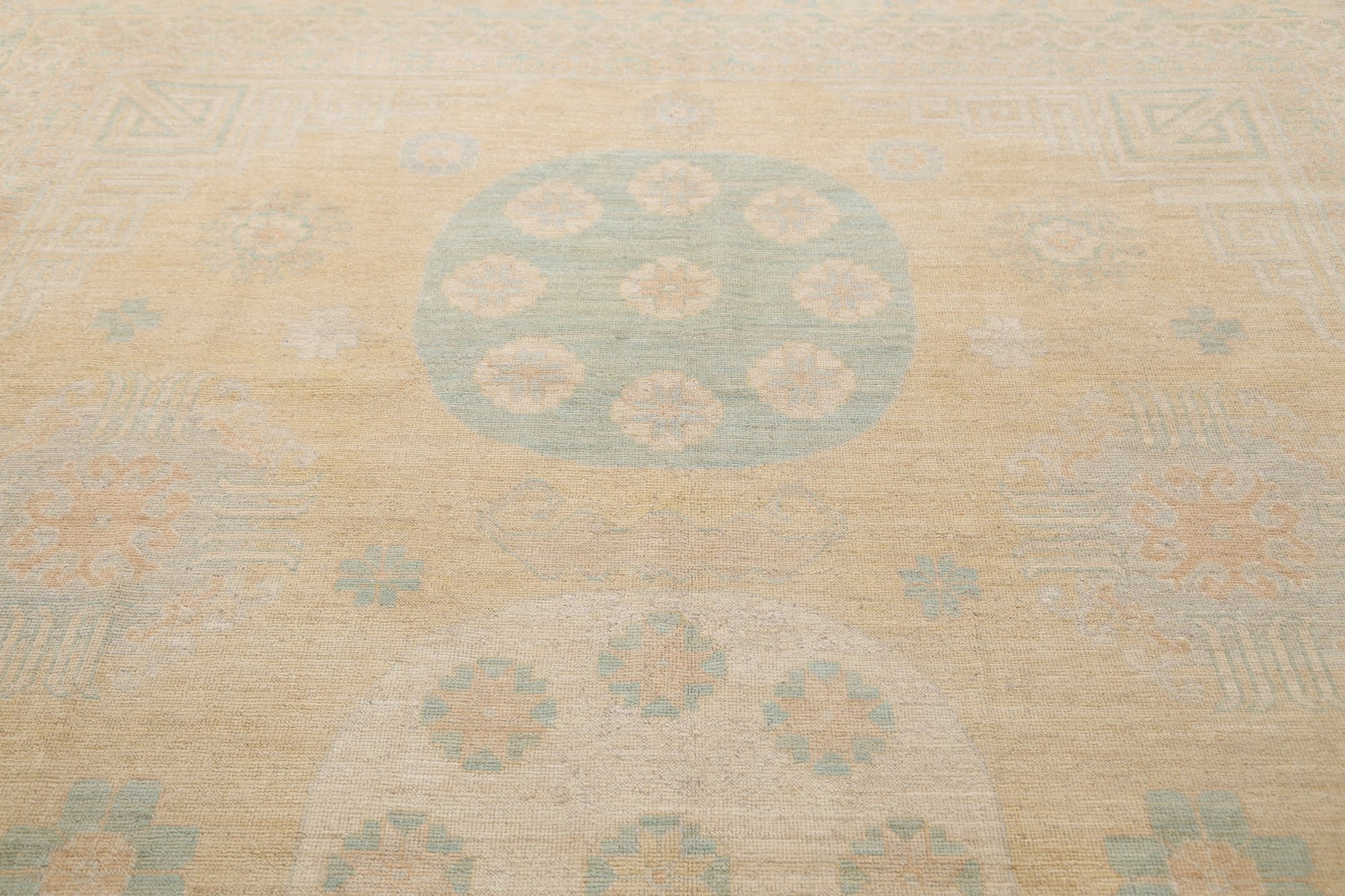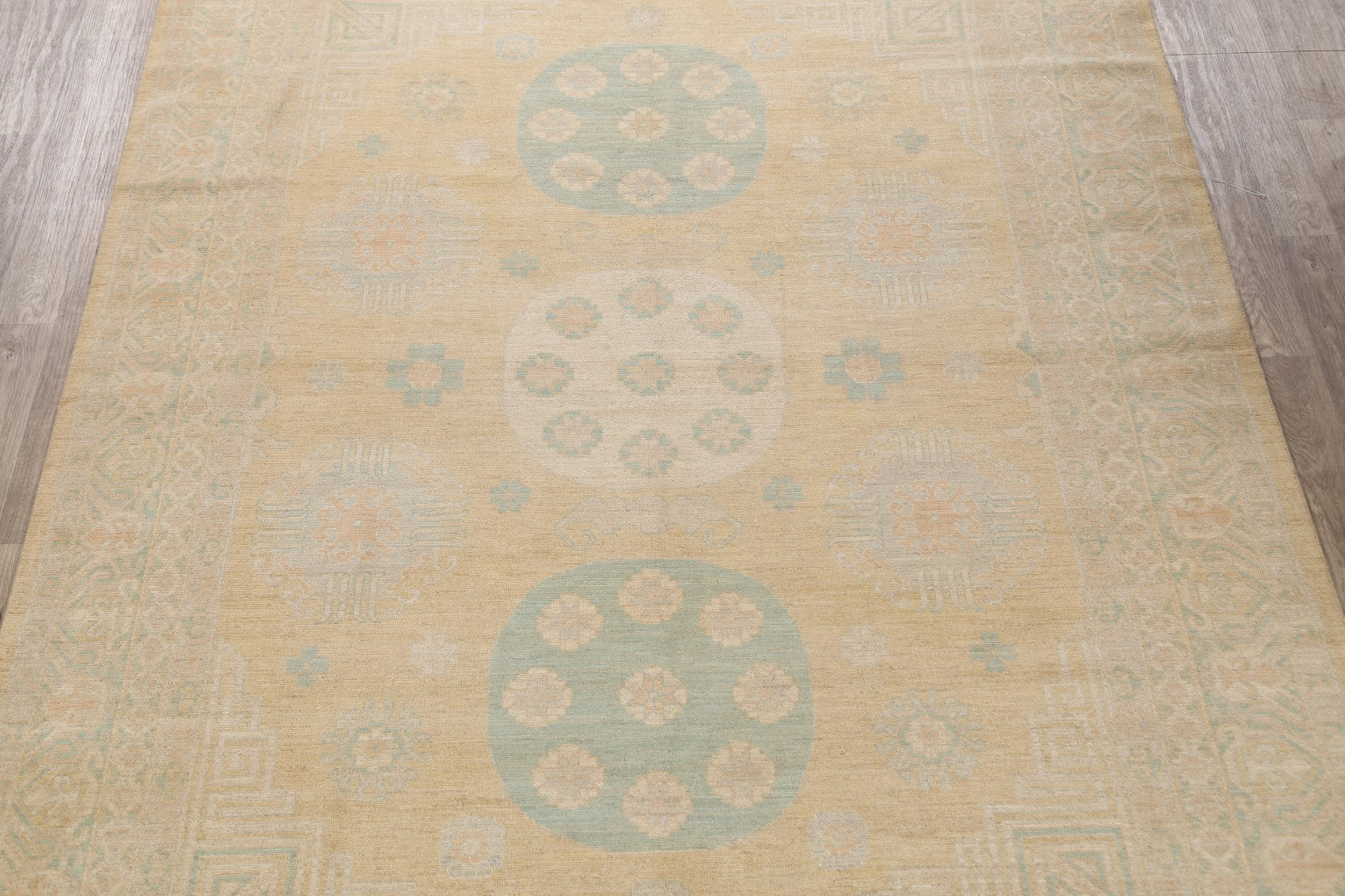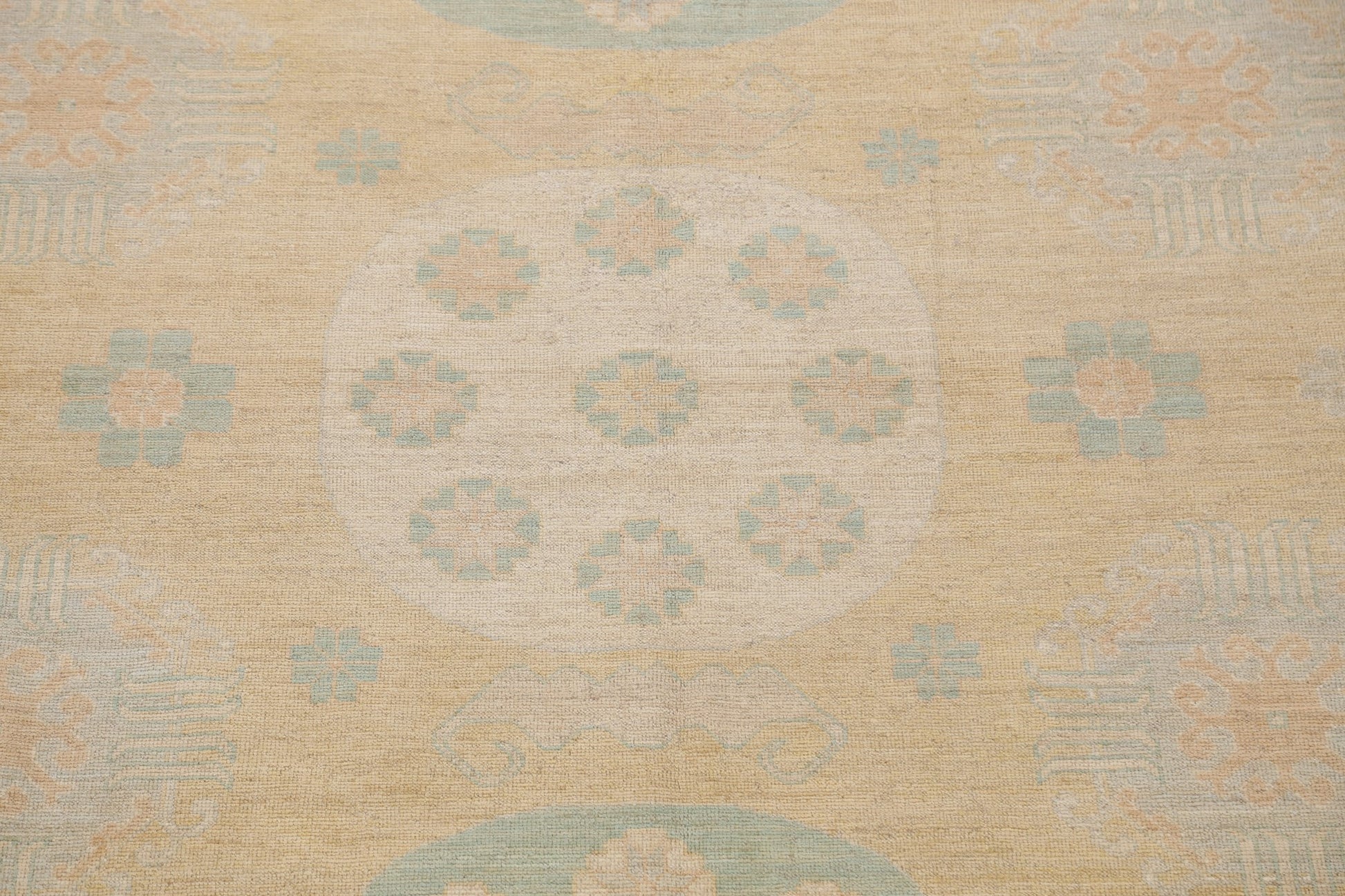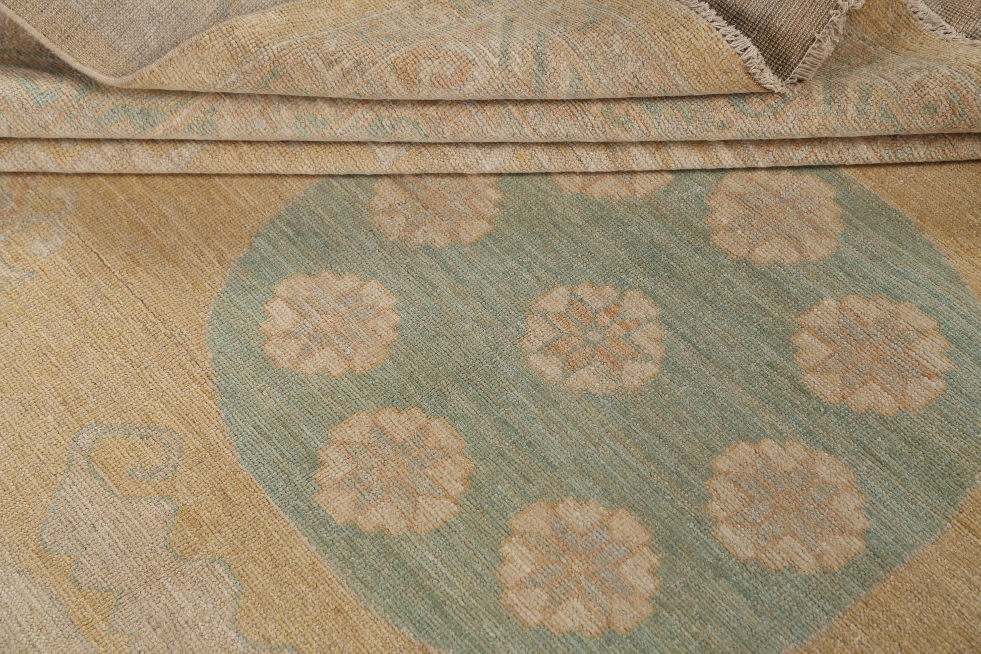 A Beautiful Genuine Pakistan Khotan rug is Hand Knotted by skillful weavers in Pakistan with 100% Wool Material. This rug is in New, First Quality condition. dimensions are 11' 9'' X 8' 9'' in foot and 358 X 267 in centimeter. the primary color is Beige & Ivories.