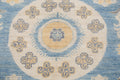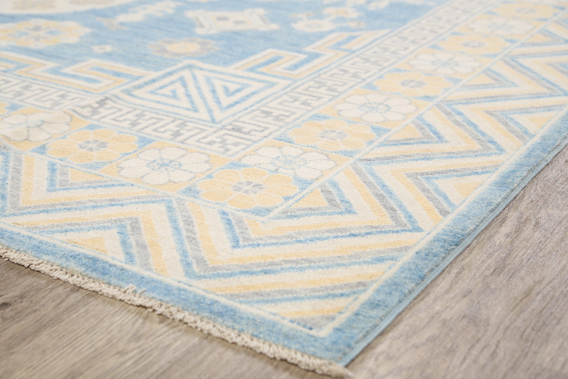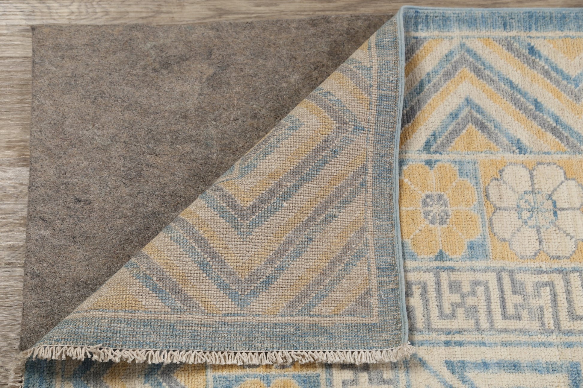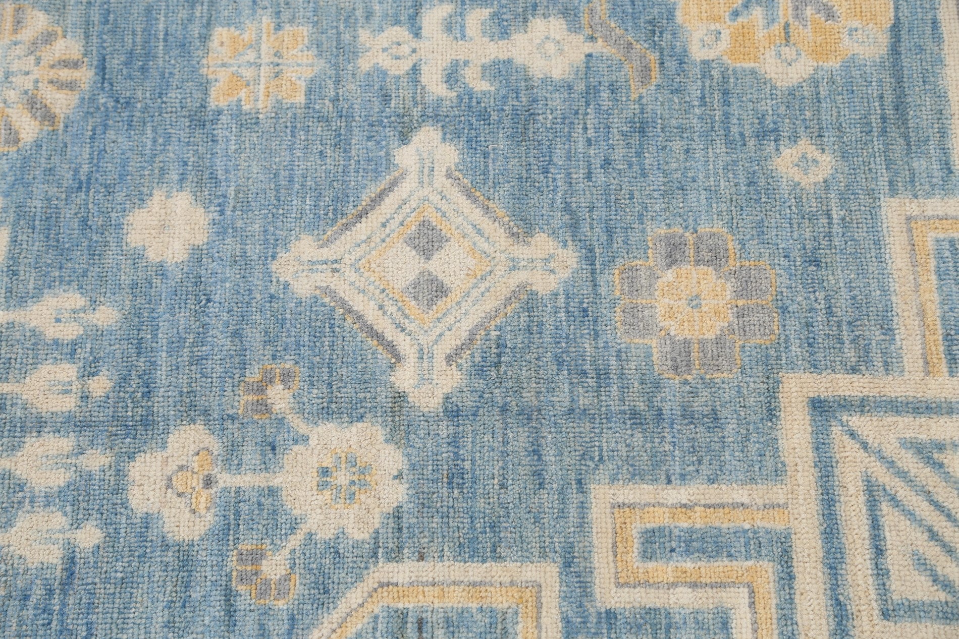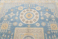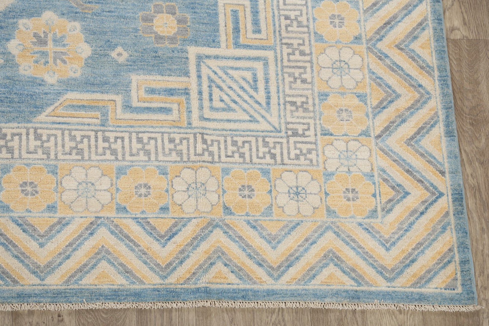 A Beautiful Genuine Pakistan Khotan rug is Hand Knotted by skillful weavers in Pakistan with 100% Wool Material. This rug is in New, First Quality condition. dimensions are 11' 11'' X 9' 2'' in foot and 363 X 279 in centimeter. the primary color is Navy Blue & Blues.
