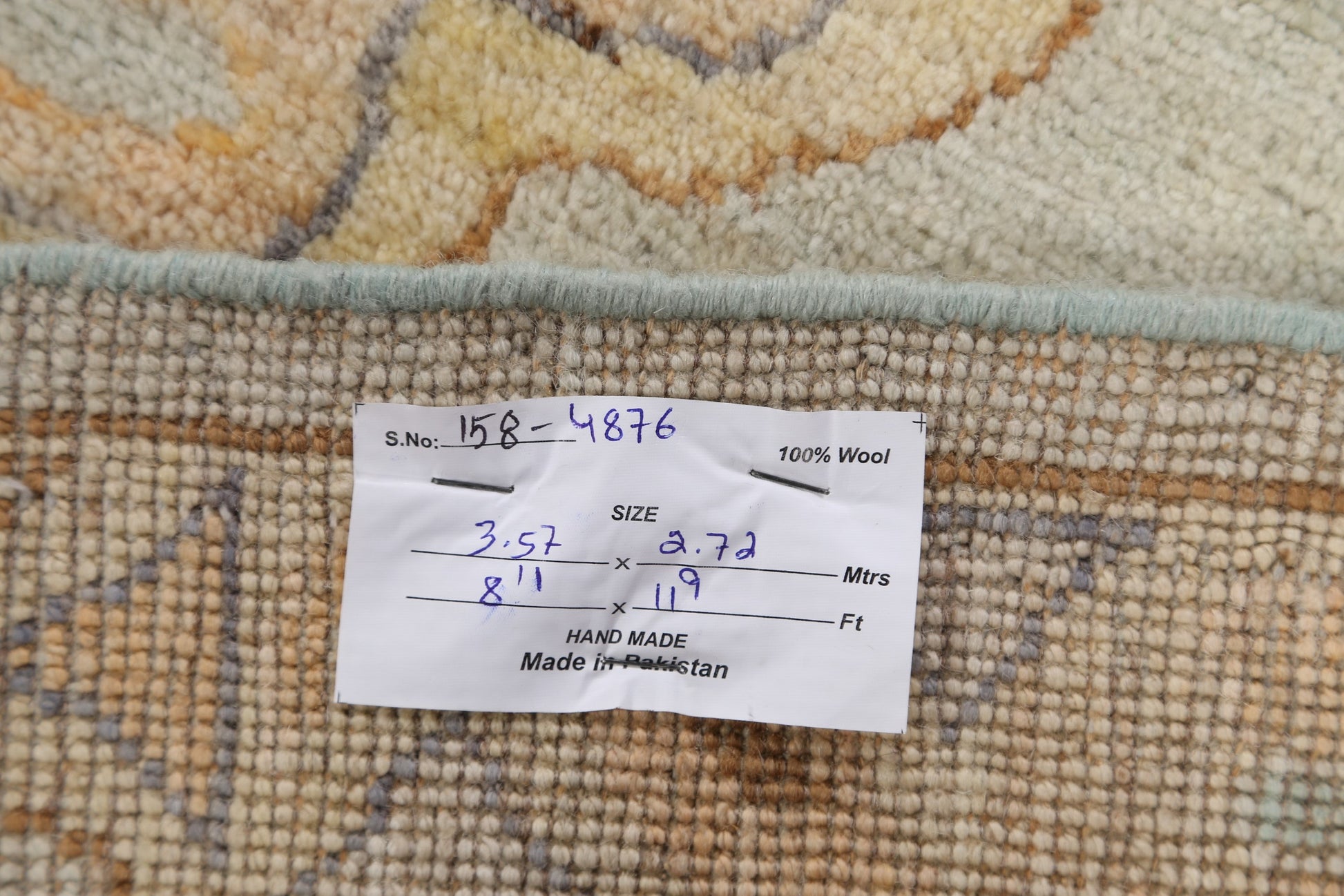 A Beautiful Genuine Pakistan Khotan rug is Hand Knotted by skillful weavers in Pakistan with 100% Wool Material. This rug is in New, First Quality condition. dimensions are 11' 9'' X 8' 11'' in foot and 358 X 272 in centimeter. the primary color is Greys & Charcoal.