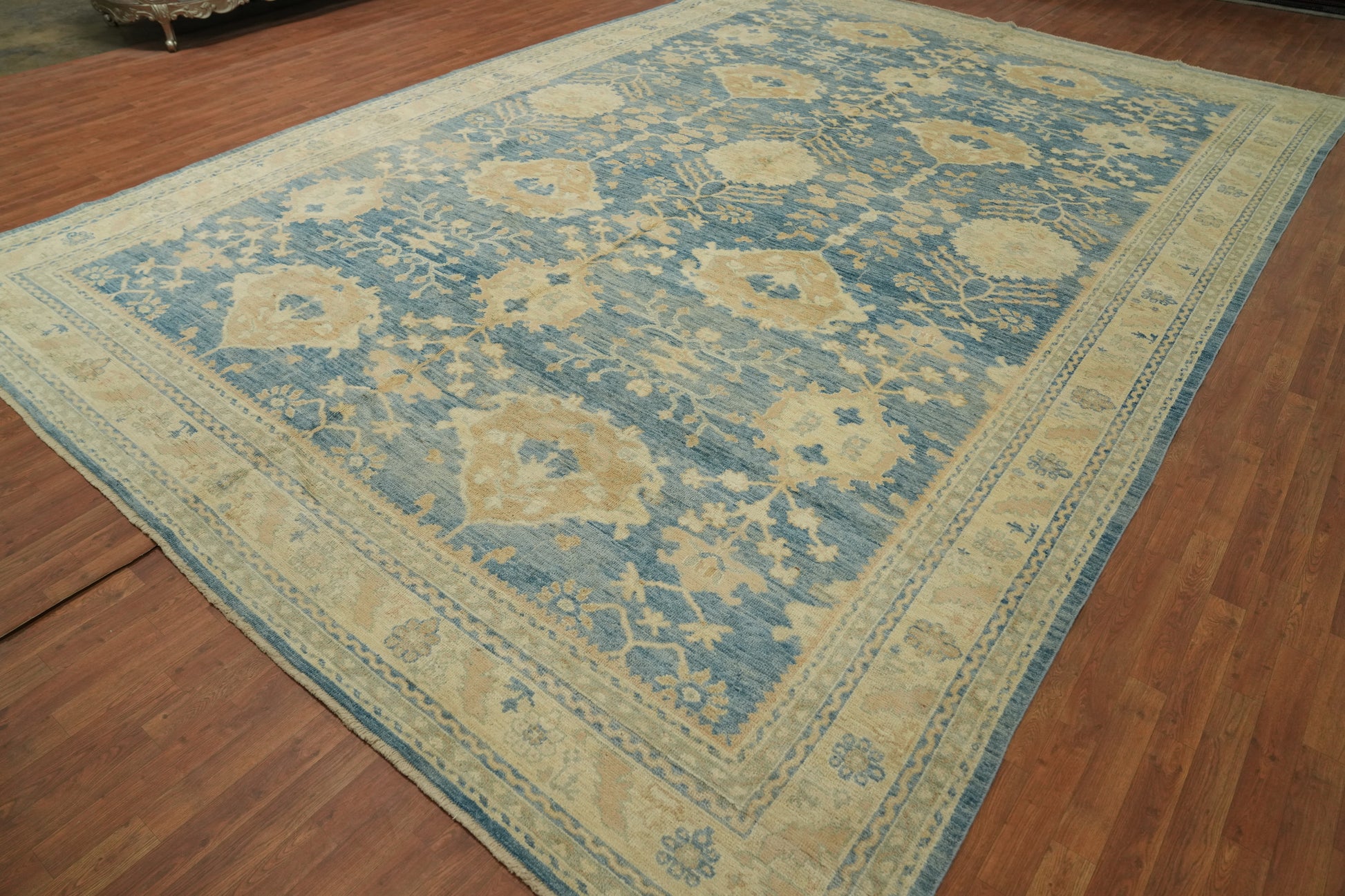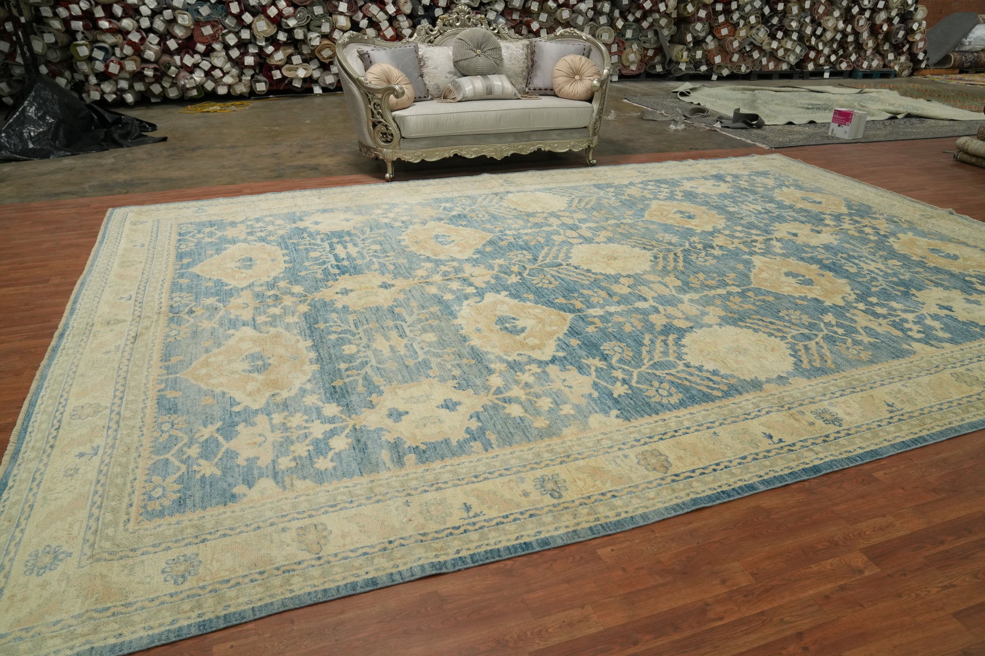 A Beautiful Genuine Pakistan Khotan rug is Hand Knotted by skillful weavers in Pakistan with 100% Wool Material. This rug is in New, First Quality condition. dimensions are 17' 9'' X 12' 1'' in foot and 541 X 368 in centimeter. the primary color is Navy Blue & Blues.