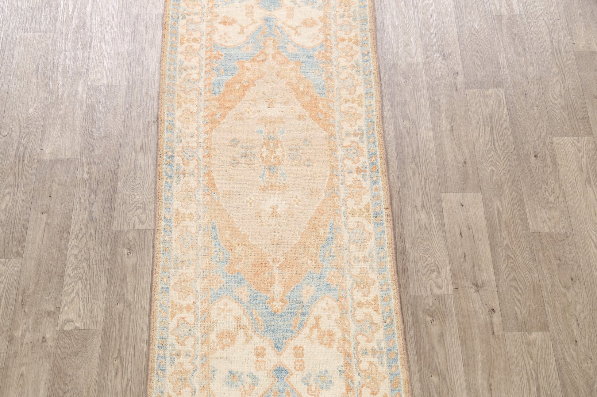 100% Vegetable Dye Oushak Turkish Oriental Runner Rug 3x10