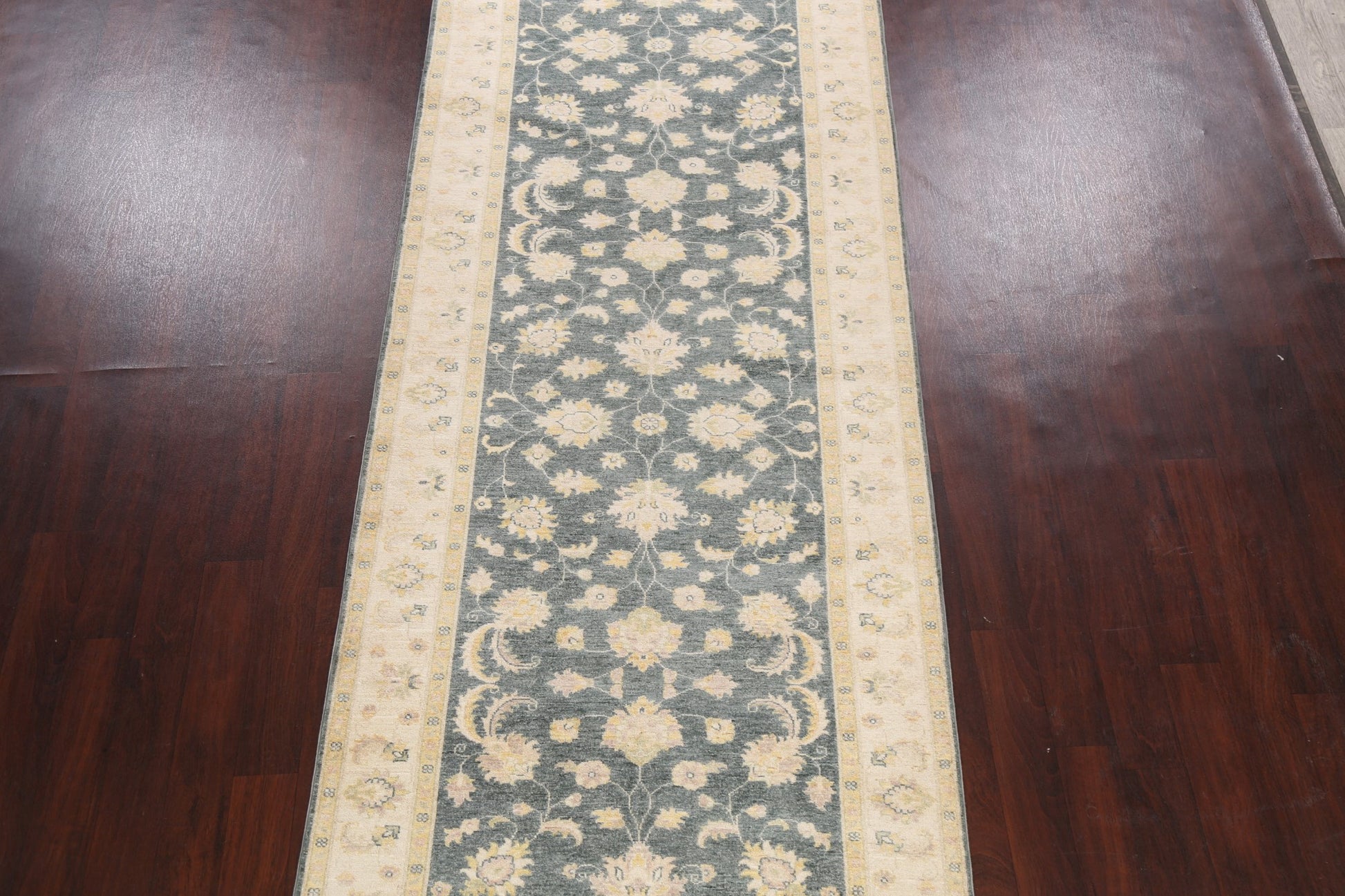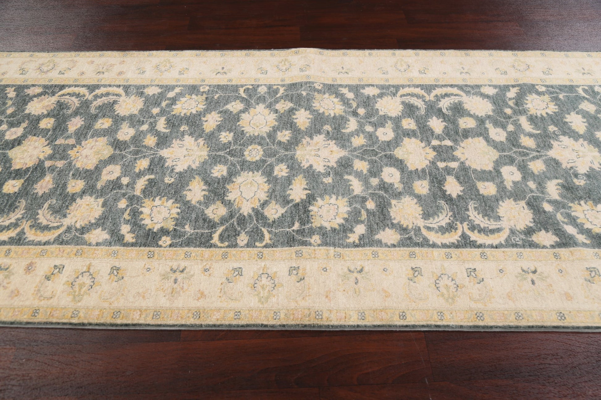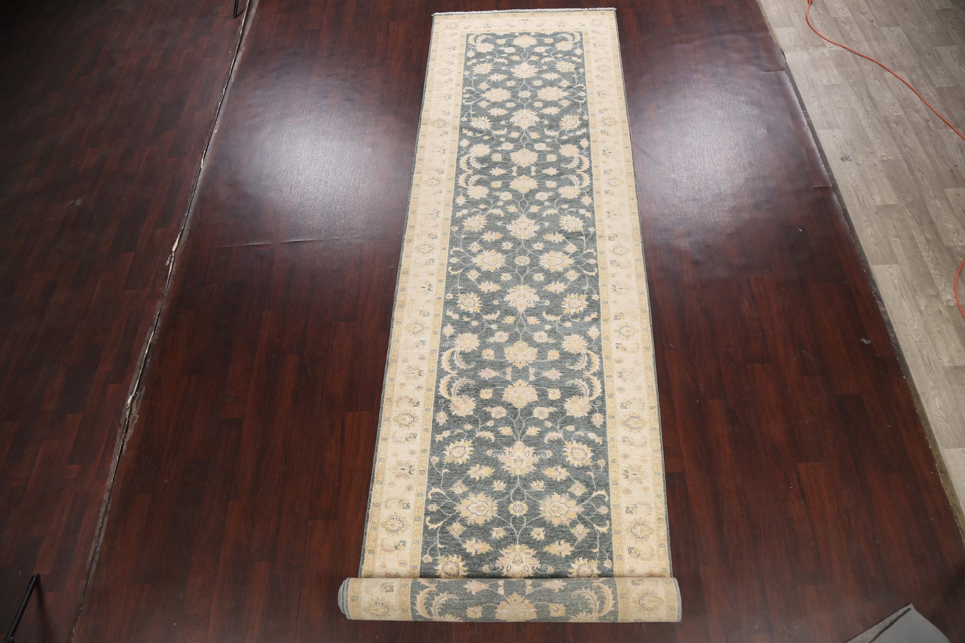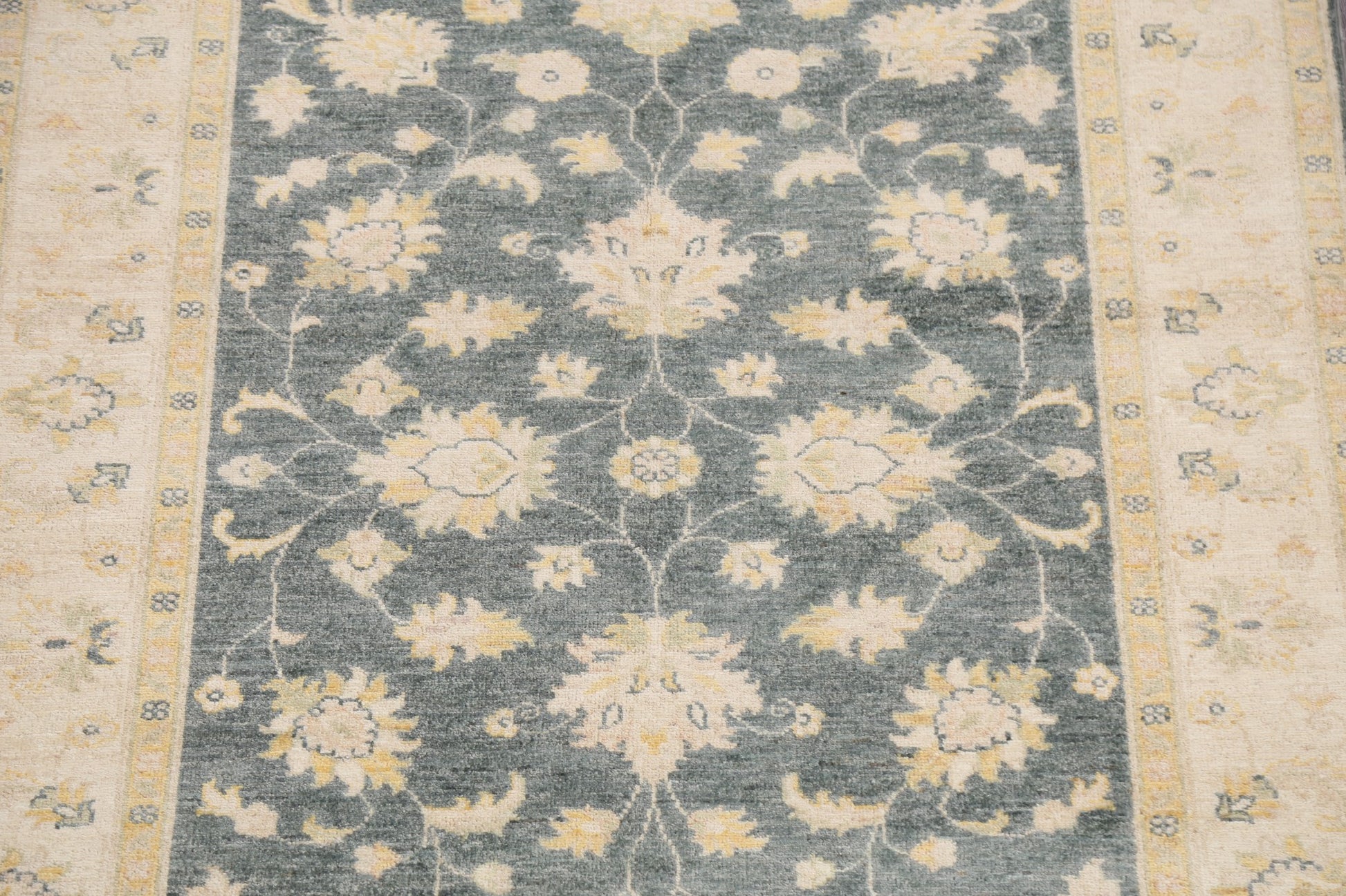 A Beautiful Genuine Pakistan Chobi-Peshawar rug is Hand Knotted by skillful weavers in Pakistan with 100% Wool Material. This rug is in New, First Quality condition. dimensions are 18' 5'' X 4' 2'' in foot and 561 X 127 in centimeter. the primary color is Greys & Charcoal.