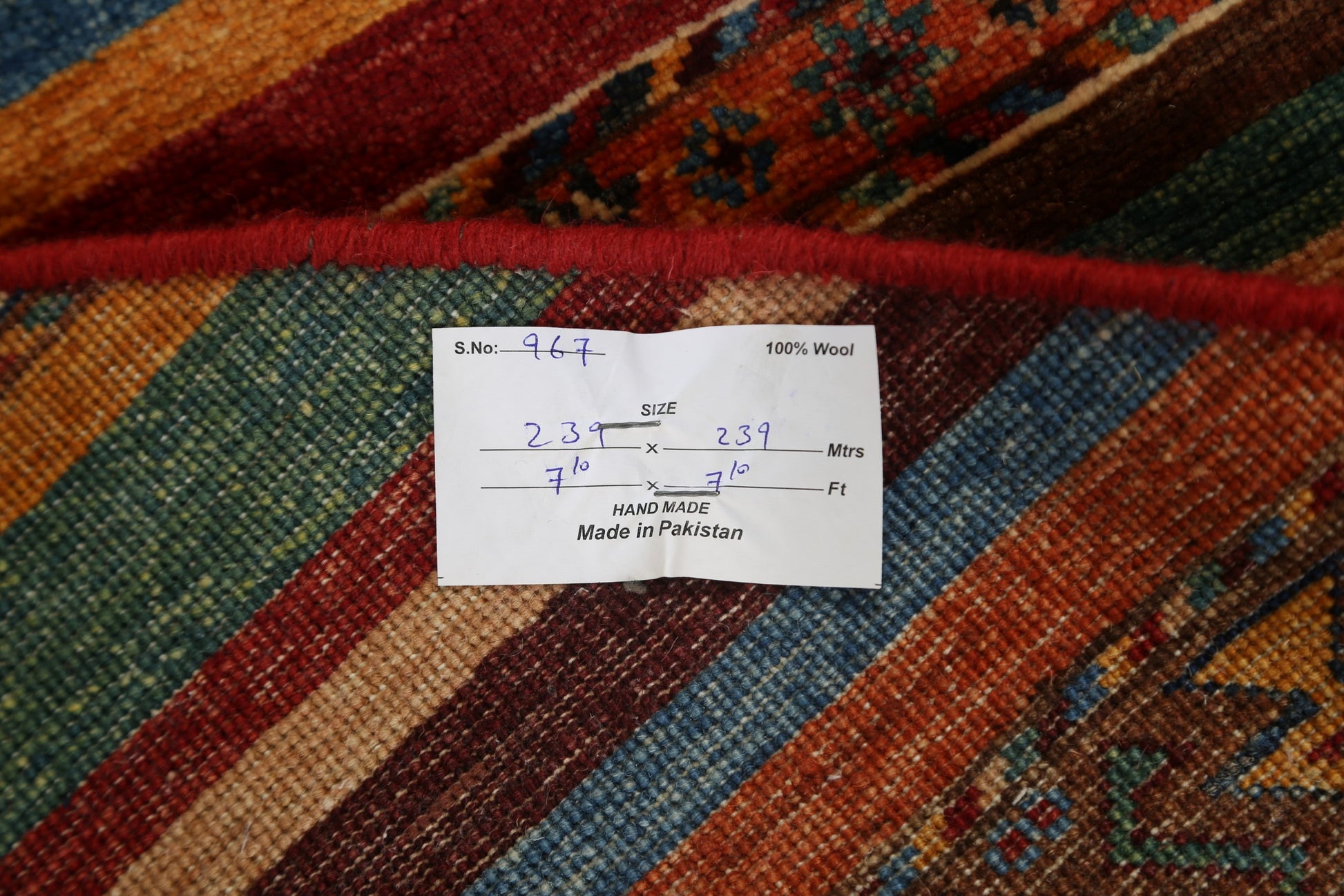 A Beautiful Genuine Pakistan Moharramat rug is Hand Knotted by skillful weavers in Pakistan with 100% Wool Material. This rug is in New, First Quality condition. dimensions are 7' 10'' X 7' 10'' in foot and 239 X 239 in centimeter. the primary color is Multi-Colored.