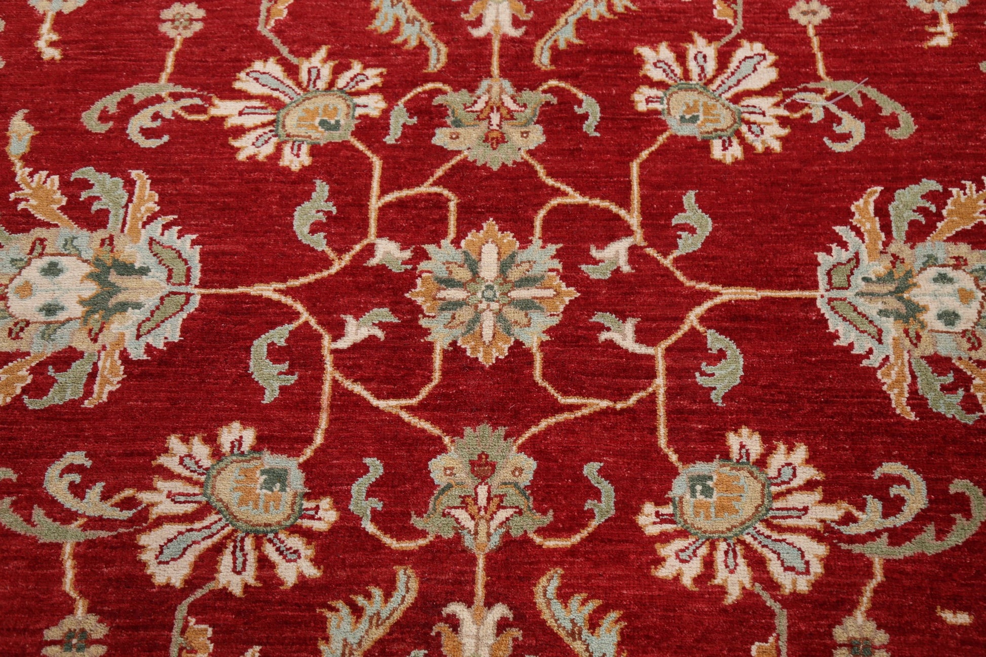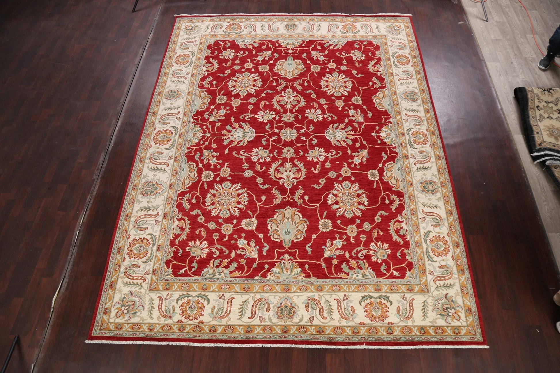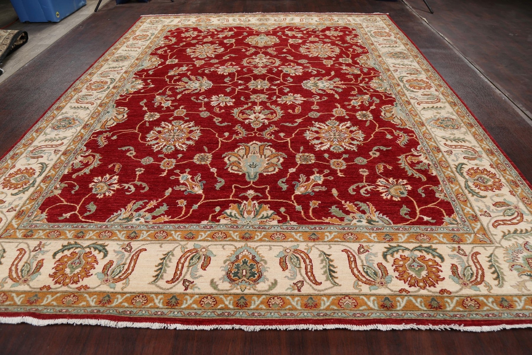A Beautiful Genuine Pakistan Sultanabad (Ziegler) rug is Hand Knotted by skillful weavers in Pakistan with 100% Wool Material. This rug is in New, First Quality condition. dimensions are 11' 10'' X 9' 1'' in foot and 361 X 277 in centimeter. the primary color is Red.