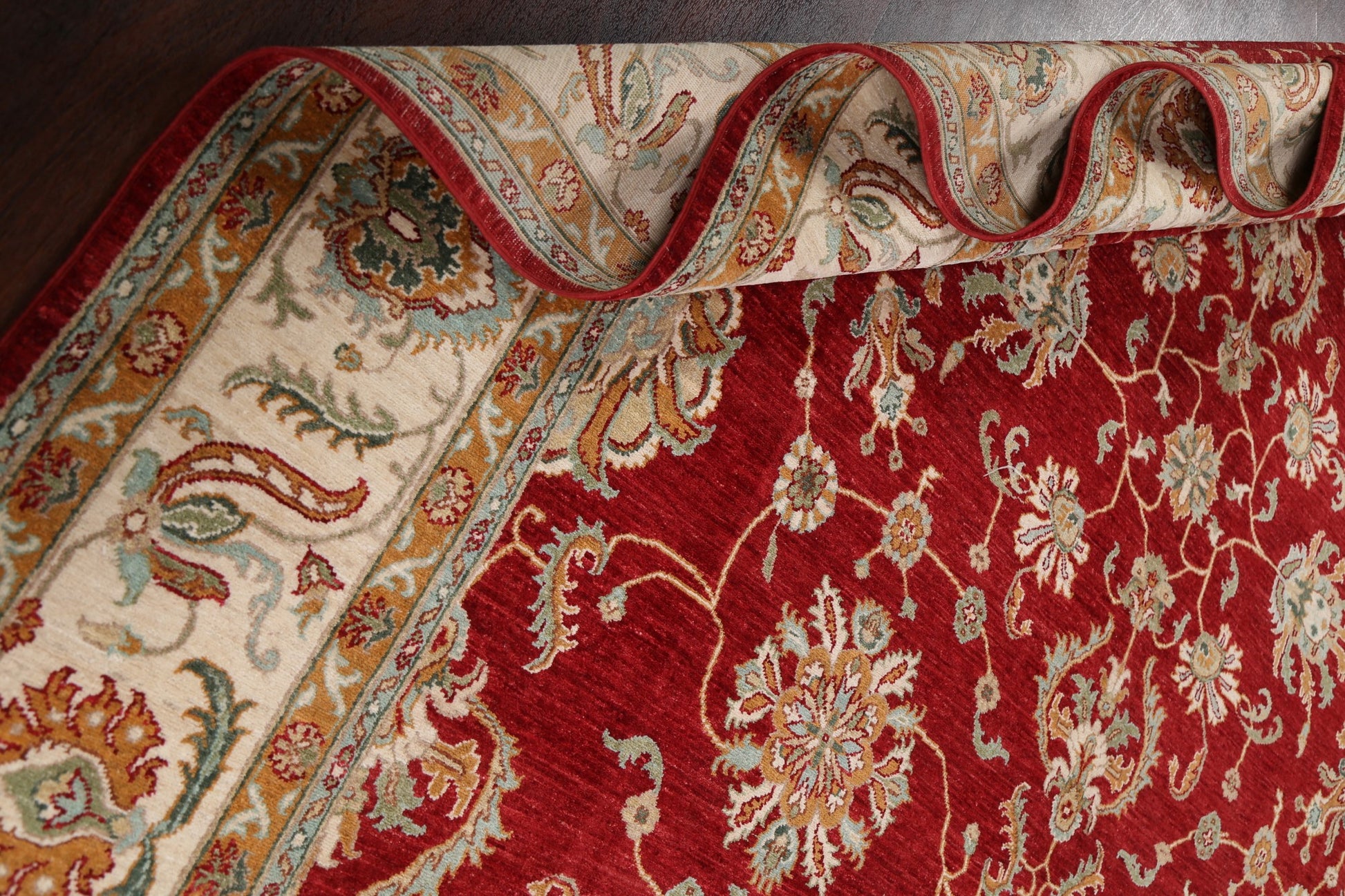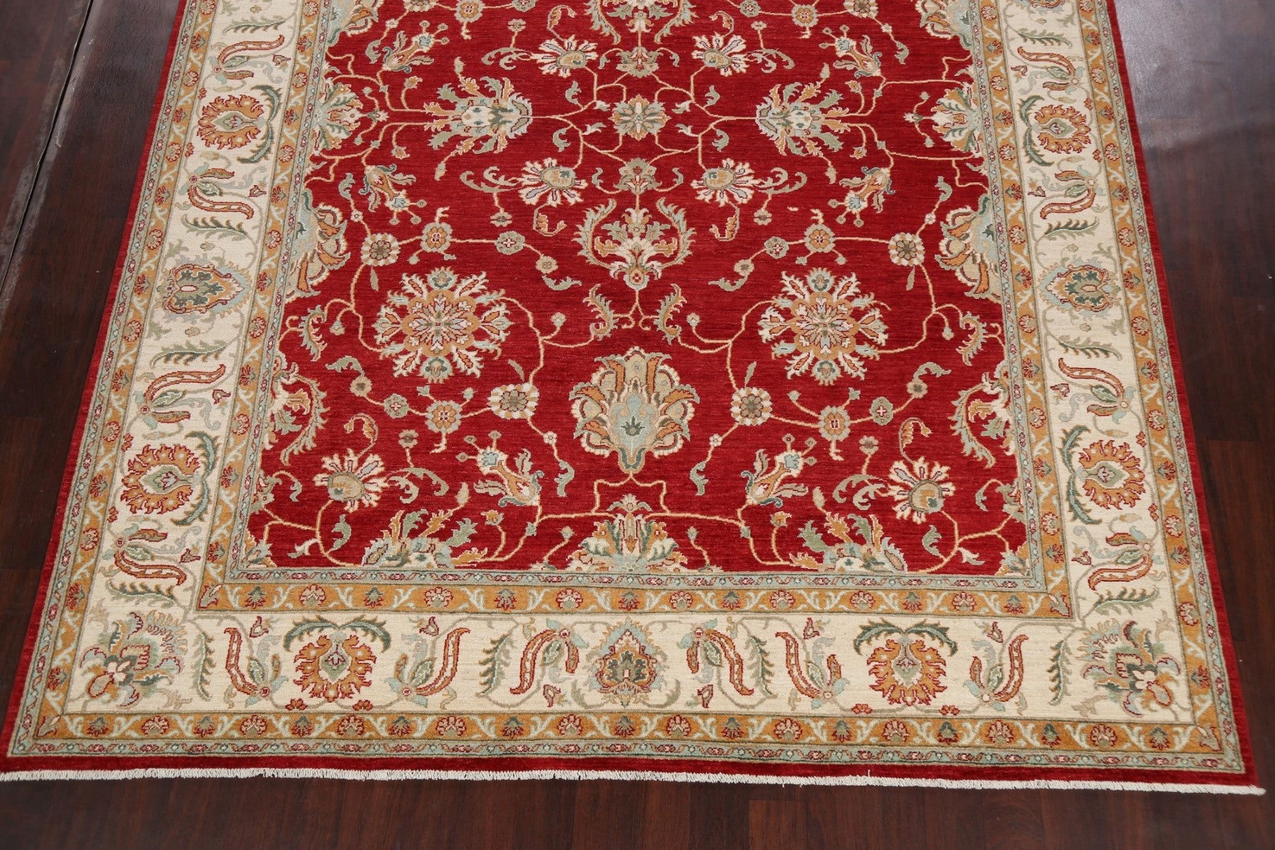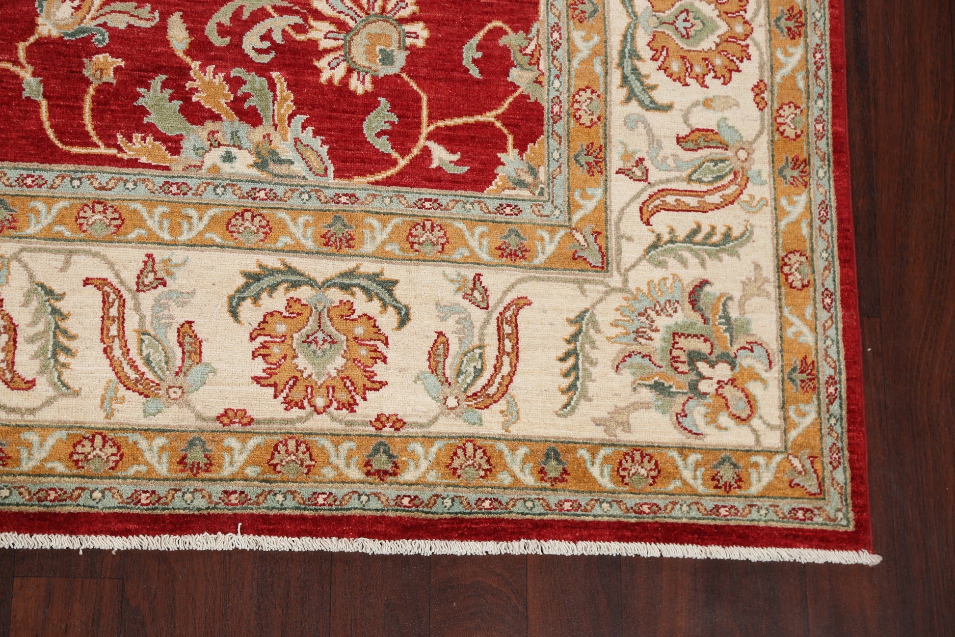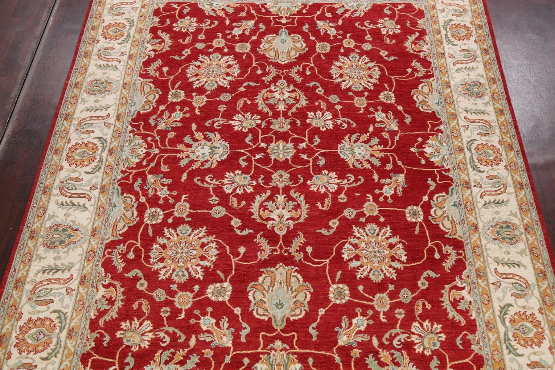 A Beautiful Genuine Pakistan Sultanabad (Ziegler) rug is Hand Knotted by skillful weavers in Pakistan with 100% Wool Material. This rug is in New, First Quality condition. dimensions are 11' 10'' X 9' 1'' in foot and 361 X 277 in centimeter. the primary color is Red.