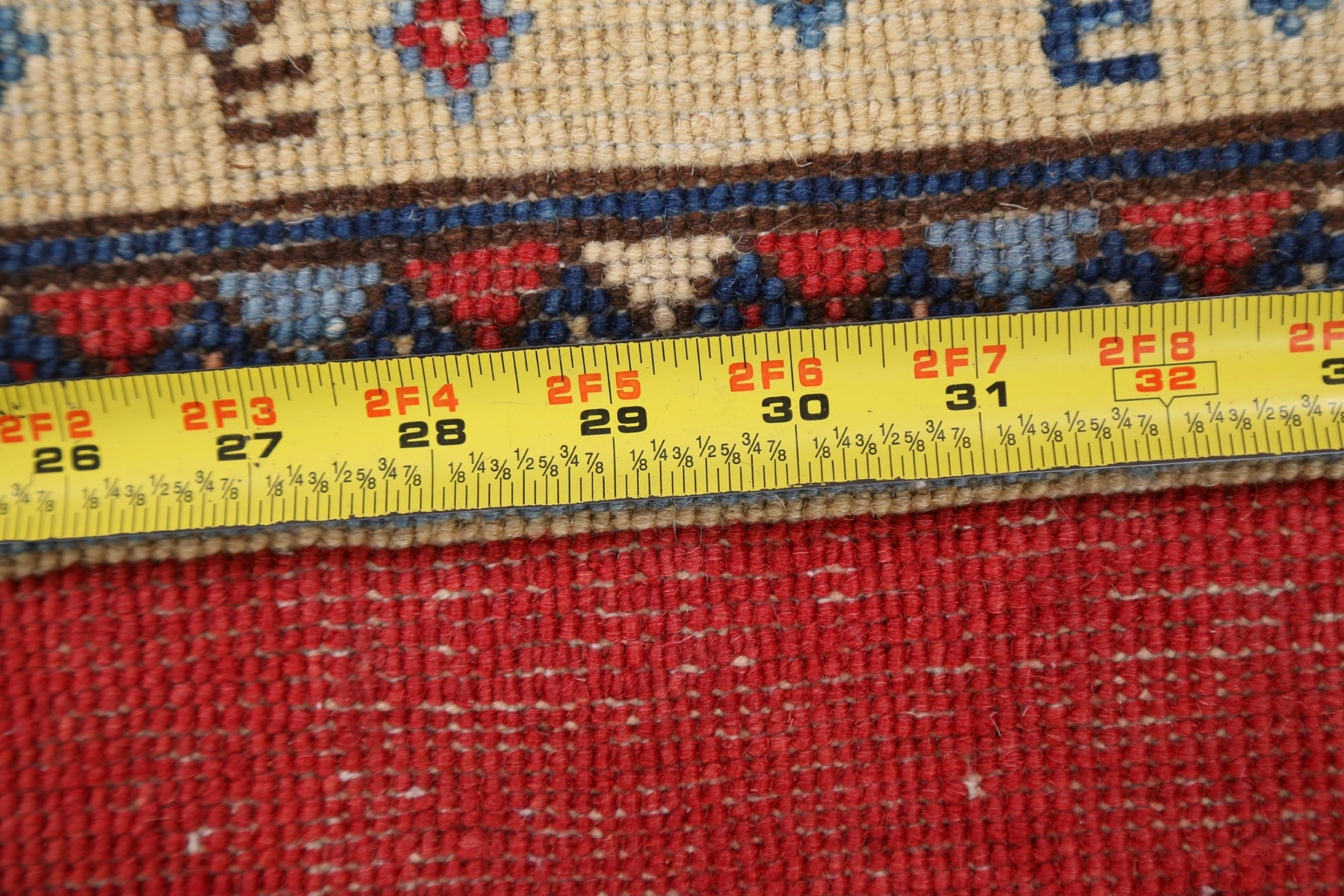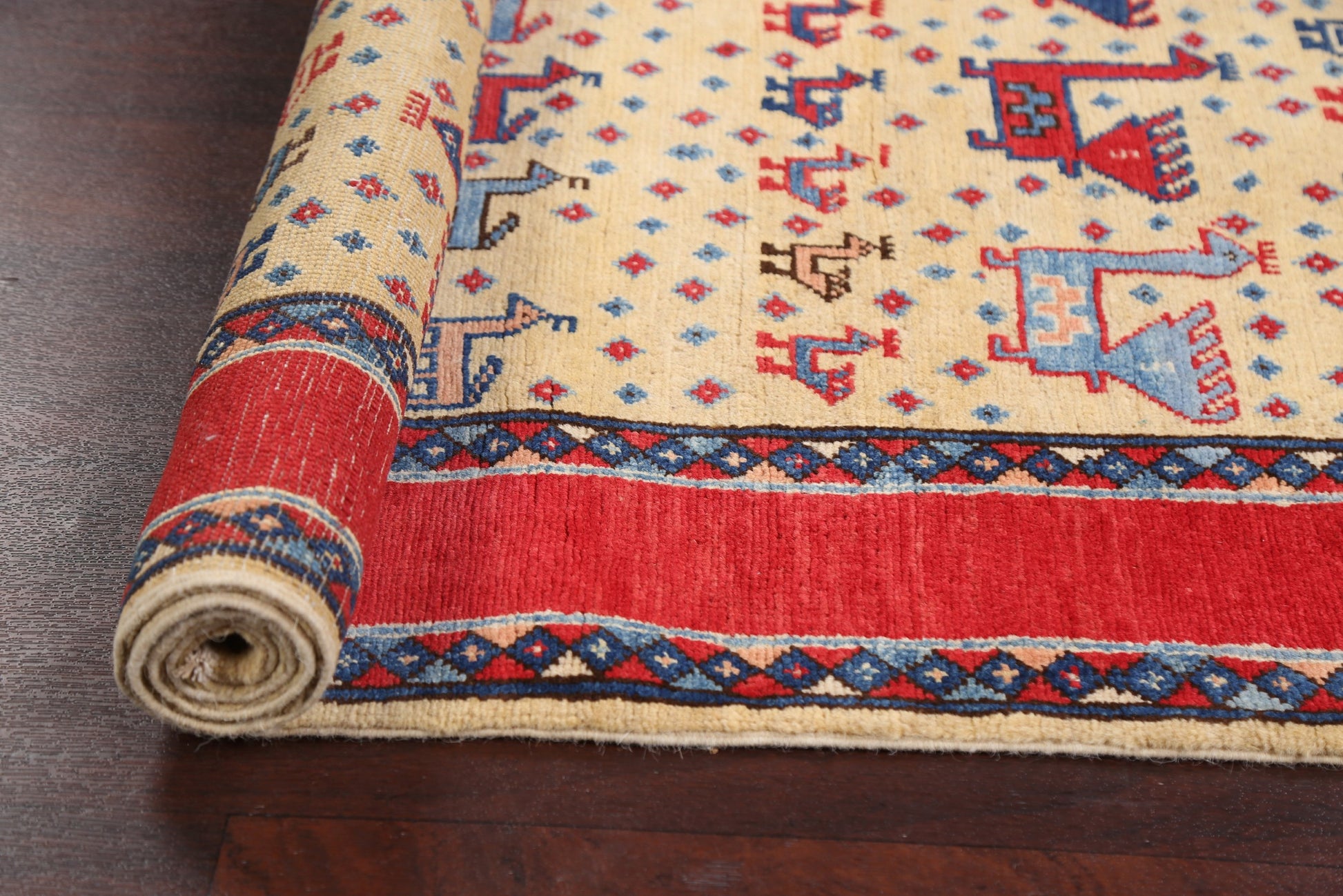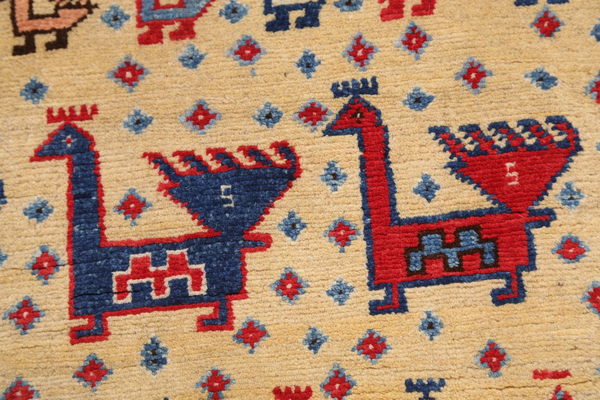 A Beautiful Genuine Pakistan Kazak rug is Hand Knotted by skillful weavers in Pakistan with 100% Wool Material. This rug is in New, First Quality condition. dimensions are 5' 9'' X 3' 9'' in foot and 175 X 114 in centimeter. the primary color is Beige & Ivories.