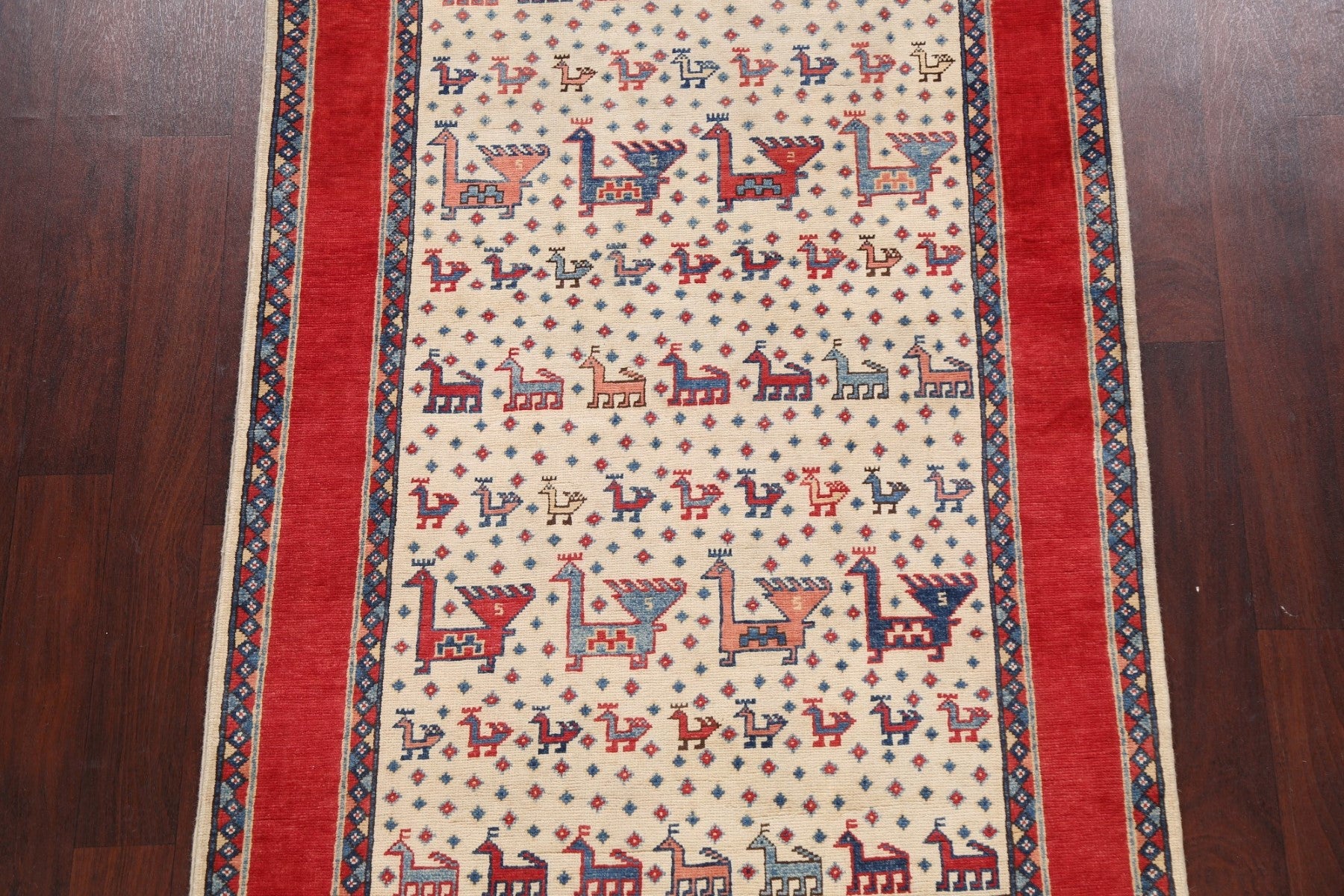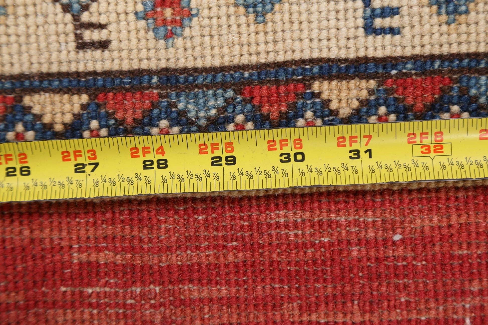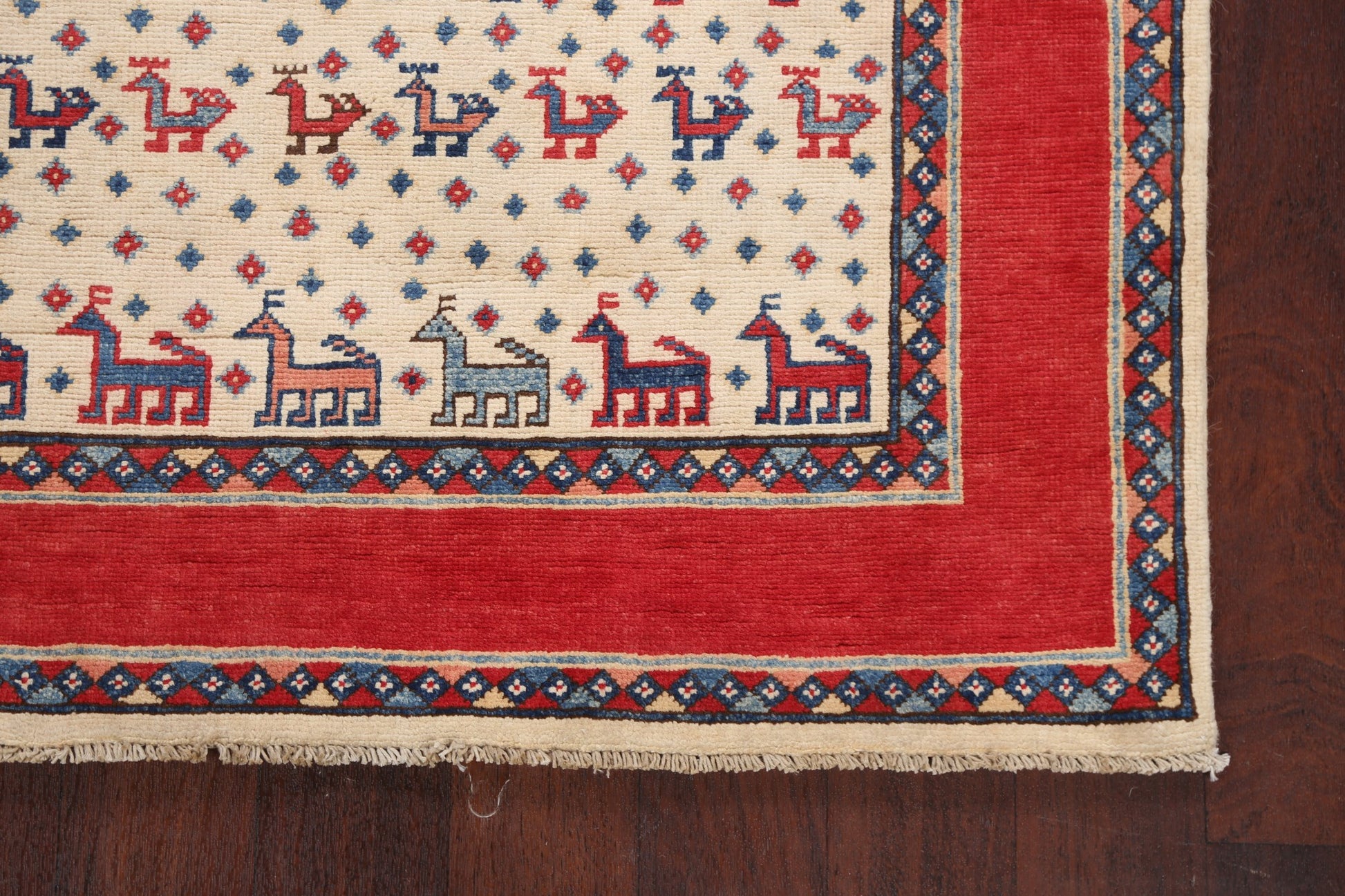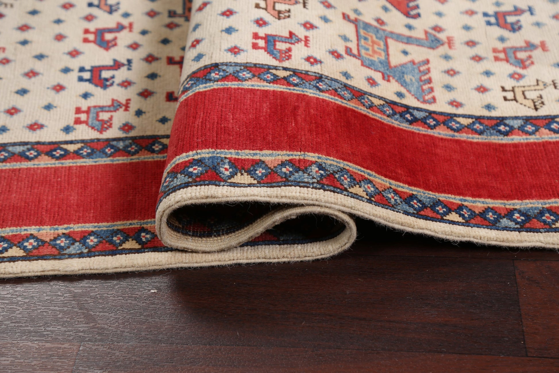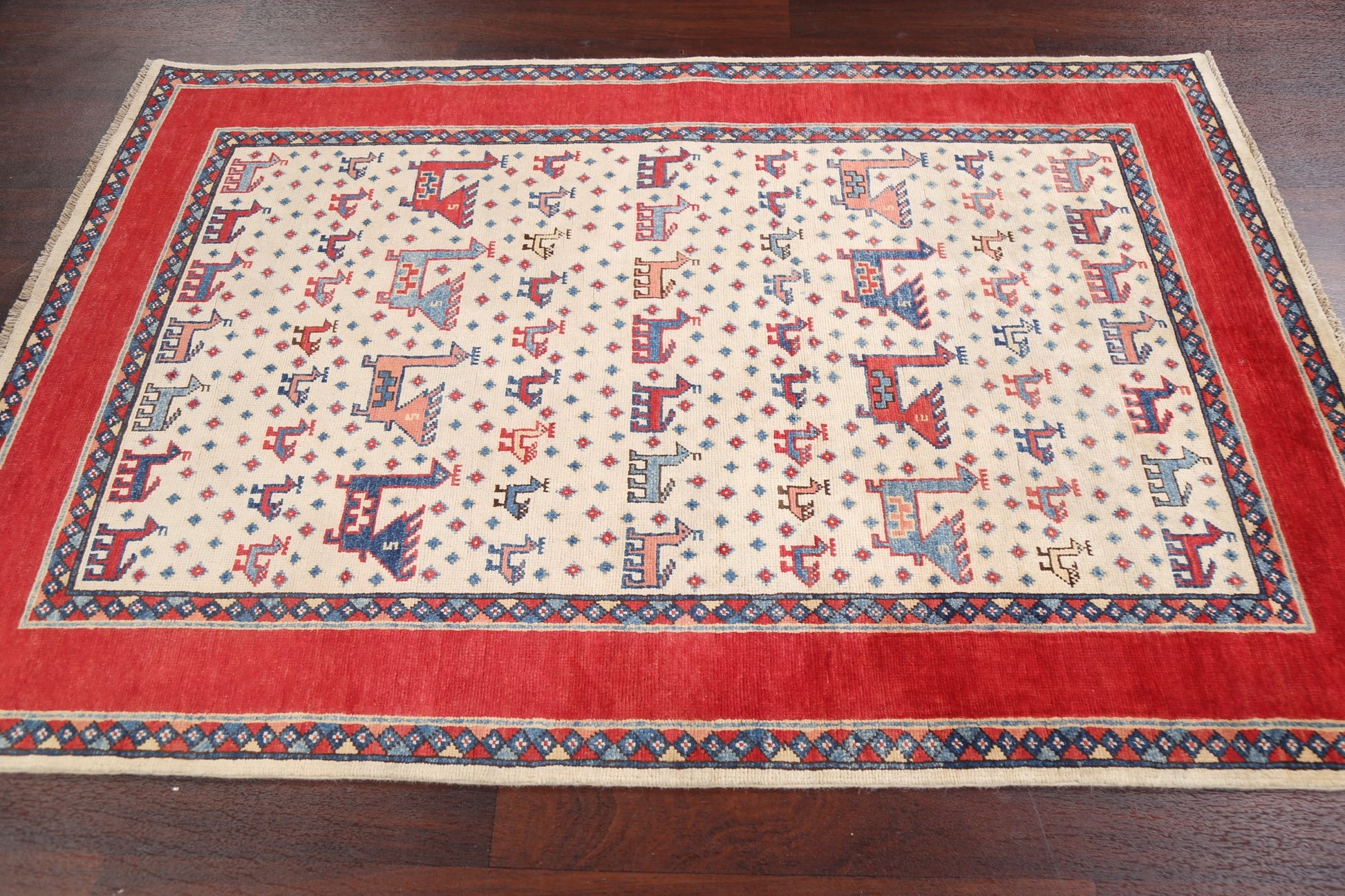 A Beautiful Genuine Pakistan Kazak rug is Hand Knotted by skillful weavers in Pakistan with 100% Wool Material. This rug is in New, First Quality condition. dimensions are 5' 11'' X 4' 0'' in foot and 180 X 122 in centimeter. the primary color is Beige & Ivories.