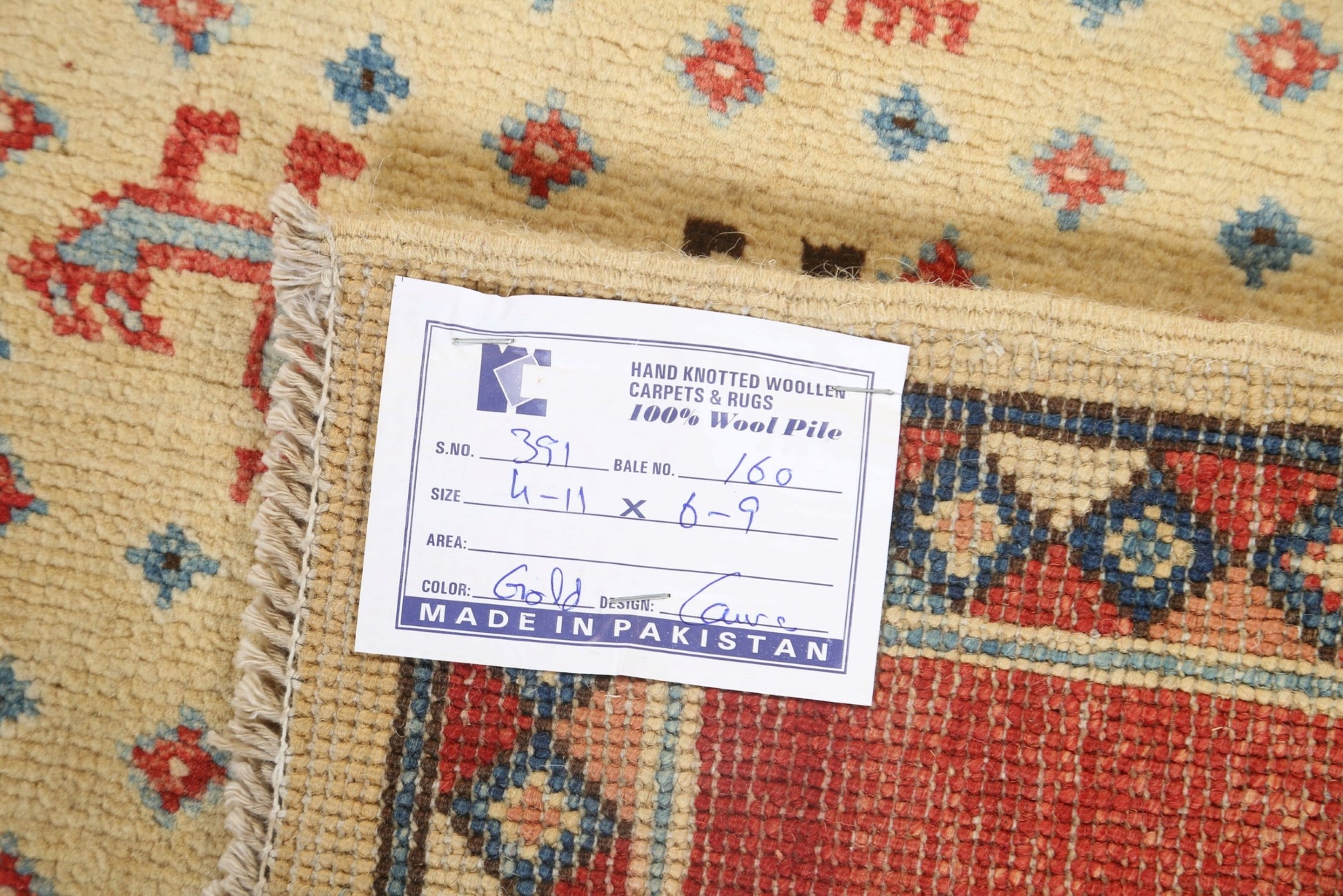 A Beautiful Genuine Pakistan Kazak rug is Hand Knotted by skillful weavers in Pakistan with 100% Wool Material. This rug is in New, First Quality condition. dimensions are 6' 9'' X 4' 11'' in foot and 206 X 150 in centimeter. the primary color is Yellow & Gold.