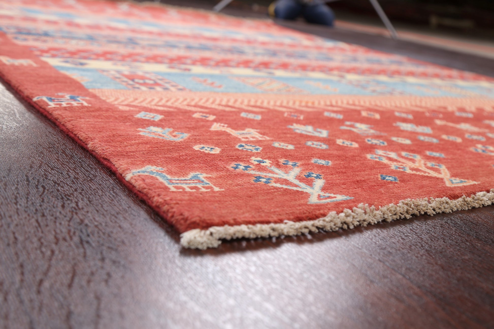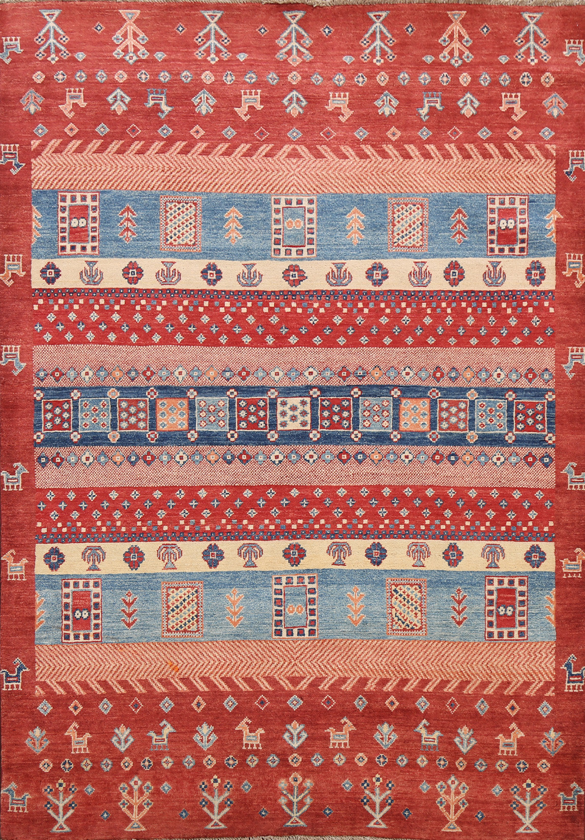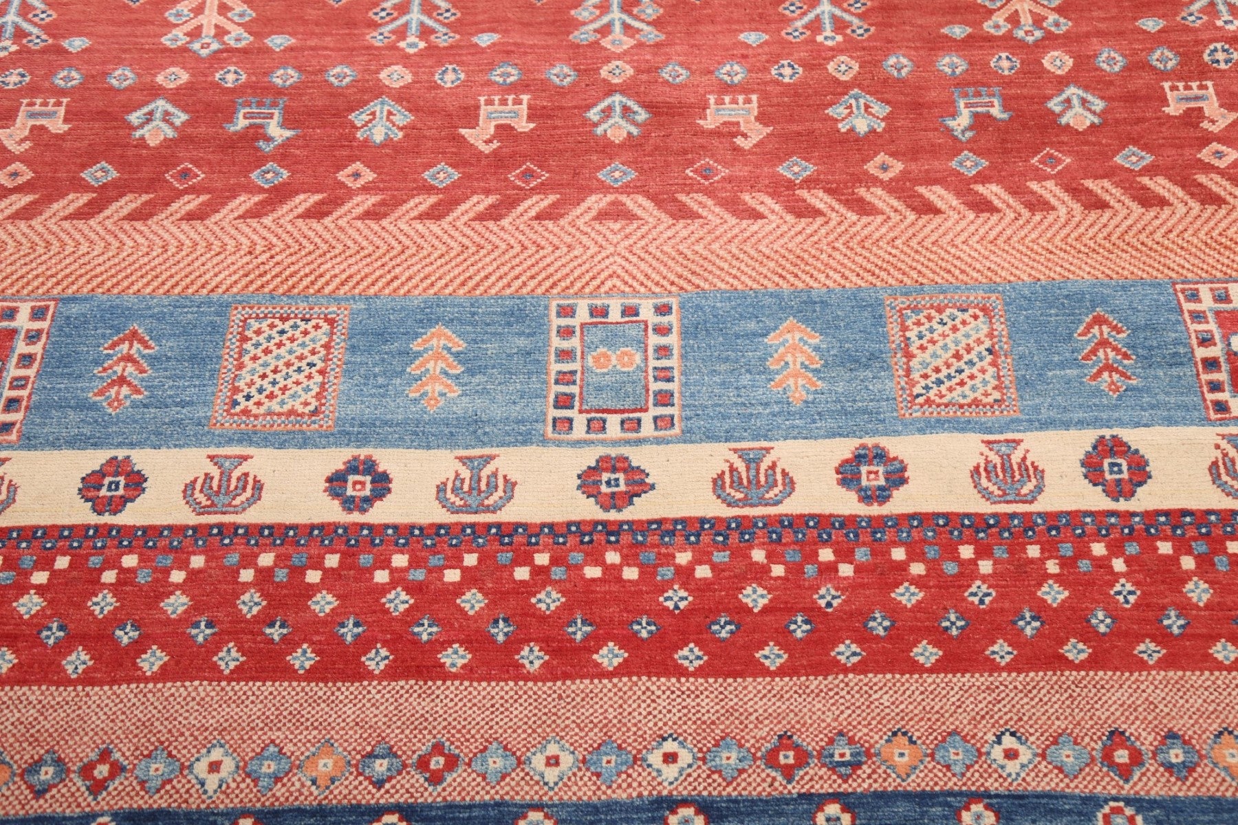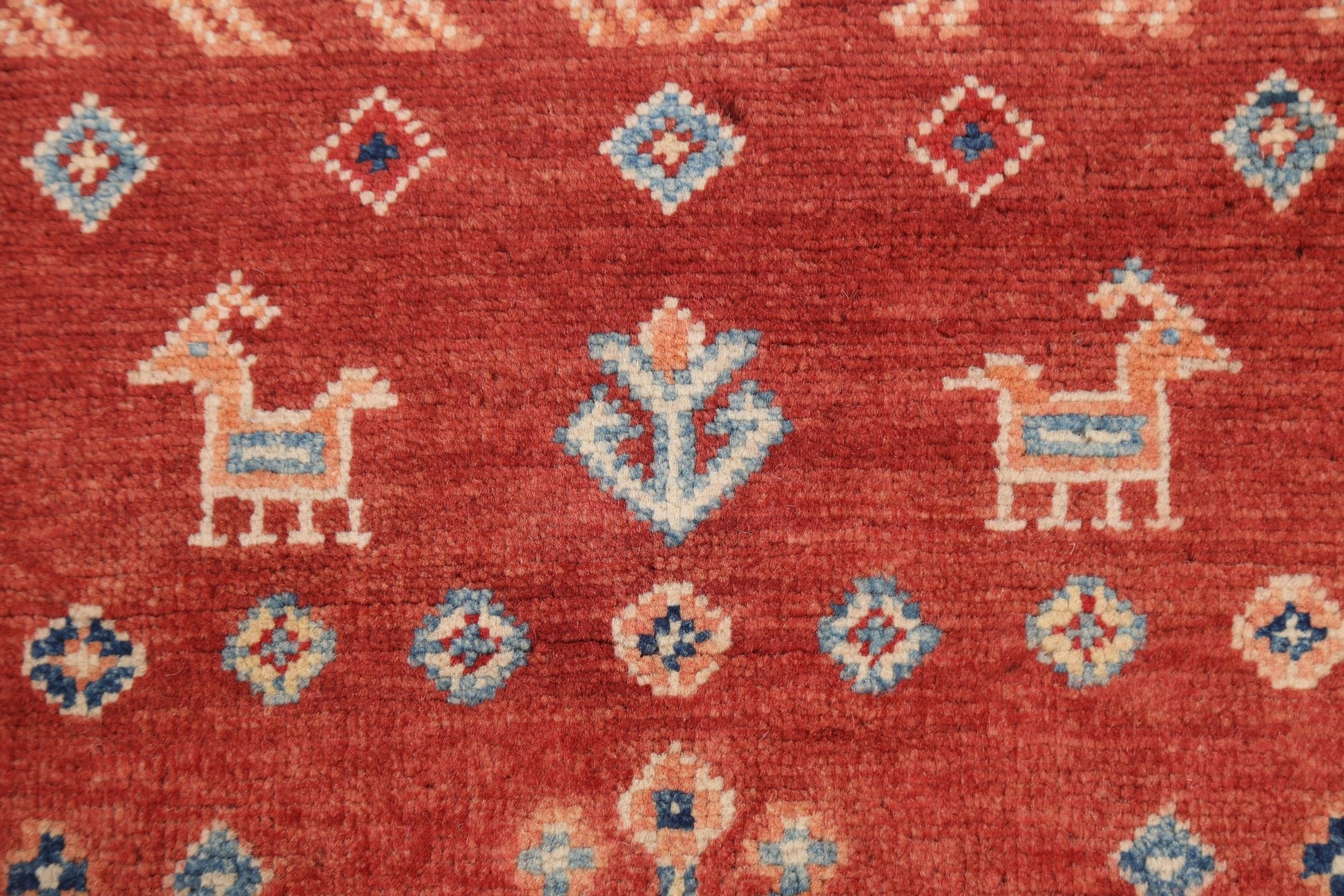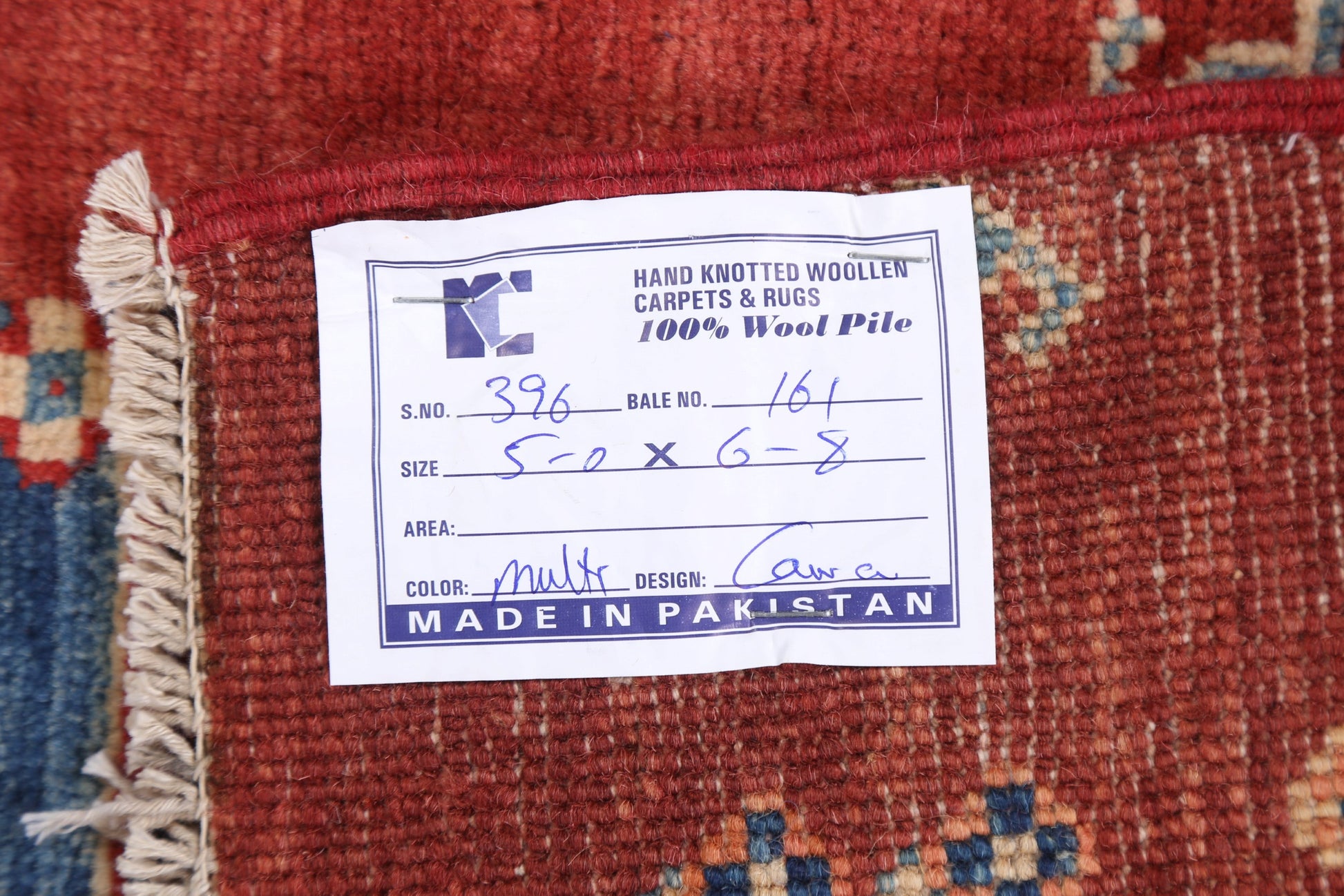 A Beautiful Genuine Pakistan Kazak rug is Hand Knotted by skillful weavers in Pakistan with 100% Wool Material. This rug is in New, First Quality condition. dimensions are 6' 8'' X 5' 0'' in foot and 203 X 152 in centimeter. the primary color is Red.