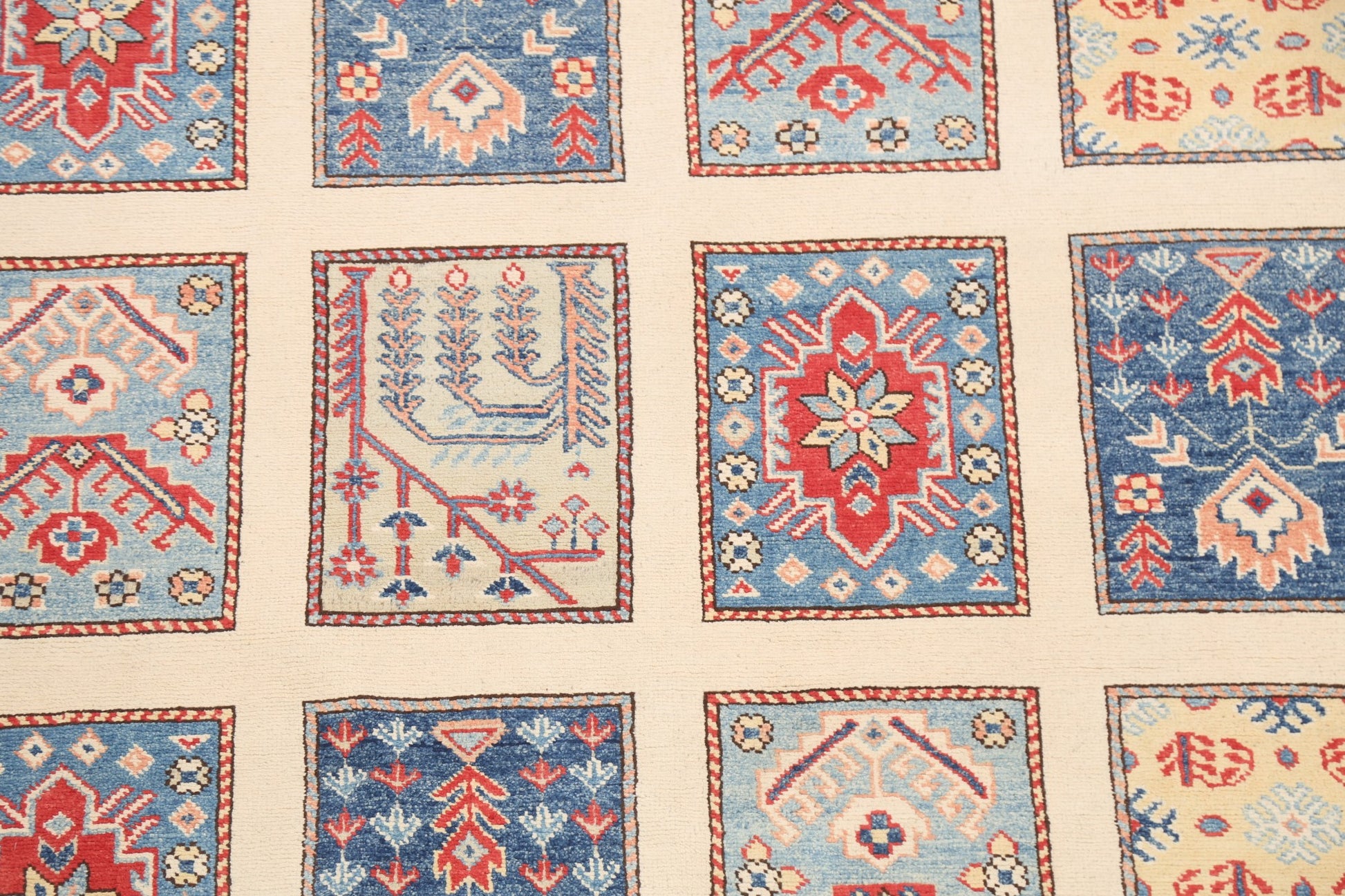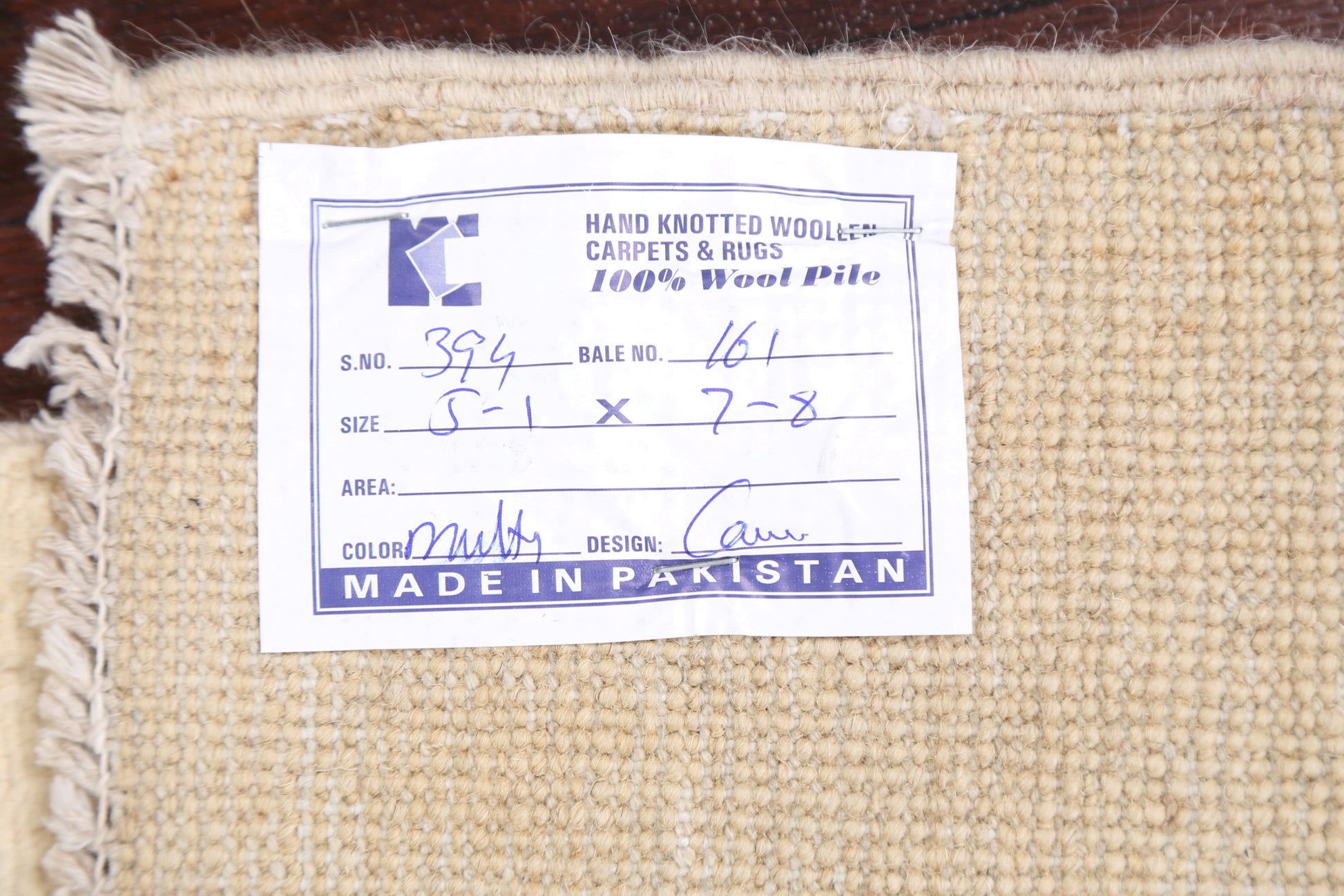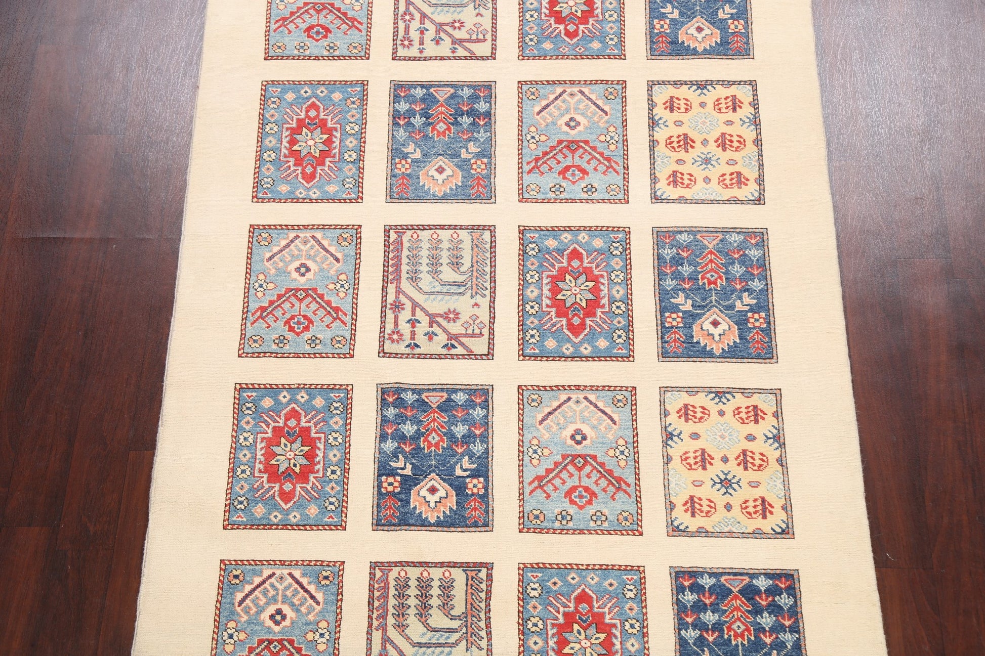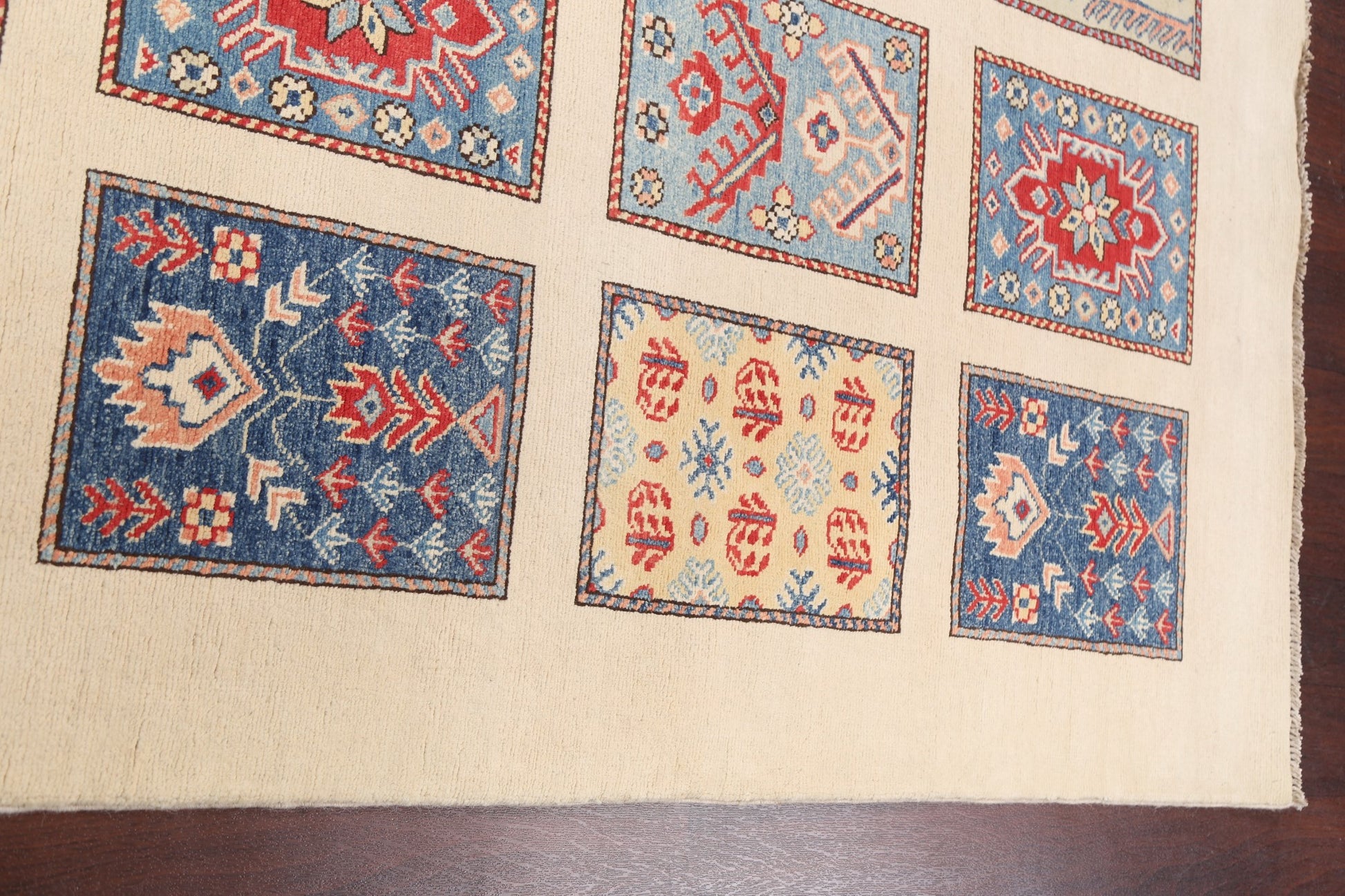 A Beautiful Genuine Pakistan Kazak rug is Hand Knotted by skillful weavers in Pakistan with 100% Wool Material. This rug is in New, First Quality condition. dimensions are 7' 8'' X 5' 1'' in foot and 234 X 155 in centimeter. the primary color is Beige & Ivories.