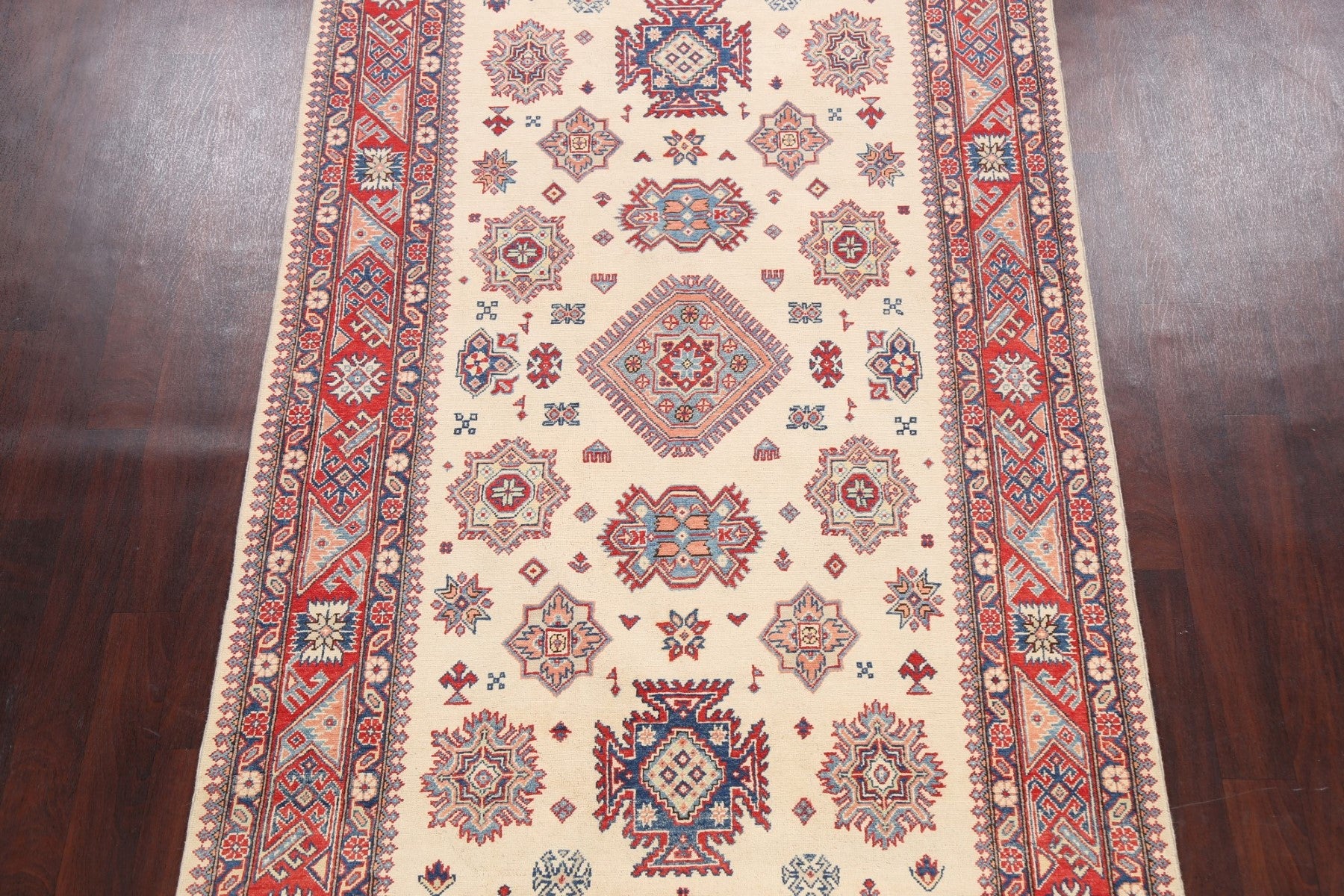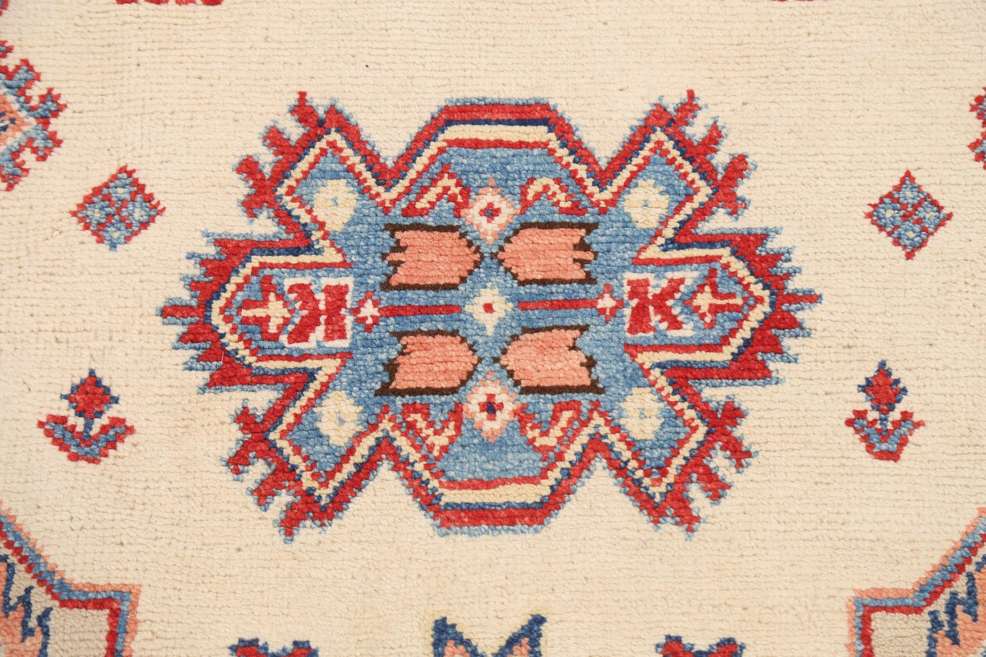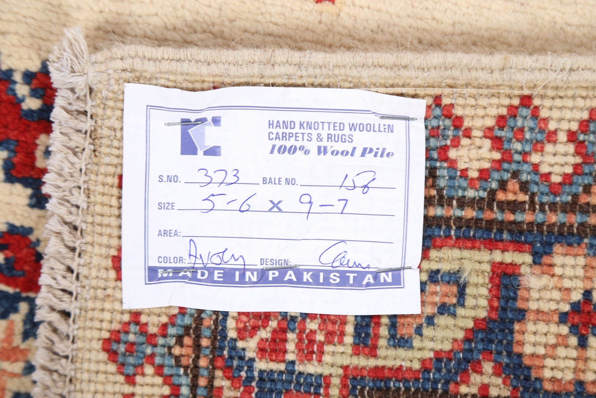 A Beautiful Genuine Pakistan Kazak rug is Hand Knotted by skillful weavers in Pakistan with 100% Wool Material. This rug is in New, First Quality condition. dimensions are 9' 7'' X 5' 6'' in foot and 292 X 168 in centimeter. the primary color is Beige & Ivories.