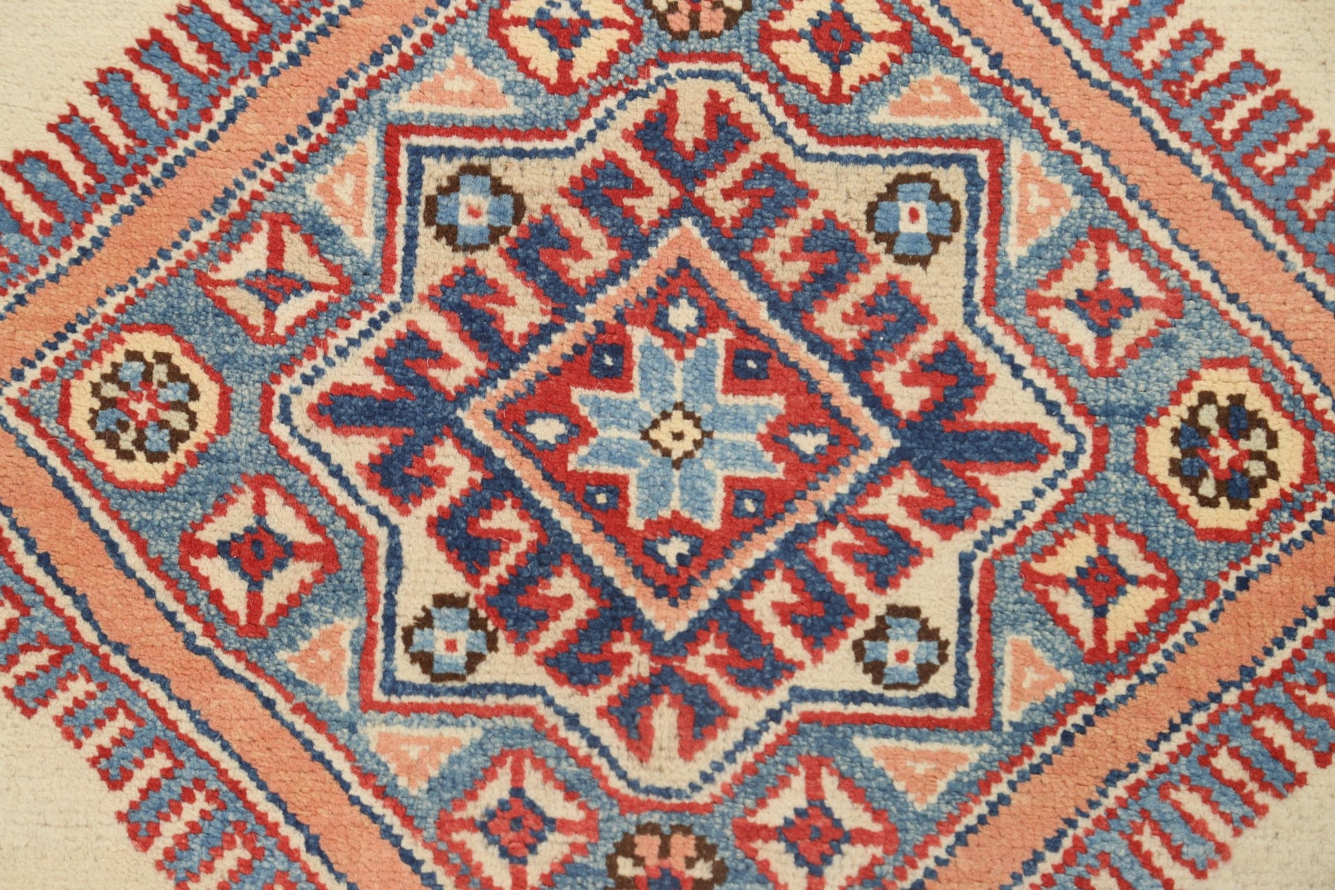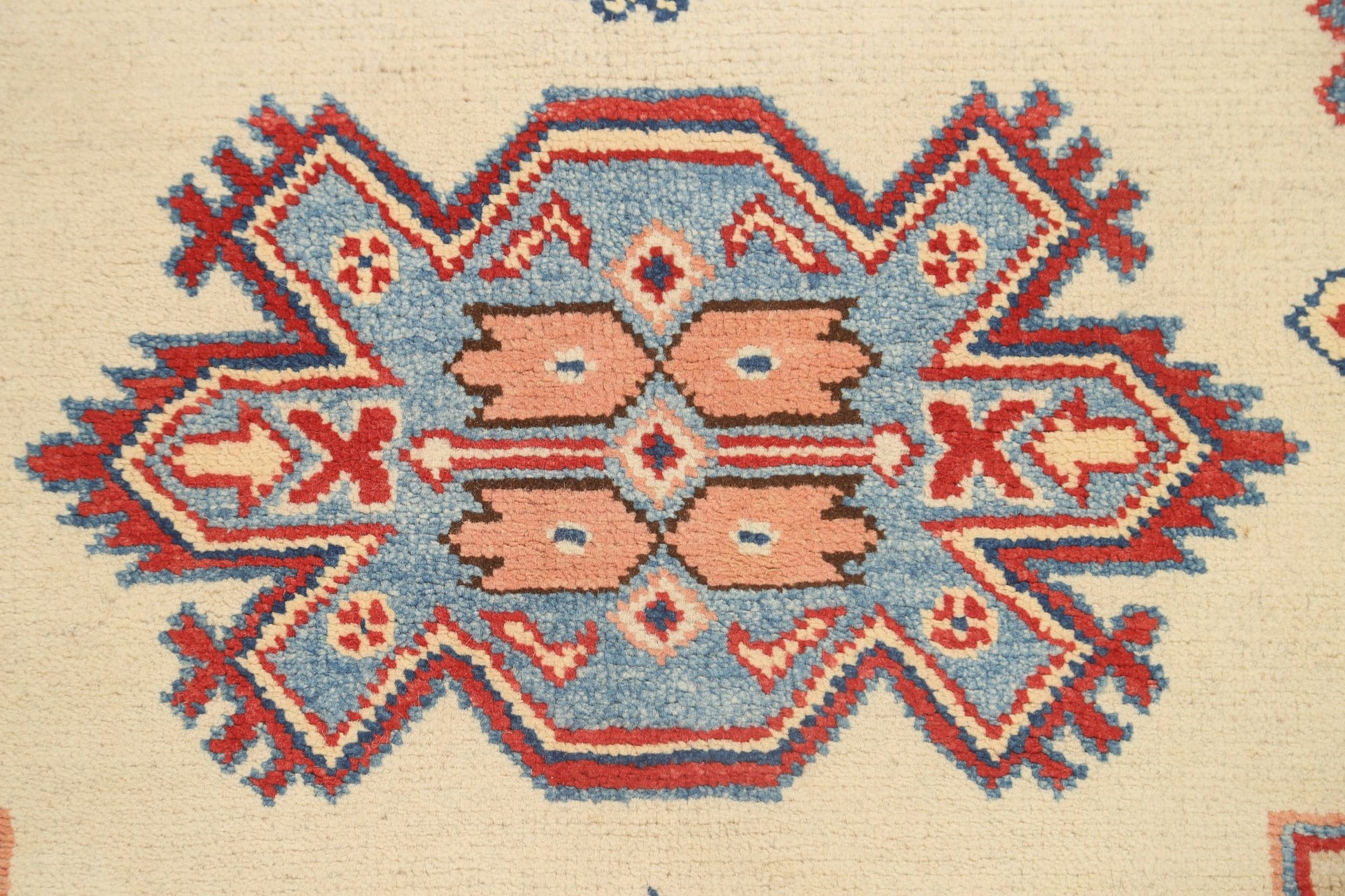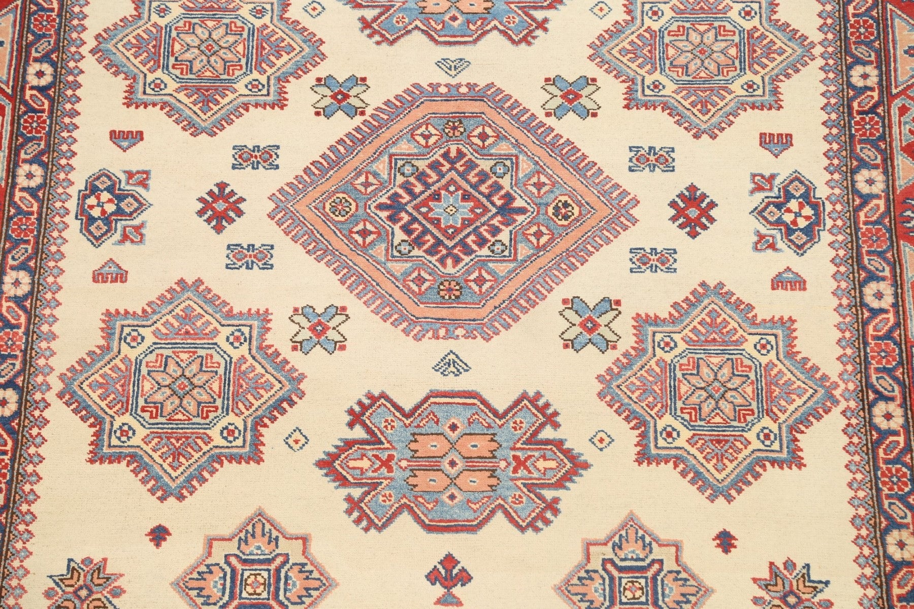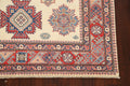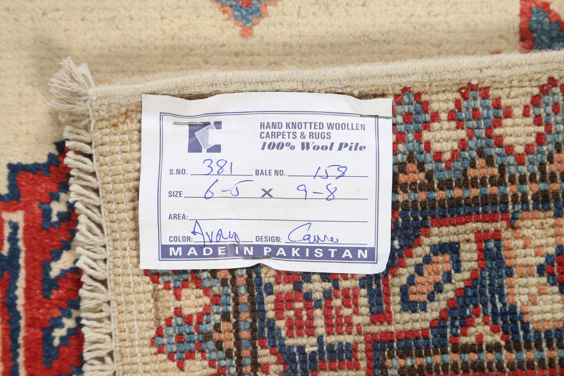 A Beautiful Genuine Pakistan Kazak rug is Hand Knotted by skillful weavers in Pakistan with 100% Wool Material. This rug is in New, First Quality condition. dimensions are 9' 8'' X 6' 5'' in foot and 295 X 196 in centimeter. the primary color is Beige & Ivories.