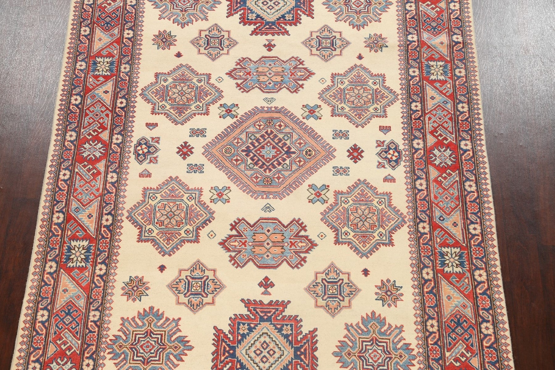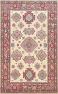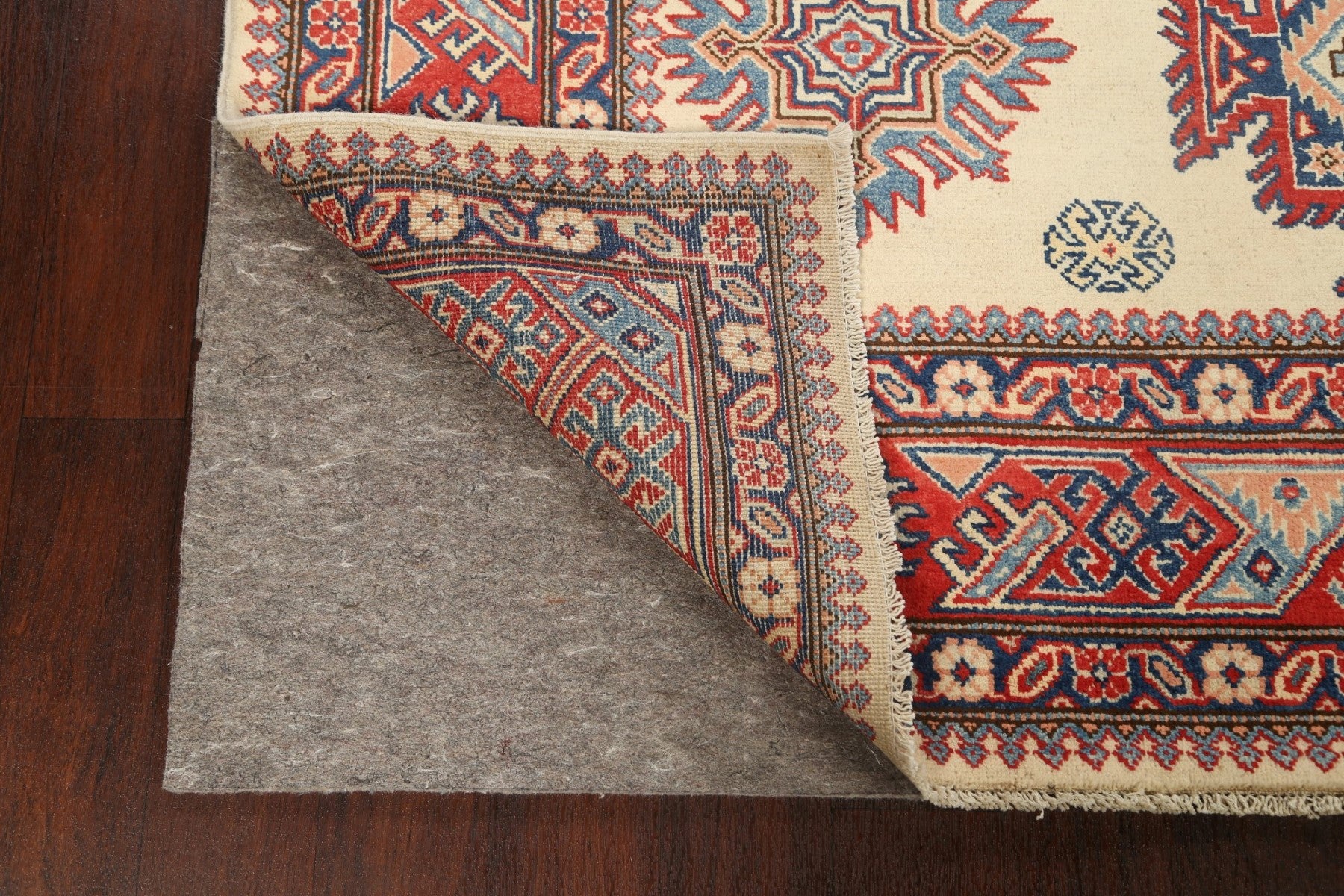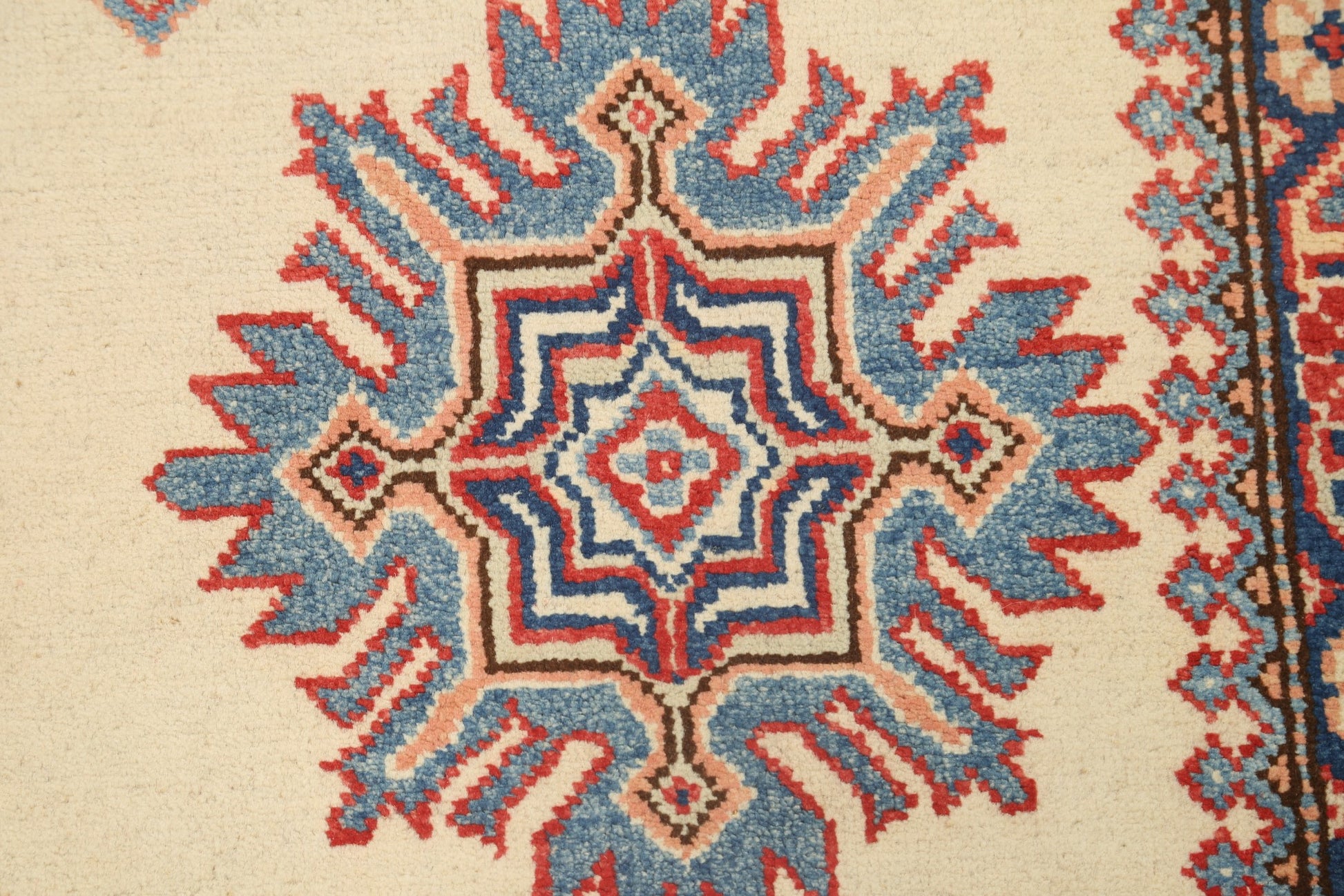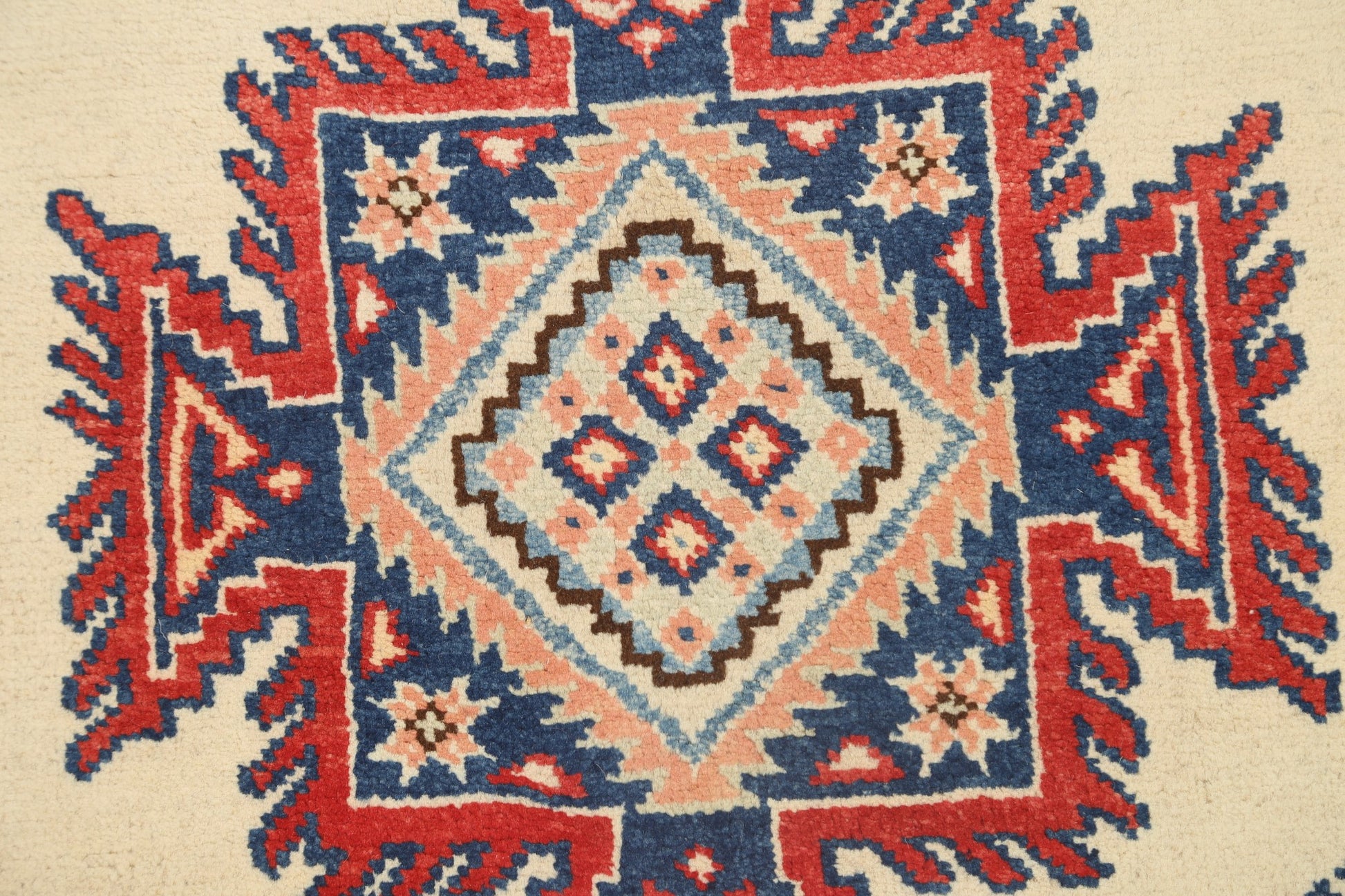 A Beautiful Genuine Pakistan Kazak rug is Hand Knotted by skillful weavers in Pakistan with 100% Wool Material. This rug is in New, First Quality condition. dimensions are 9' 8'' X 6' 5'' in foot and 295 X 196 in centimeter. the primary color is Beige & Ivories.