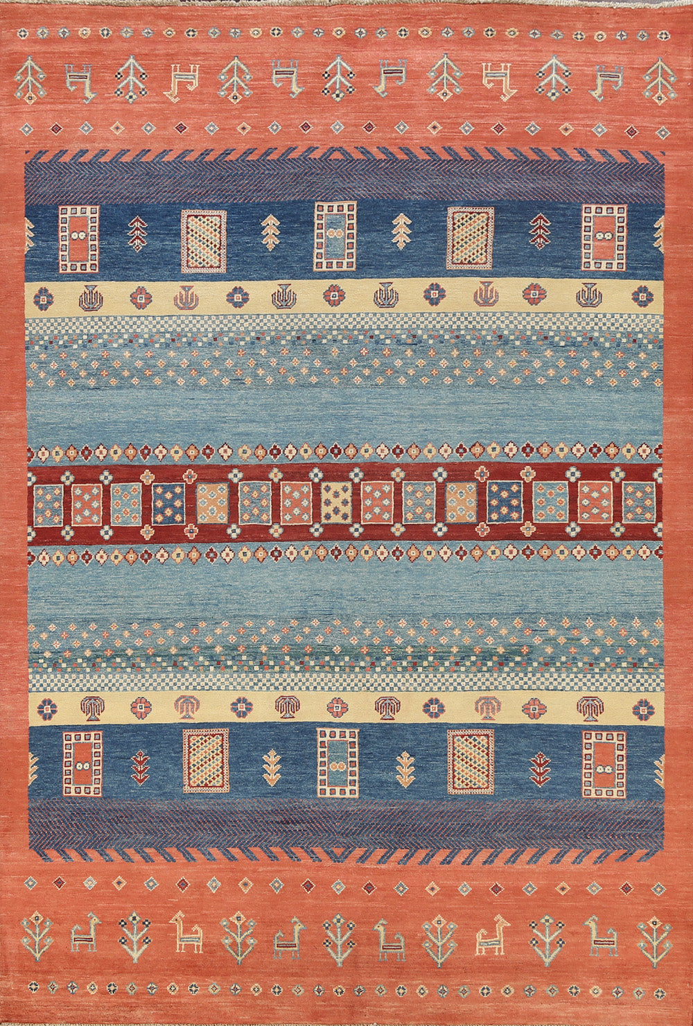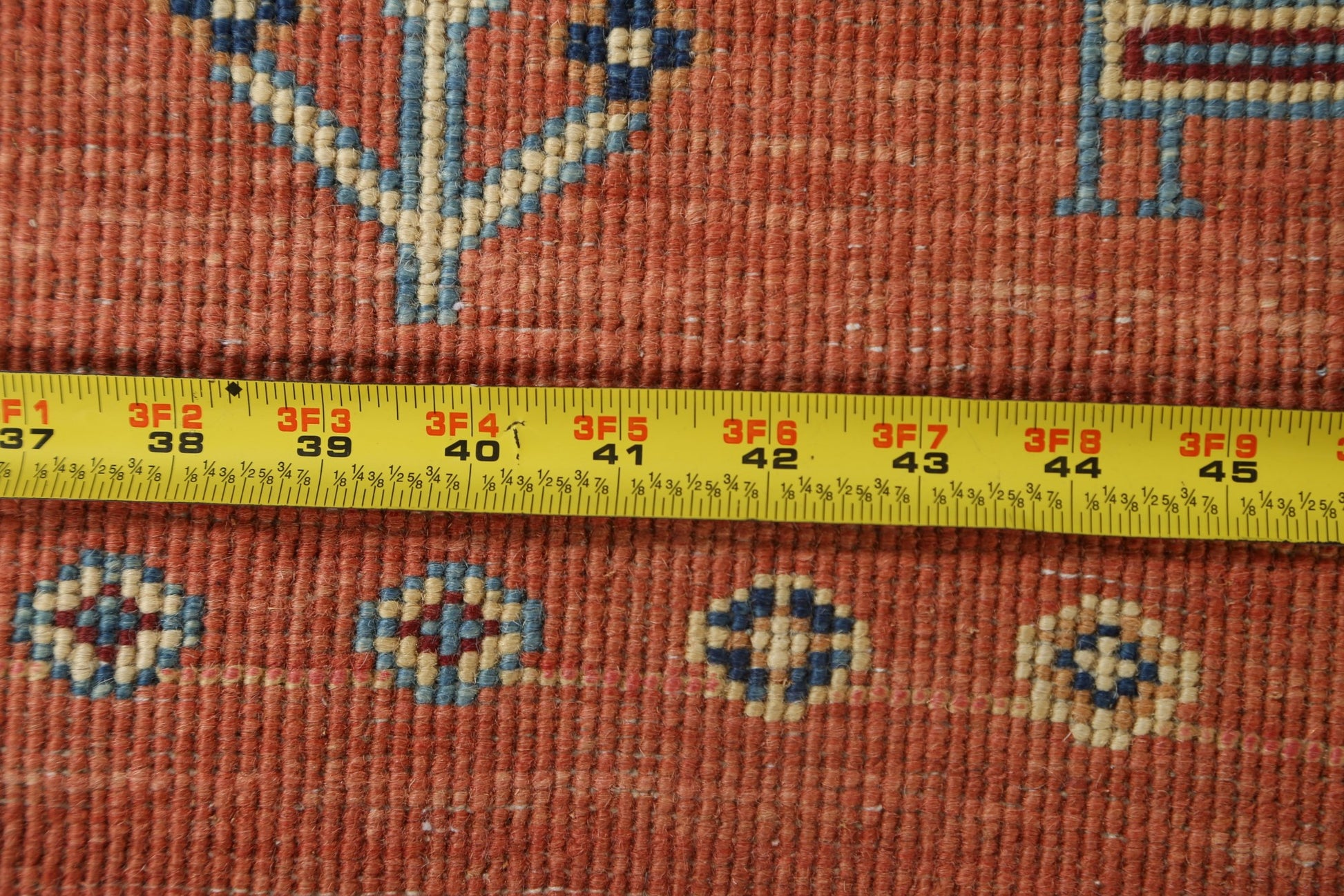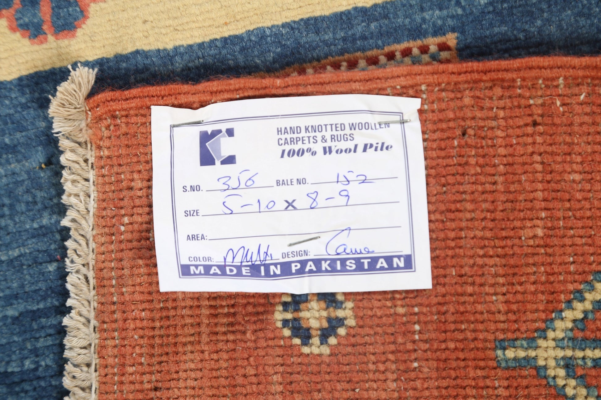 A Beautiful Genuine Pakistan Kazak rug is Hand Knotted by skillful weavers in Pakistan with 100% Wool Material. This rug is in New, First Quality condition. dimensions are 8' 9'' X 5' 10'' in foot and 267 X 178 in centimeter. the primary color is Multi-Colored.