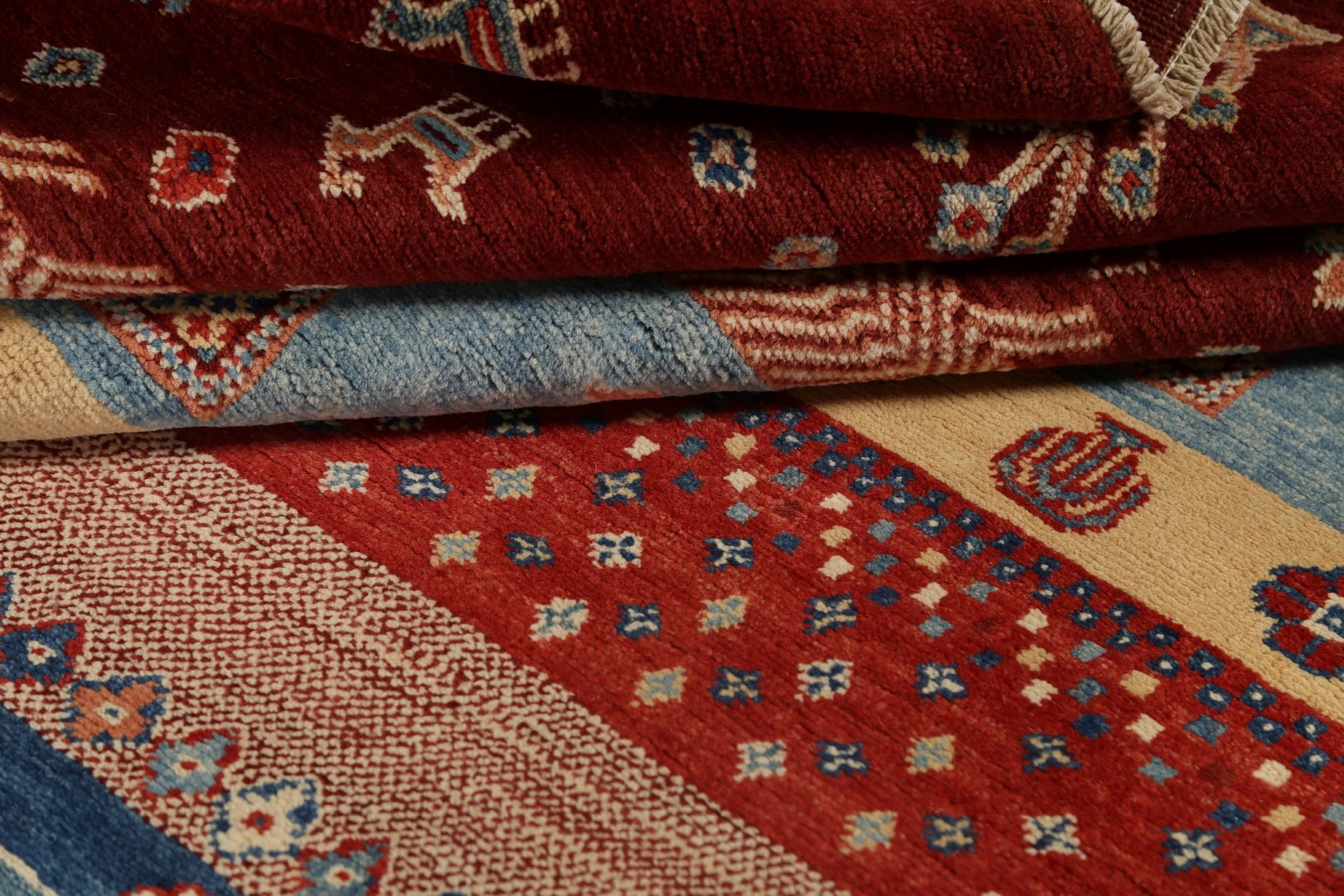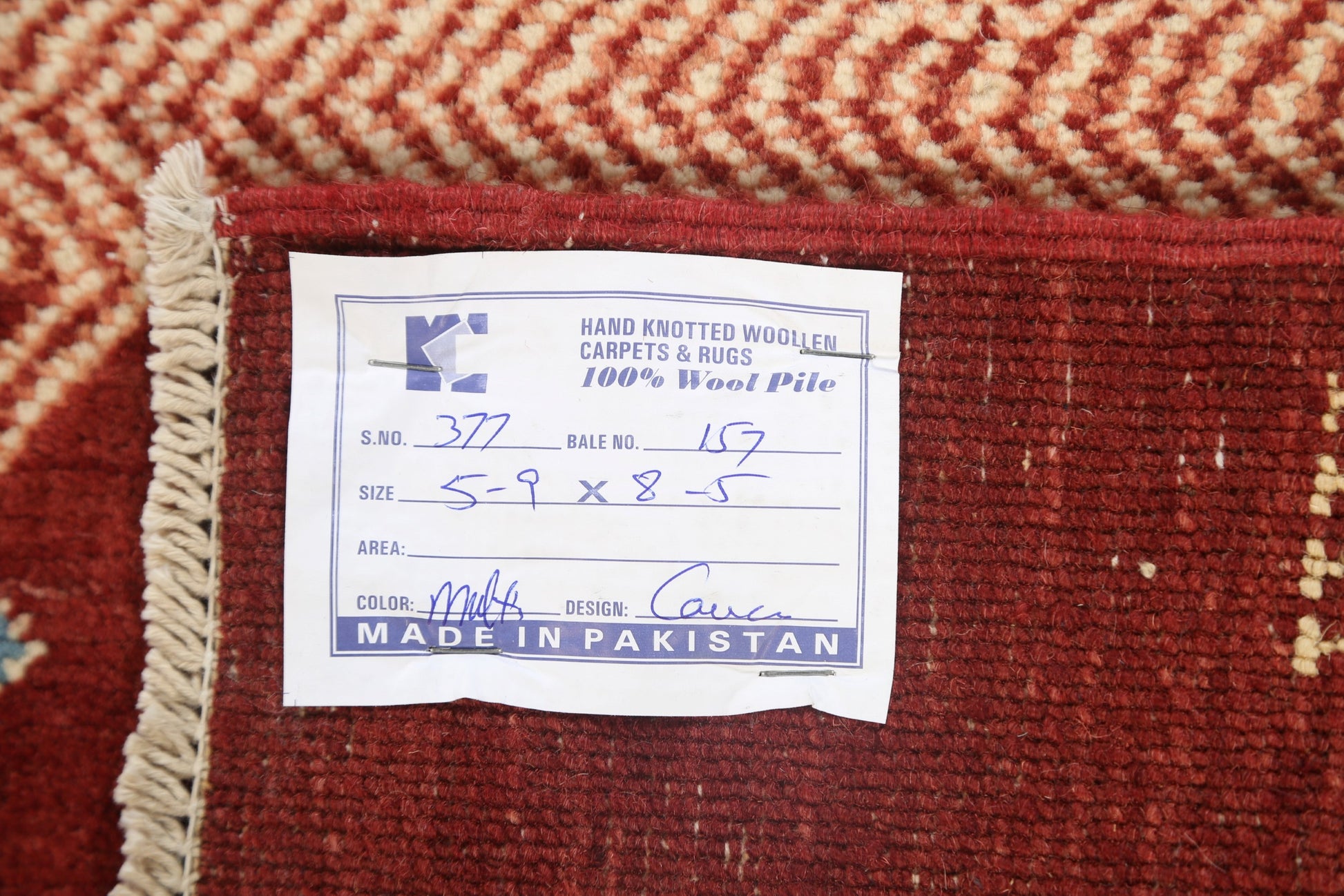 A Beautiful Genuine Pakistan Kazak rug is Hand Knotted by skillful weavers in Pakistan with 100% Wool Material. This rug is in New, First Quality condition. dimensions are 8' 5'' X 5' 9'' in foot and 257 X 175 in centimeter. the primary color is Red.