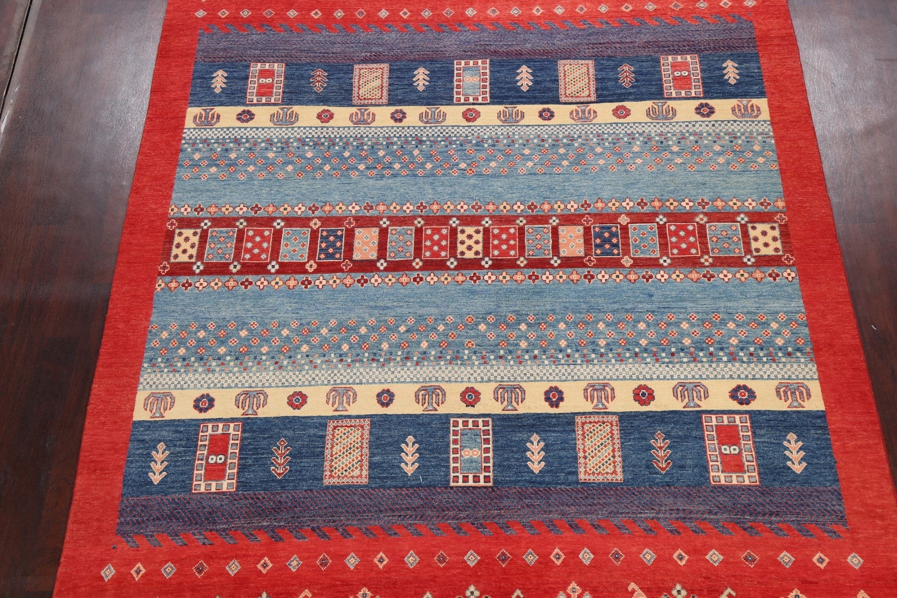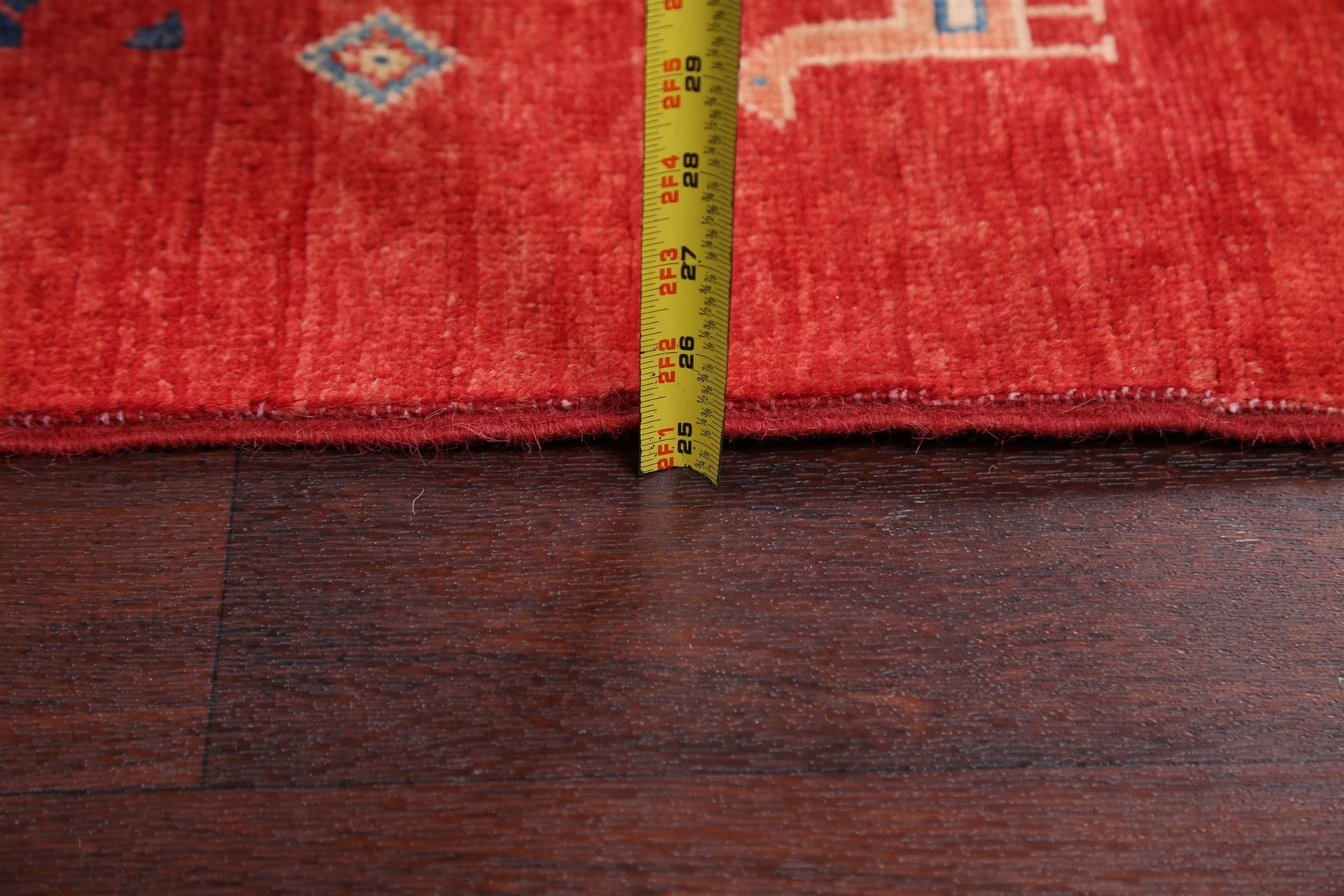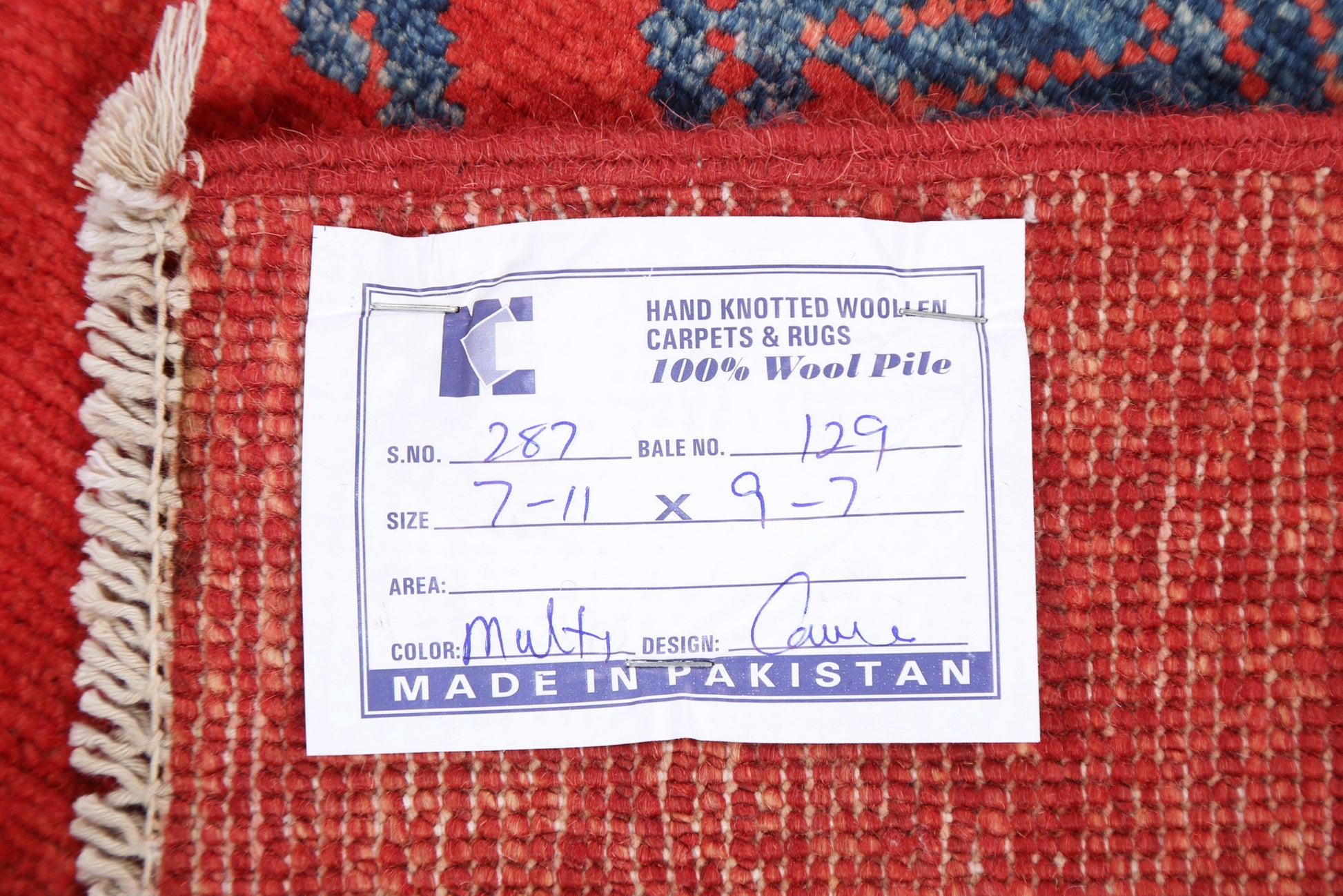 A Beautiful Genuine Pakistan Kazak rug is Hand Knotted by skillful weavers in Pakistan with 100% Wool Material. This rug is in New, First Quality condition. dimensions are 9' 7'' X 7' 11'' in foot and 292 X 241 in centimeter. the primary color is Red.