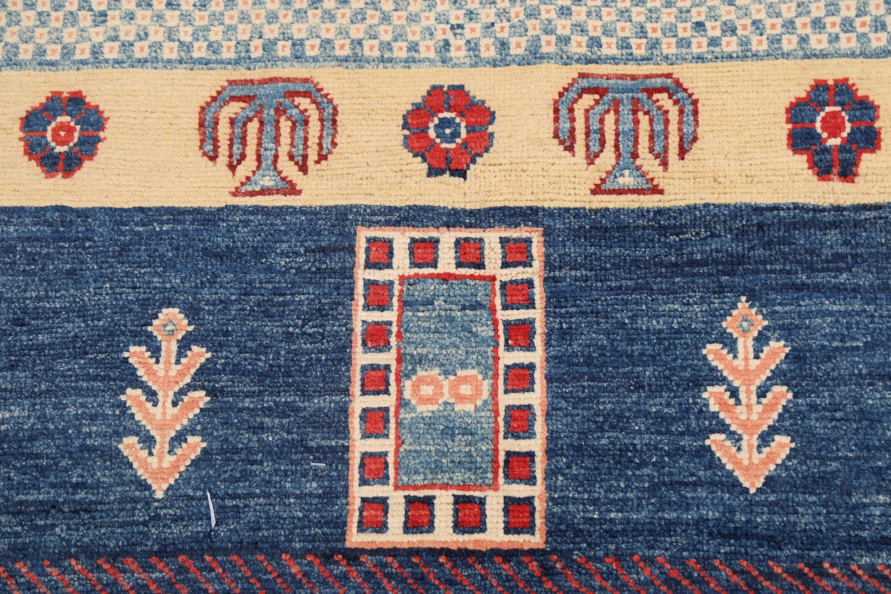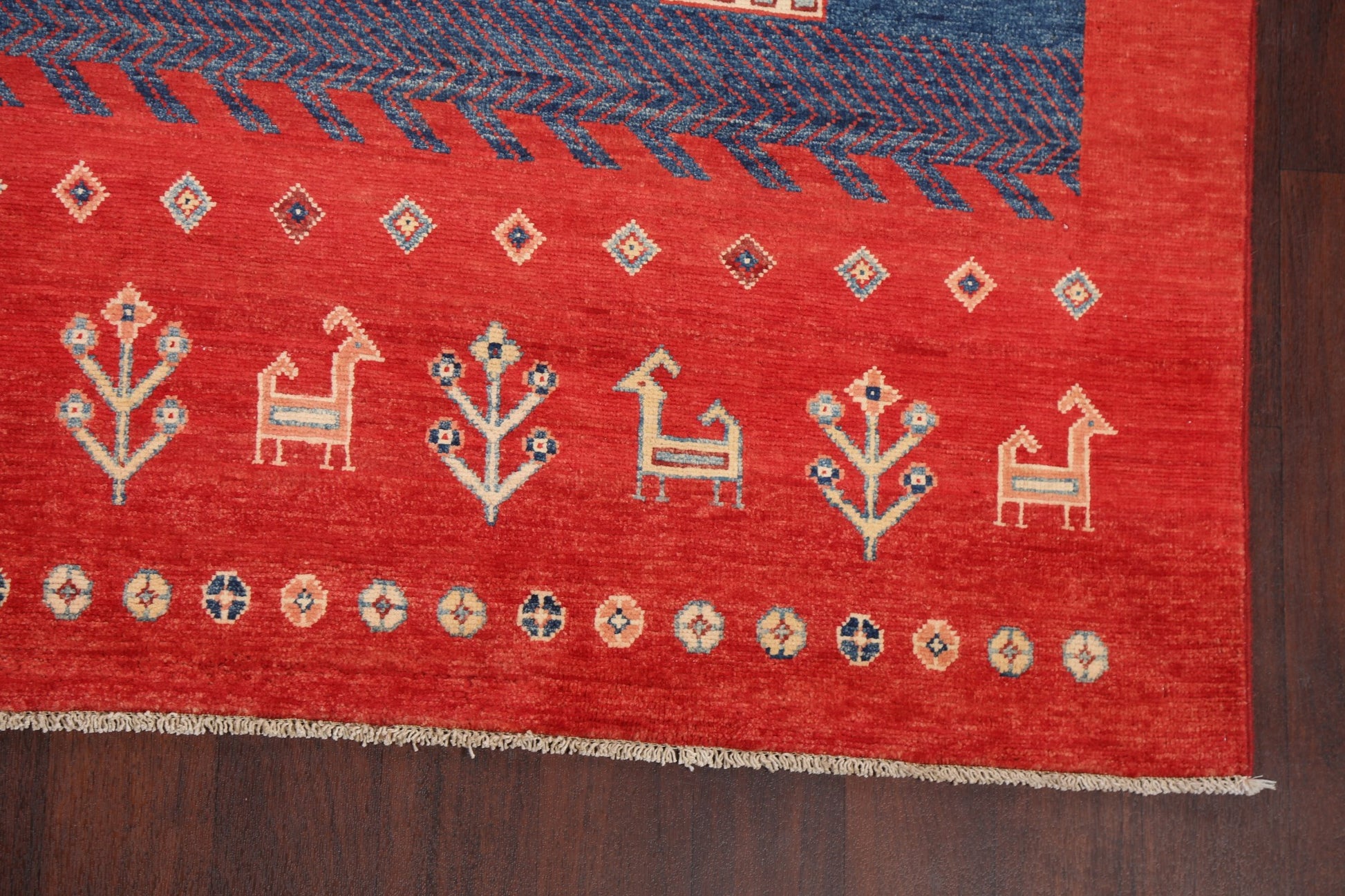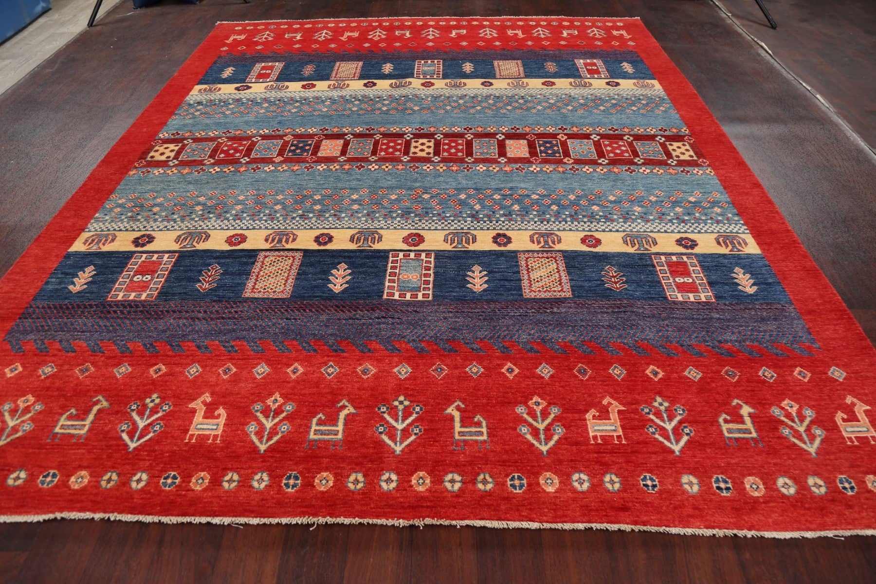 A Beautiful Genuine Pakistan Kazak rug is Hand Knotted by skillful weavers in Pakistan with 100% Wool Material. This rug is in New, First Quality condition. dimensions are 9' 7'' X 7' 11'' in foot and 292 X 241 in centimeter. the primary color is Red.