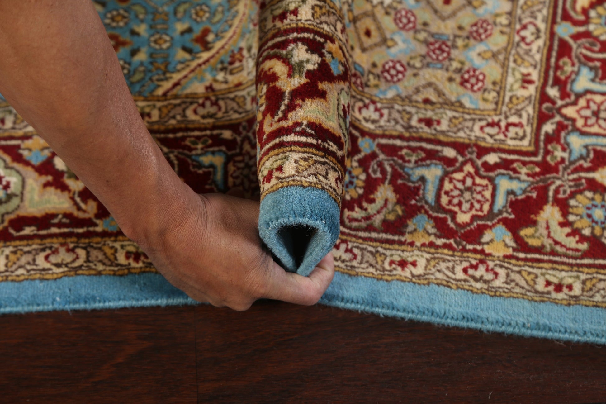A Beautiful Genuine Pakistan Tabriz rug is Hand Knotted by skillful weavers in Pakistan with Wool & Silk Material. This rug is in New, First Quality condition. dimensions are 5' 11'' X 4' 1'' in foot and 180 X 124 in centimeter. the primary color is Navy Blue & Blues.